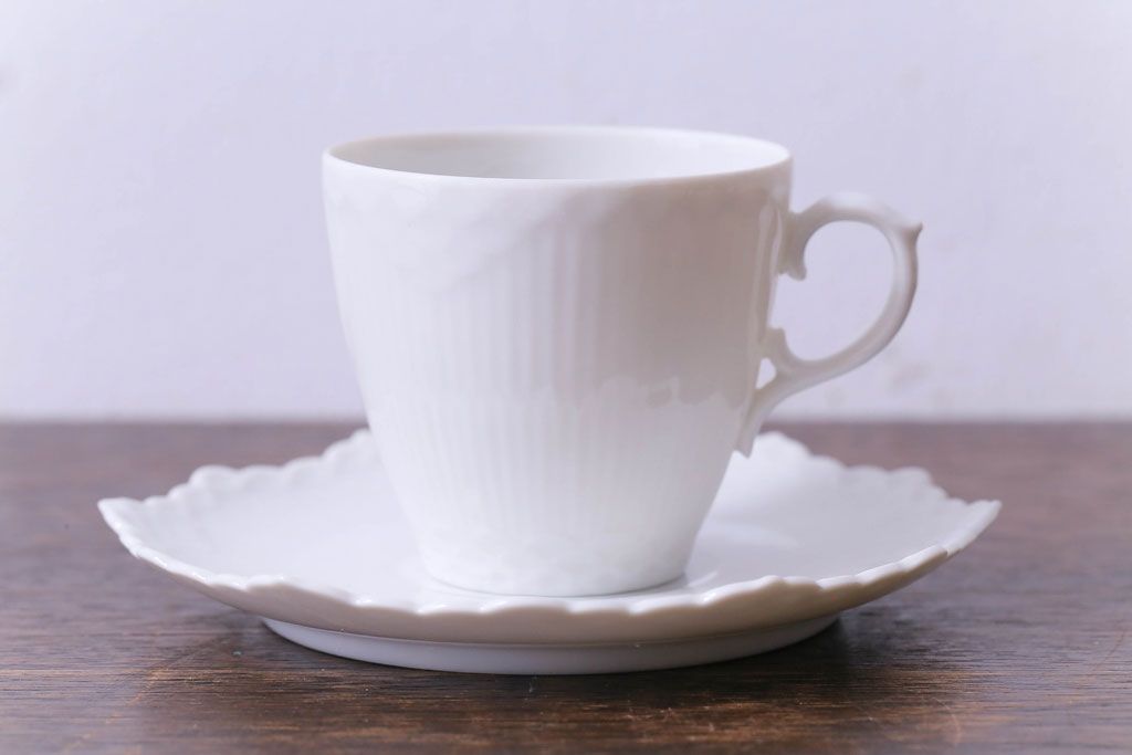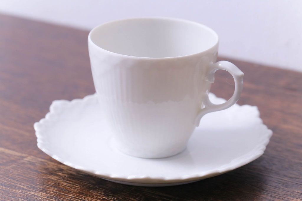 ラフジュ工房> 洋食器・キッチン用品 > アンティーク雑貨 中古 ROYAL COPENHAGEN(ロイヤルコペンハーゲン) ホワイト フルレース コーヒーカップ&ソーサー(廃盤品)
