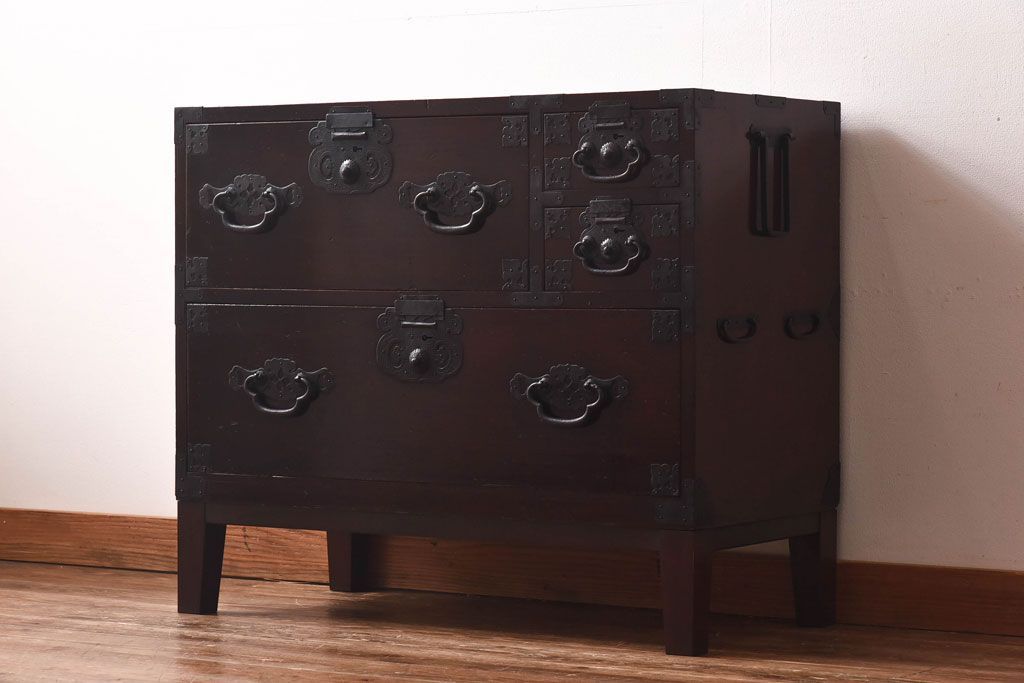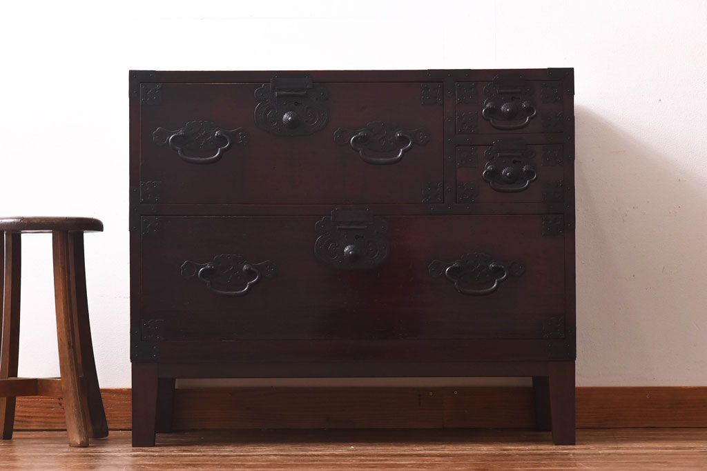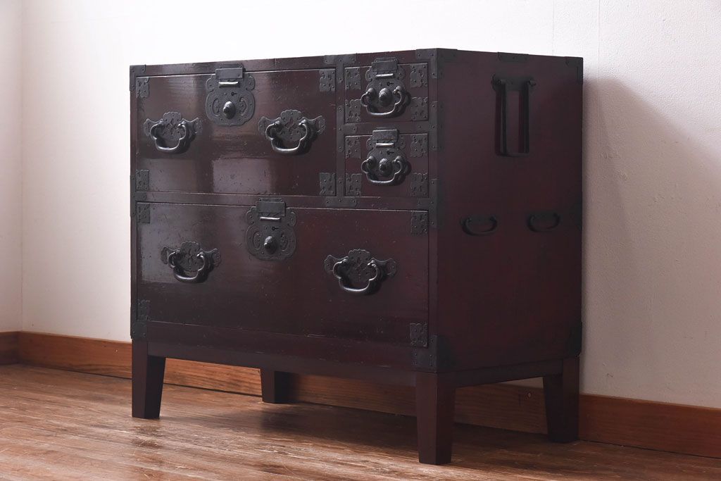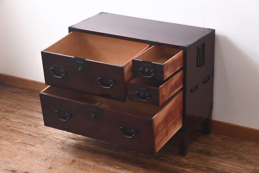 ラフジュ工房> 和箪笥 > アンティーク家具 和製アンティーク 艶やかな漆塗りが魅力の松本衣装箪笥ローボード(チェスト)