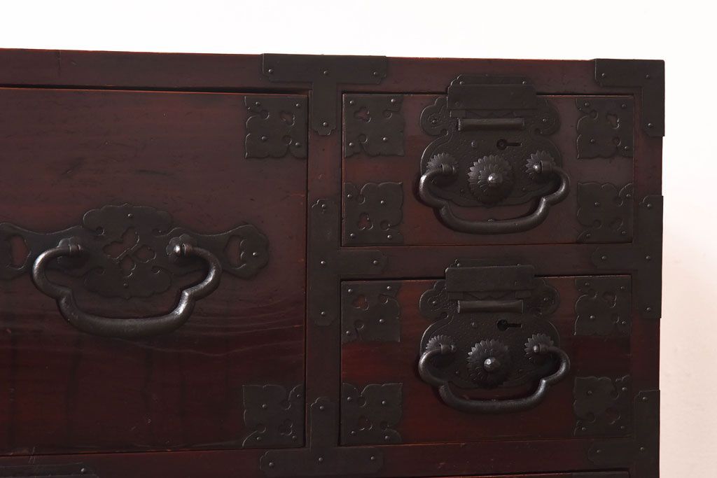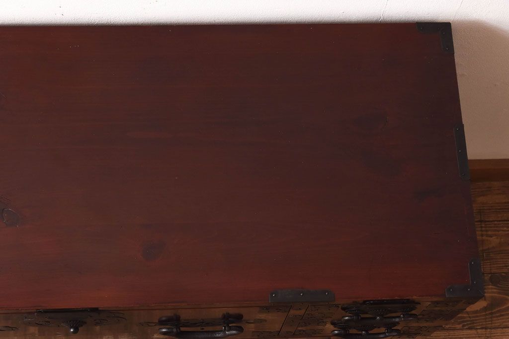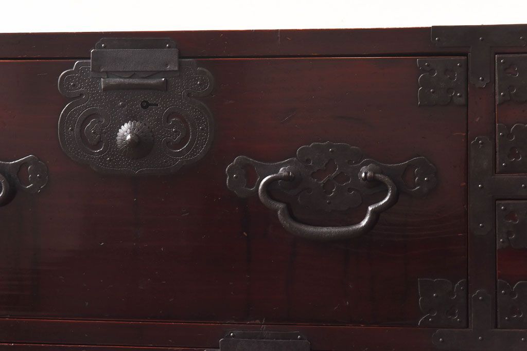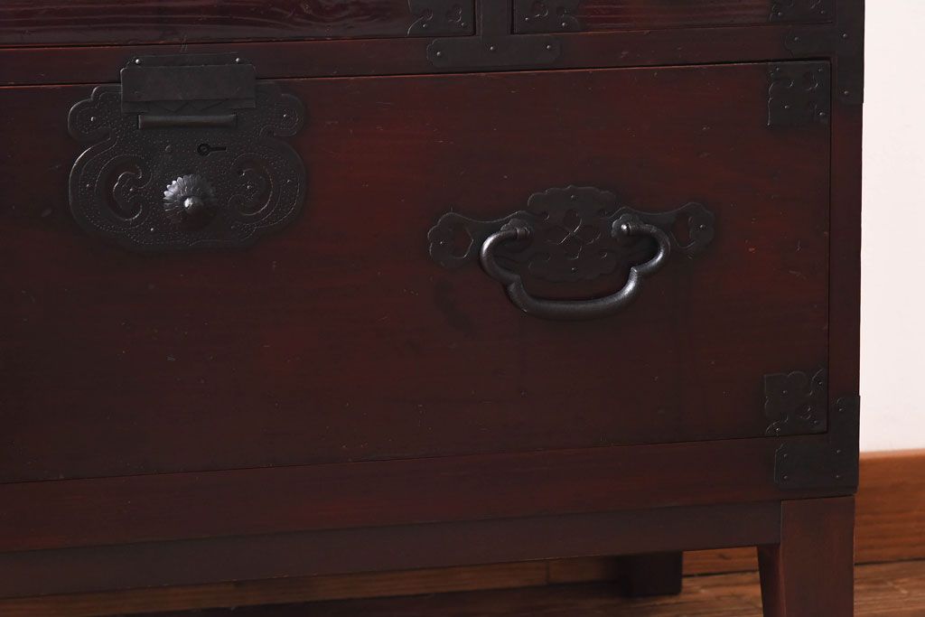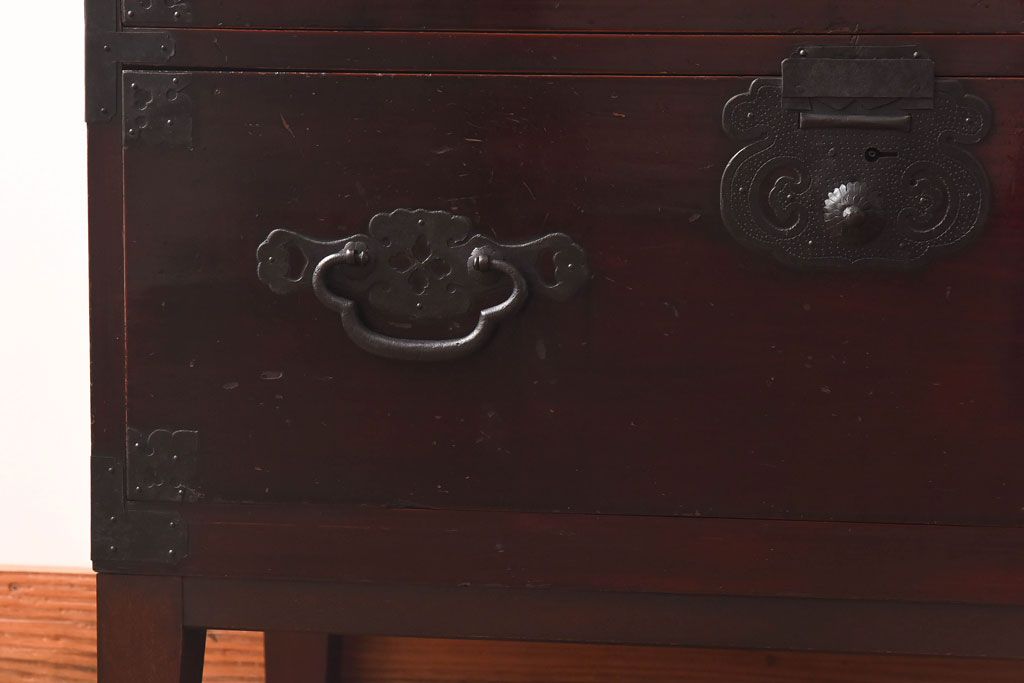ラフジュ工房> 和箪笥> 衣装箪笥 > アンティーク家具 和製アンティーク 艶やかな漆塗りが魅力の松本衣装箪笥ローボード(チェスト)