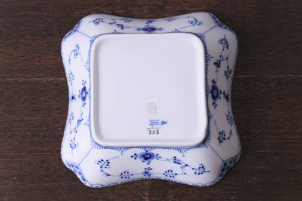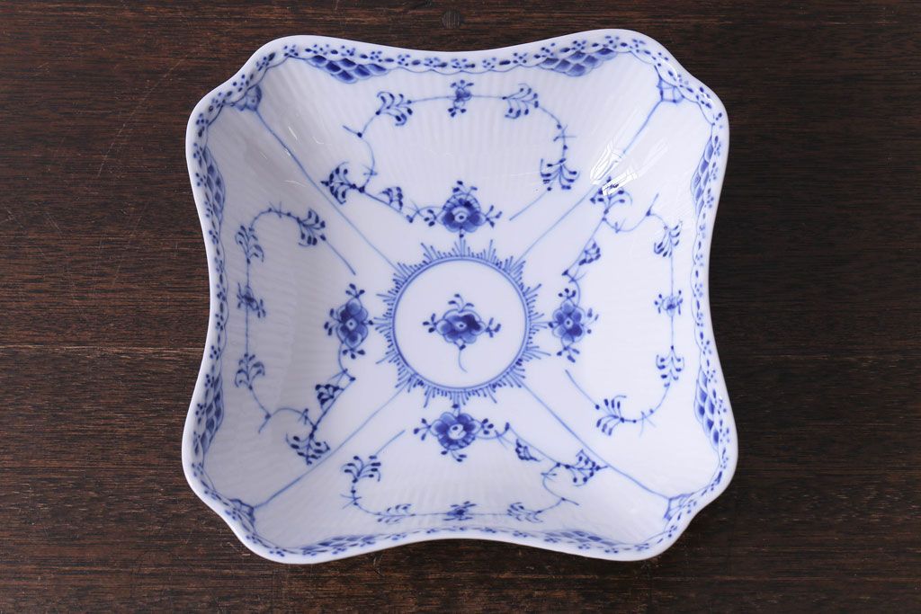 ラフジュ工房> 洋食器・キッチン用品> 皿・プレート > 中古 ROYAL COPENHAGEN(ロイヤルコペンハーゲン) ブルーフルーテッド ハーフレース 21.5cm ボウルスクエア(深皿)
