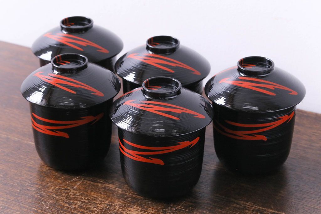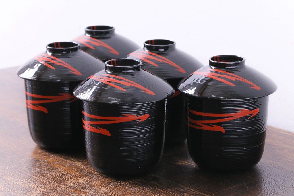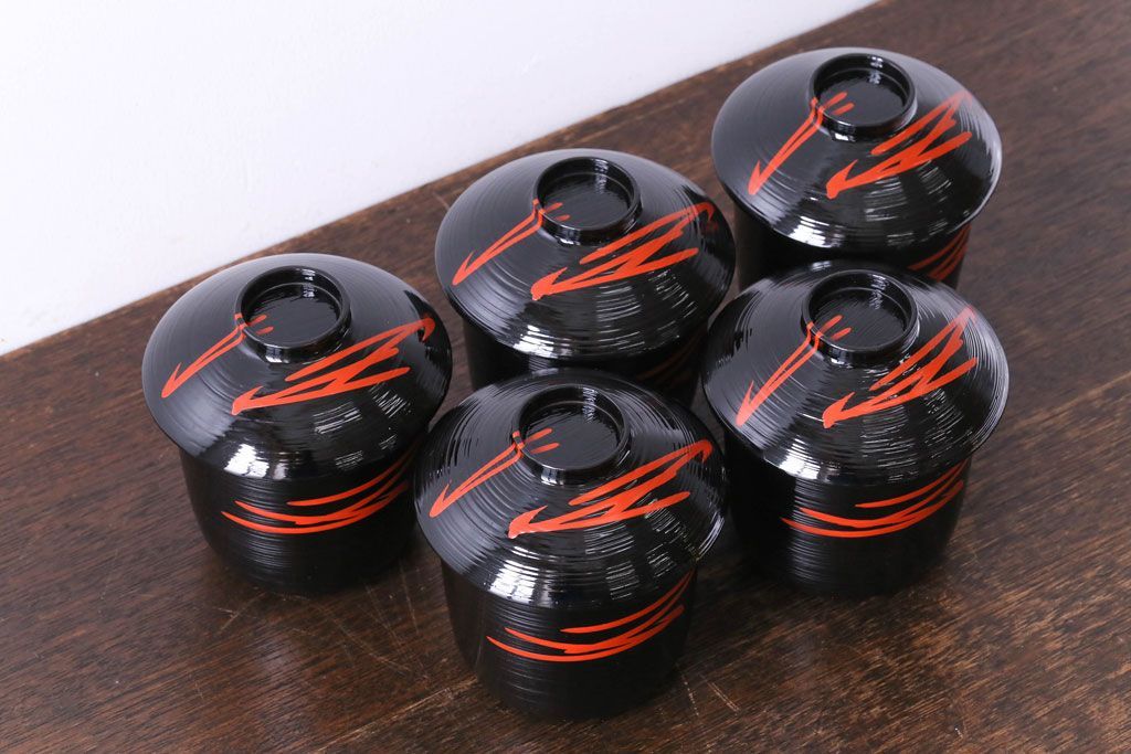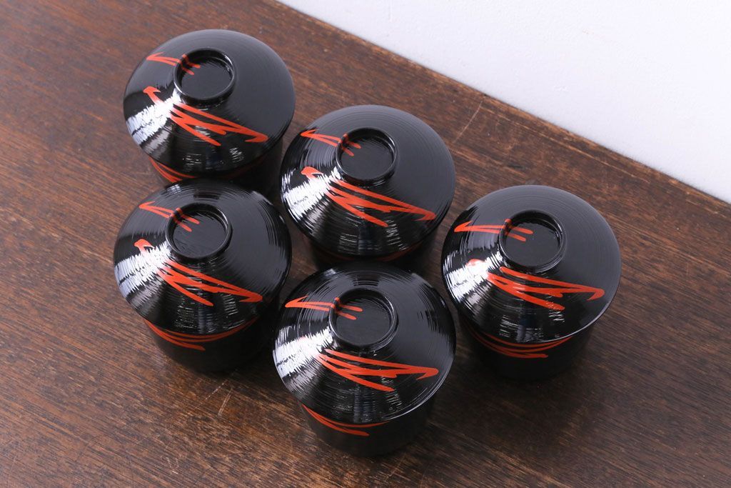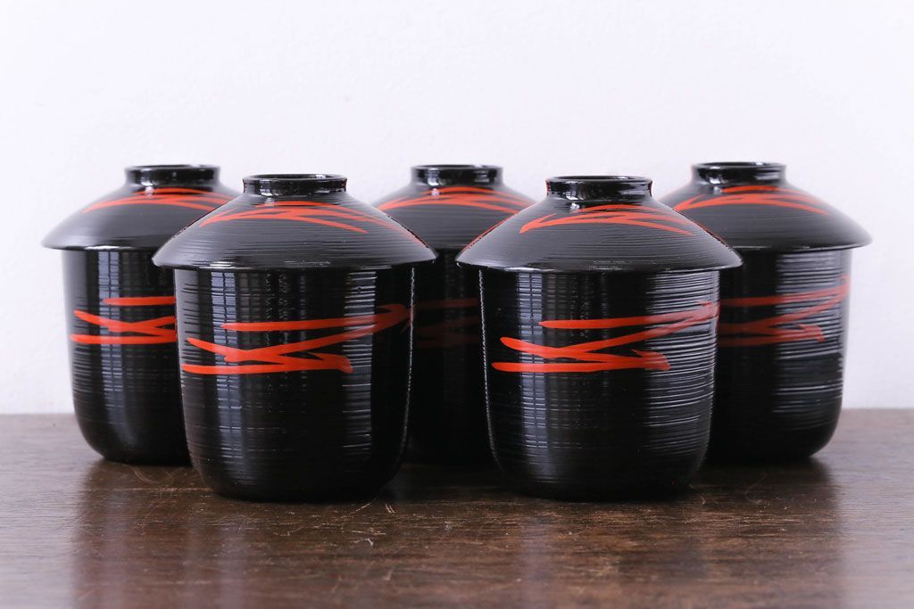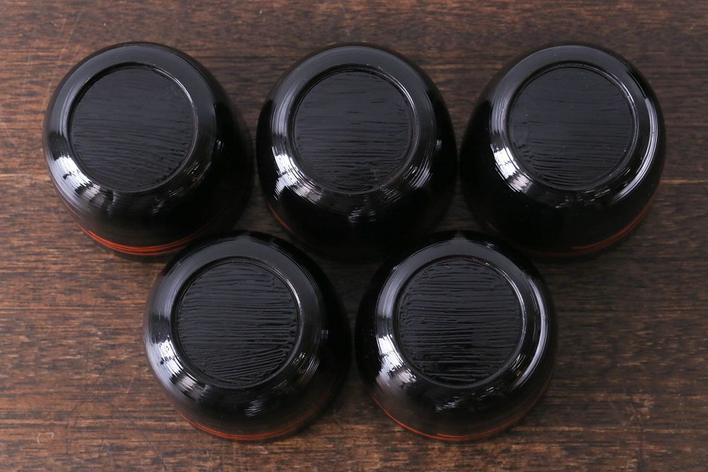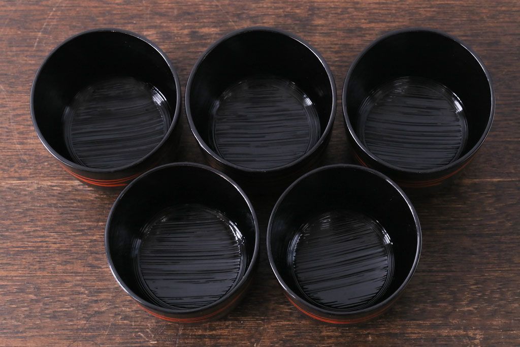 ラフジュ工房> 和食器・茶道具> お椀・茶碗 > 和製アンティーク 和モダンなデザインの木製糸目椀5客セット(漆器)