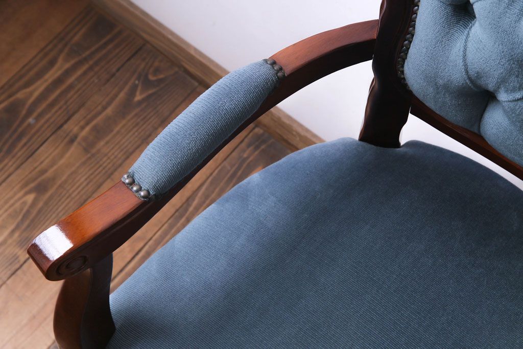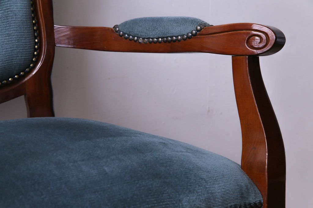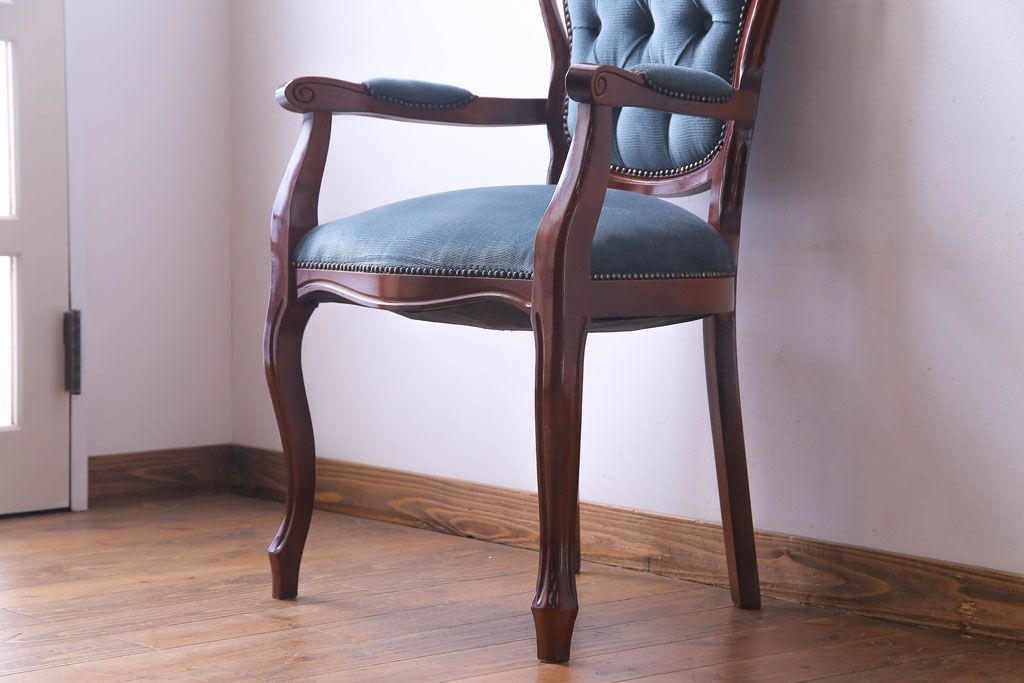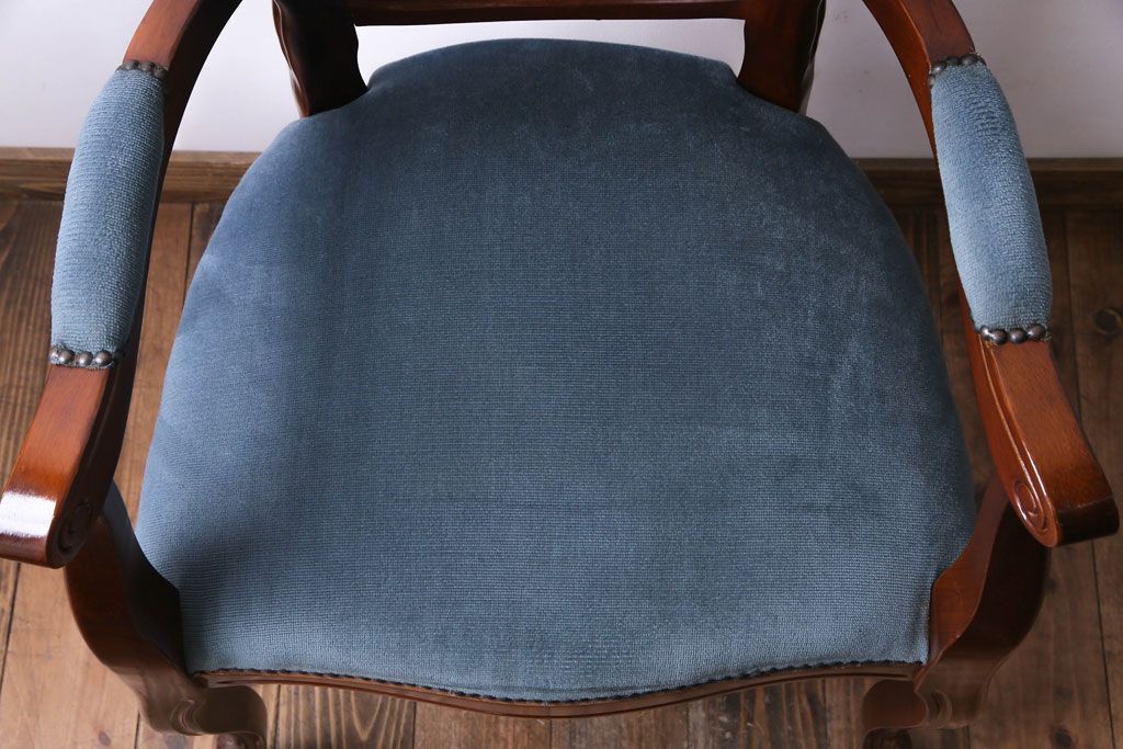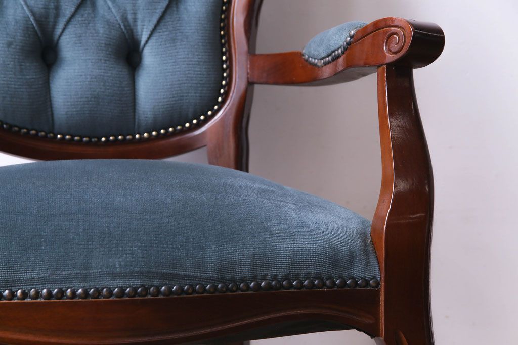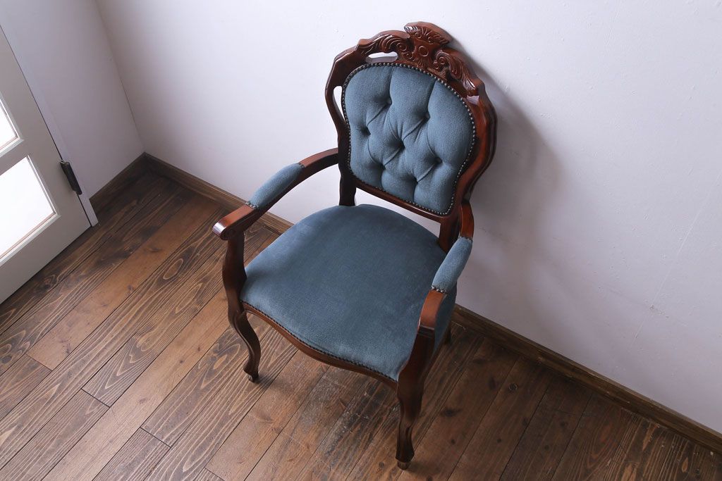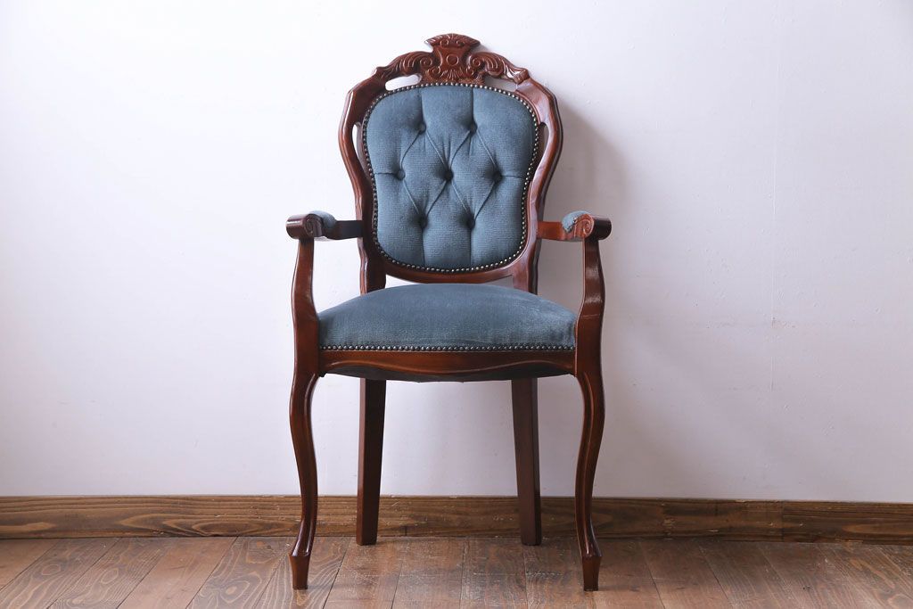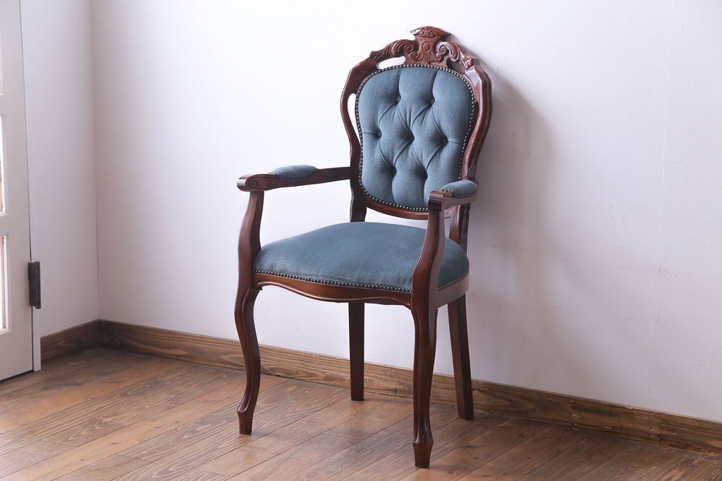 ビンテージ家具 ヨーロッパヴィンテージ クラシカルなデザインが目を惹くロココ調アームチェア(サロンチェア、椅子)