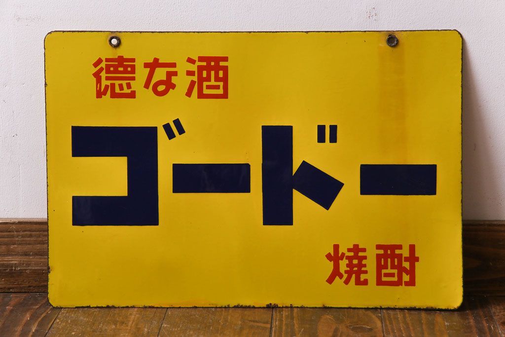 アンティーク雑貨 昭和レトロ 勇躍 ゴードー焼酎 アンティークの両面ホーロー看板(企業看板)