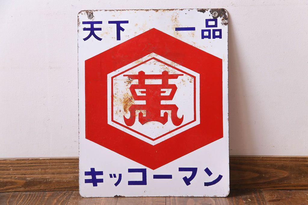 アンティーク雑貨 昭和レトロ キッコーマン ノスタルジックな両面ホーロー看板(企業看板)
