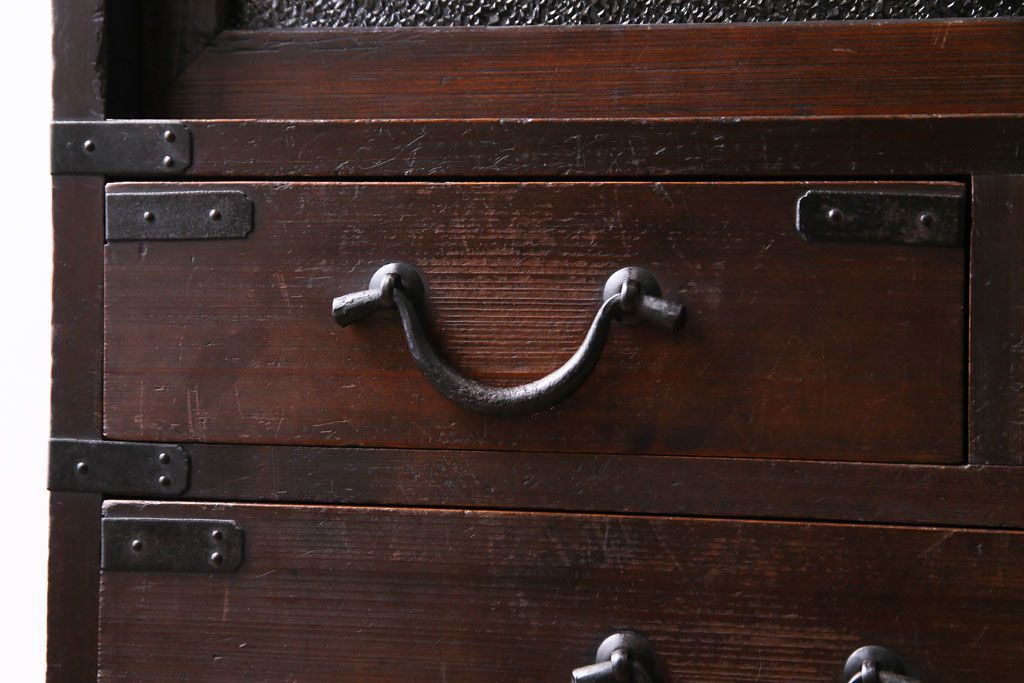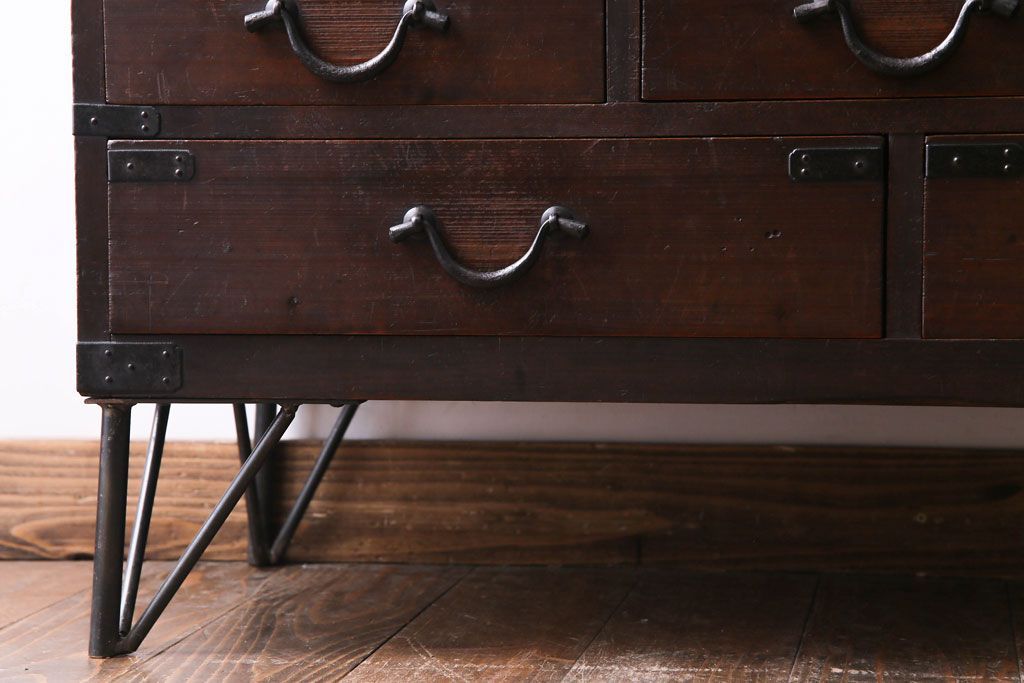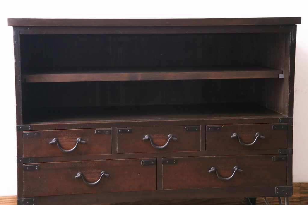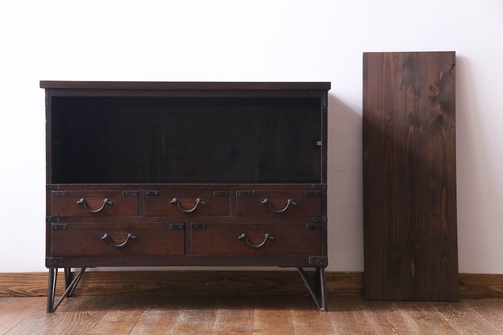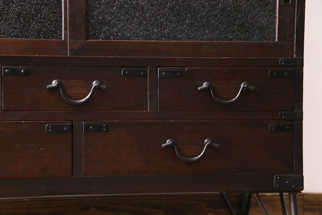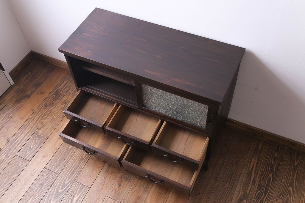 レトロ家具 和製アンティーク ダイヤガラス入り レトロな空間にも馴染むリメイク箪笥ローボード(ローチェスト、収納棚)