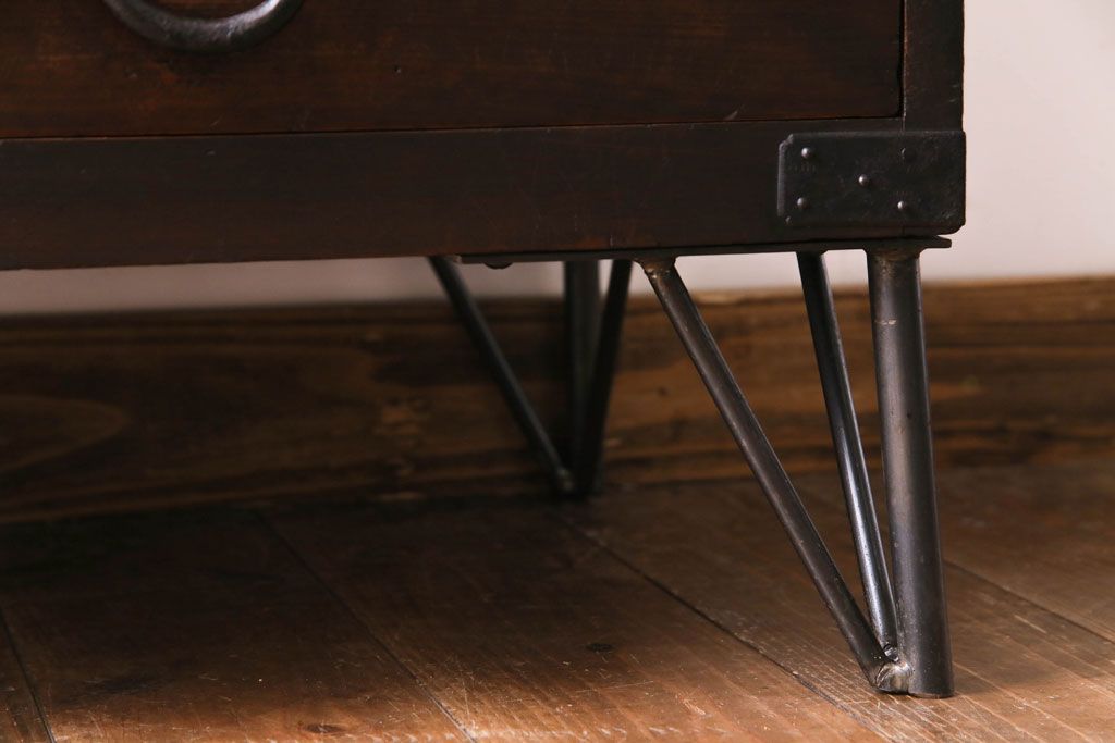 ラフジュ工房> 和箪笥 > レトロ家具 和製アンティーク ダイヤガラス入り レトロな空間にも馴染むリメイク箪笥ローボード(ローチェスト、収納棚)