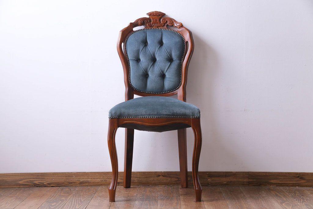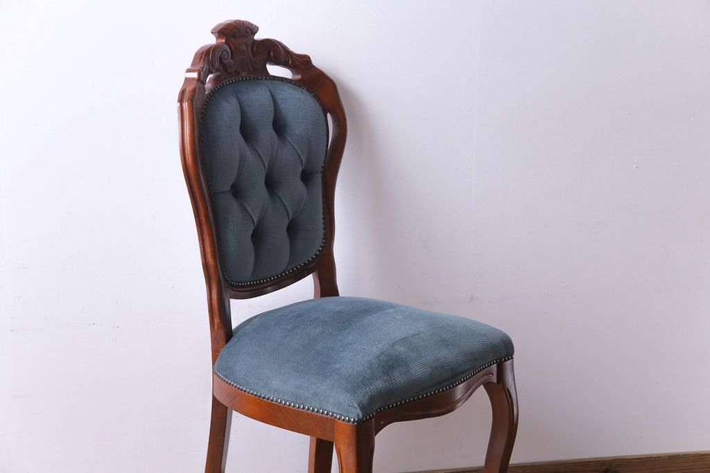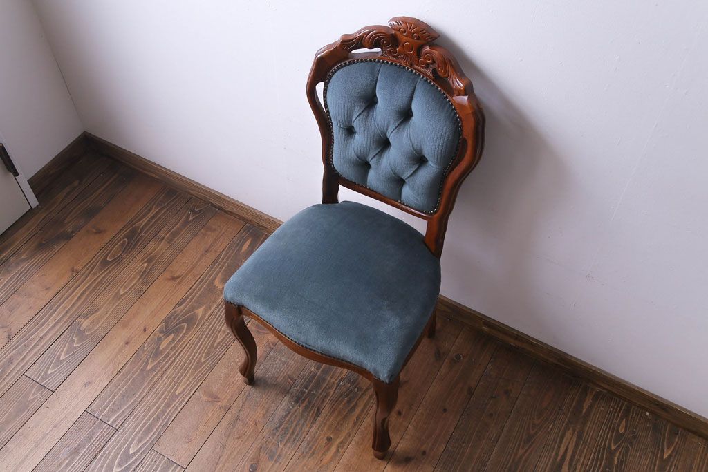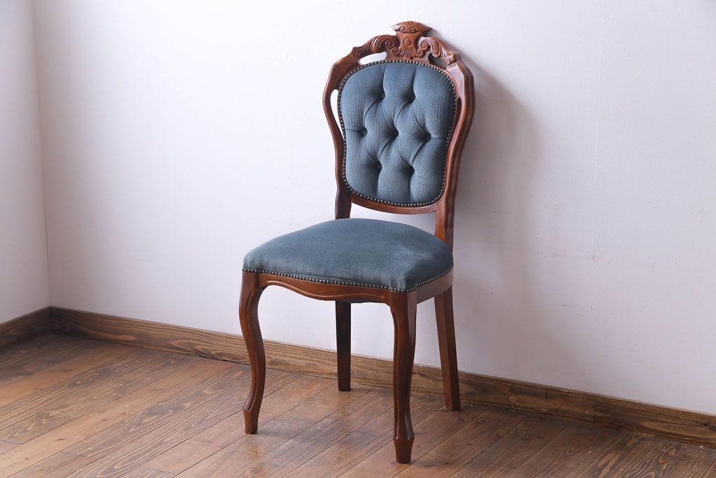 ビンテージ家具 ヨーロッパヴィンテージ クラシカルなデザインが目を惹くロココ調ダイニングチェア(サロンチェア、椅子)(1)