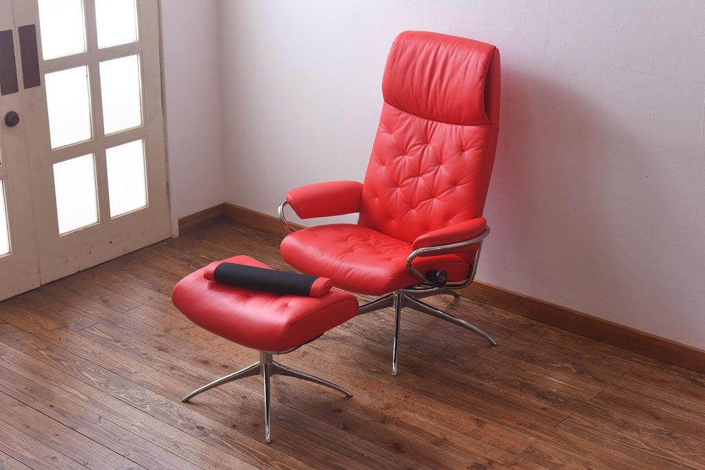 椅子・ベンチ> リクライニングチェア > 中古 EKORNES(エコーネス) ストレスレスメトロハイバックチェア・オットマン トマト(定価合わせて約32万円)(1)