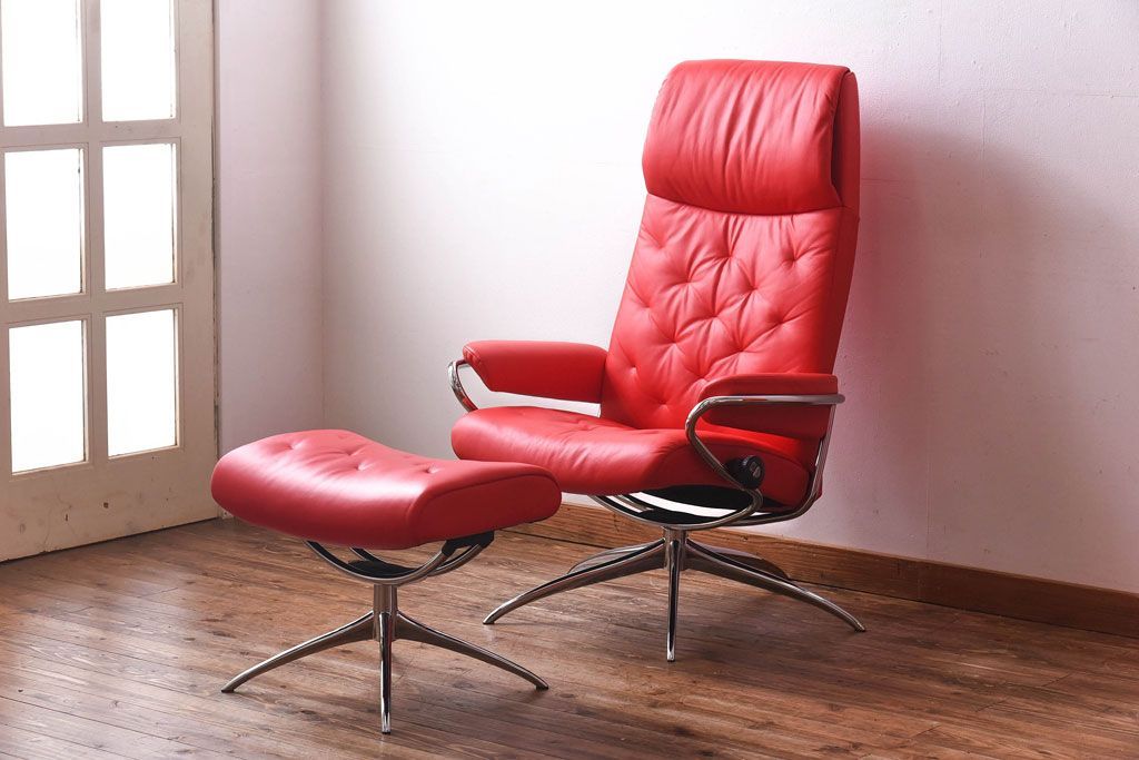 椅子・ベンチ> アームチェア > 中古 EKORNES(エコーネス) ストレスレスメトロハイバックチェア・オットマン トマト(定価合わせて約32万円)(2)