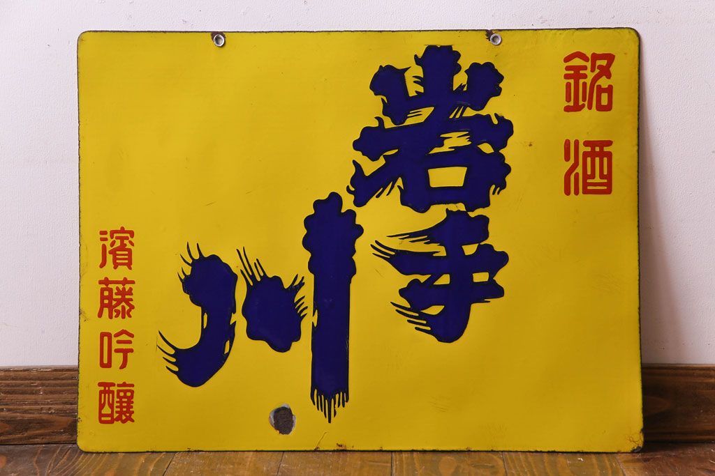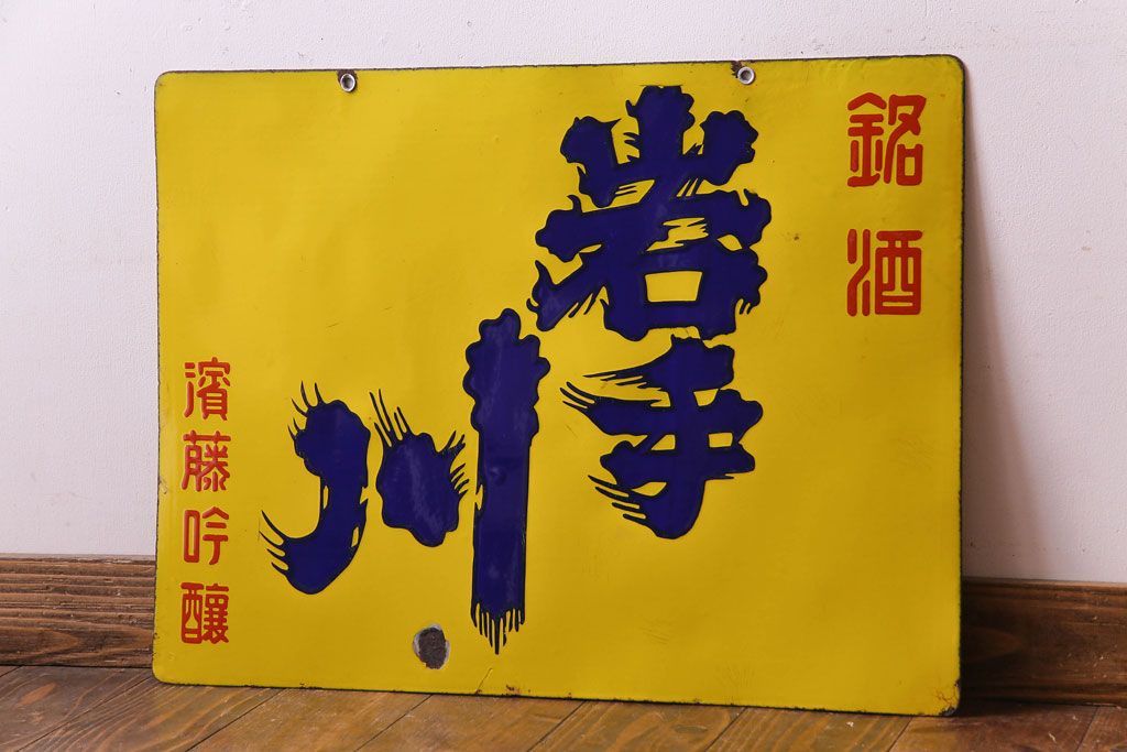 ラフジュ工房> 雑貨> ノベルティーグッズ > アンティーク雑貨 昭和レトロ 銘酒 岩手川 アンティークの両面ホーロー看板(企業看板)