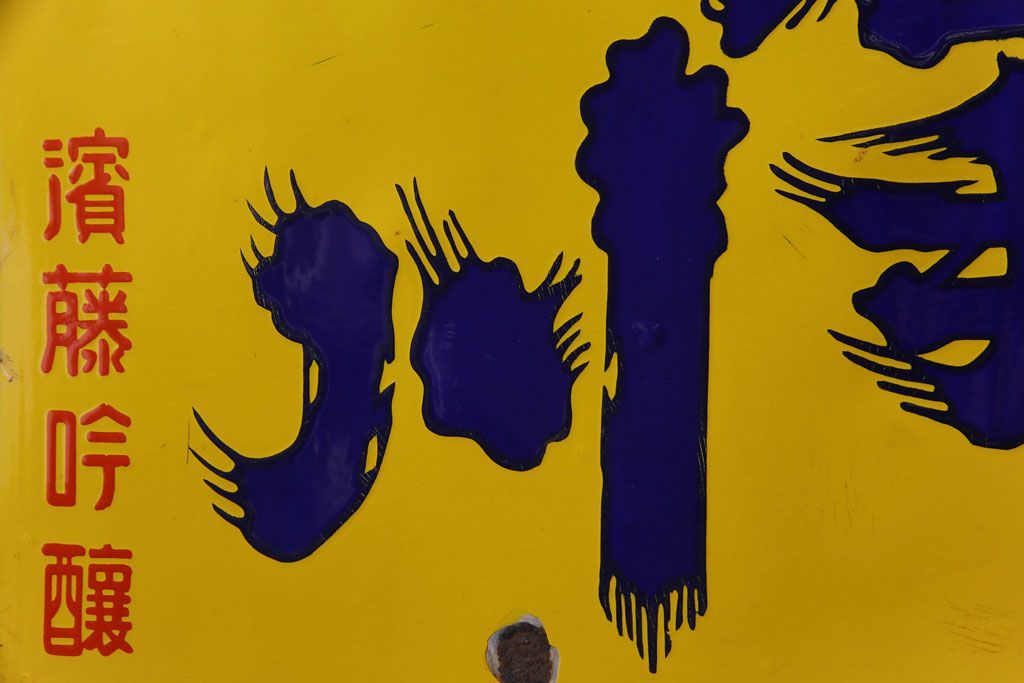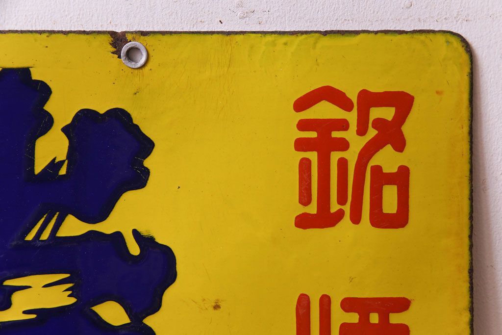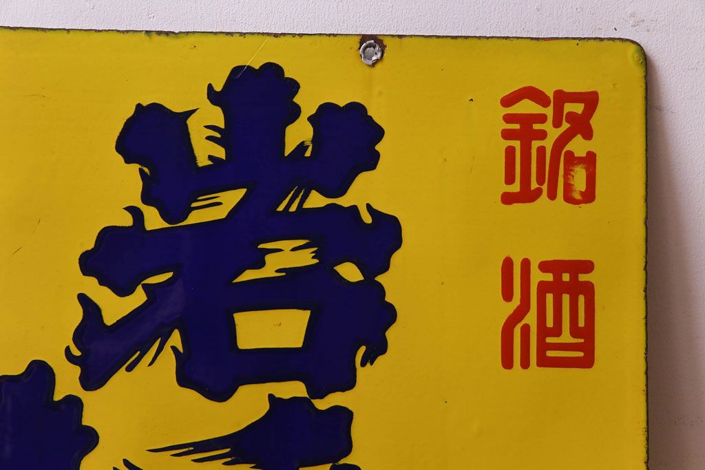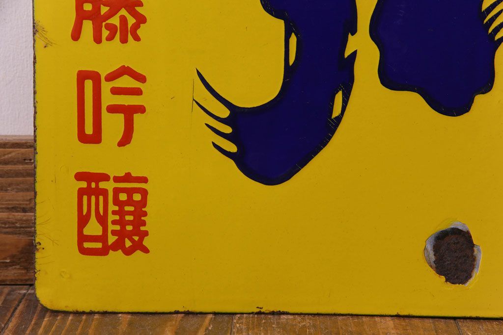 アンティーク雑貨 昭和レトロ 銘酒 岩手川 アンティークの両面ホーロー看板(企業看板)