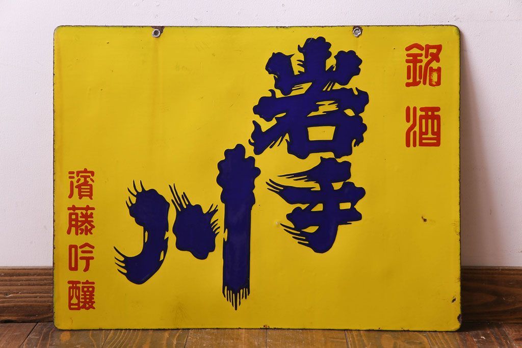 ラフジュ工房> 雑貨> ポスター・写真 > アンティーク雑貨 昭和レトロ 銘酒 岩手川 アンティークの両面ホーロー看板(企業看板)