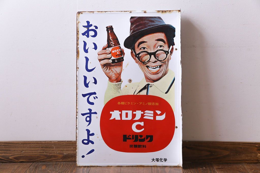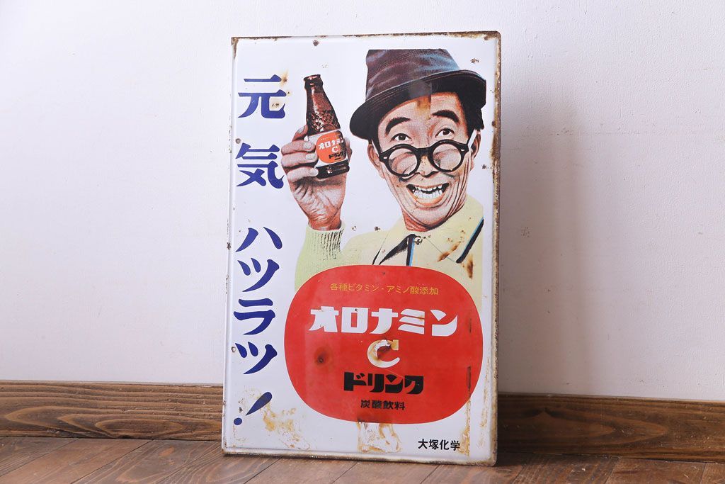 アンティーク雑貨 昭和レトロ 大塚化学 オロナミンC ノスタルジックな両面ホーロー看板(企業看板)