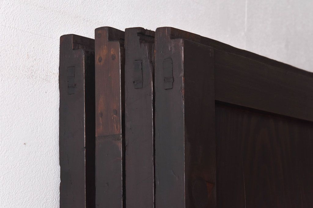 和製アンティーク 杉材 濃い色味のモダンな格子帯戸(引き戸、建具)4枚セット