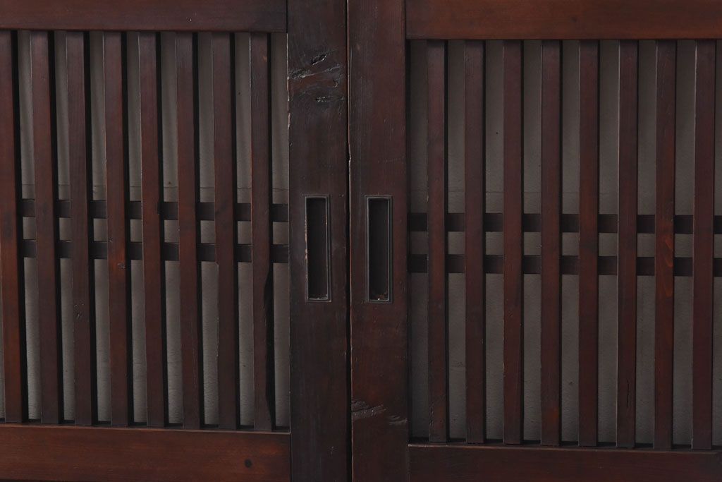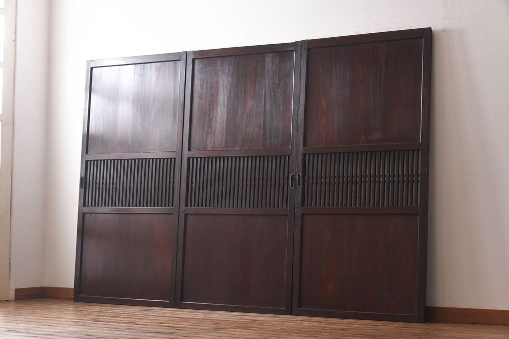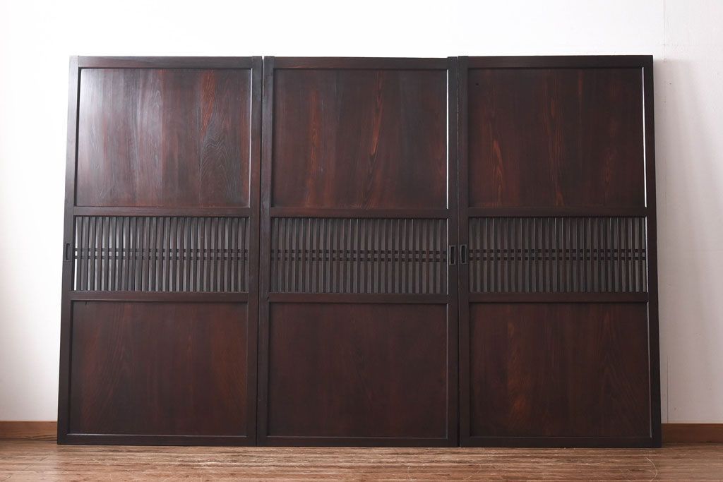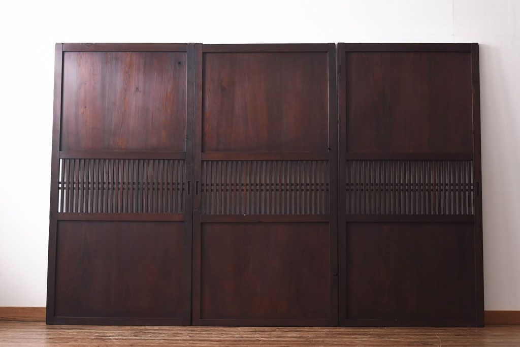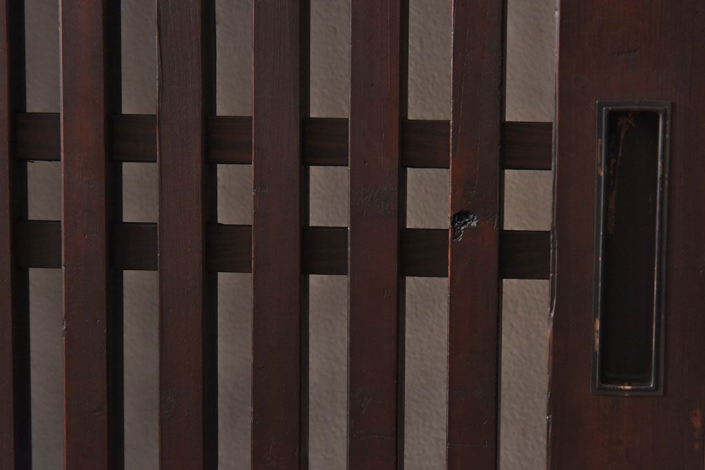 和製アンティーク 杉材 武骨な雰囲気の漂う格子帯戸(板戸、格子戸、引き戸、建具)3枚組
