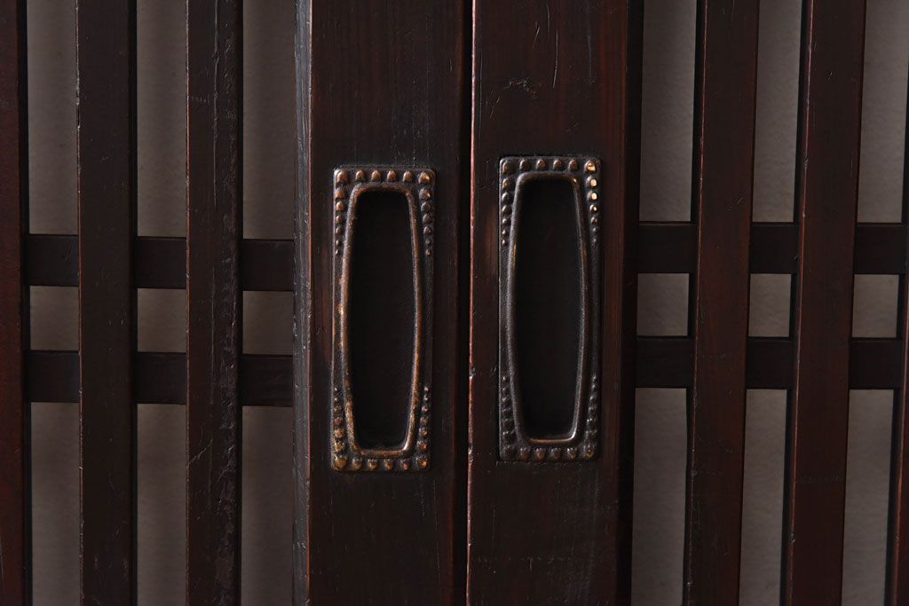 和製アンティーク 杉材 武骨な雰囲気の漂う格子帯戸(板戸、格子戸、引き戸、建具)3枚組です。