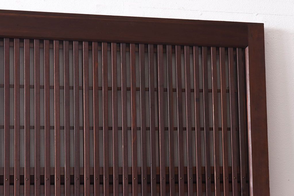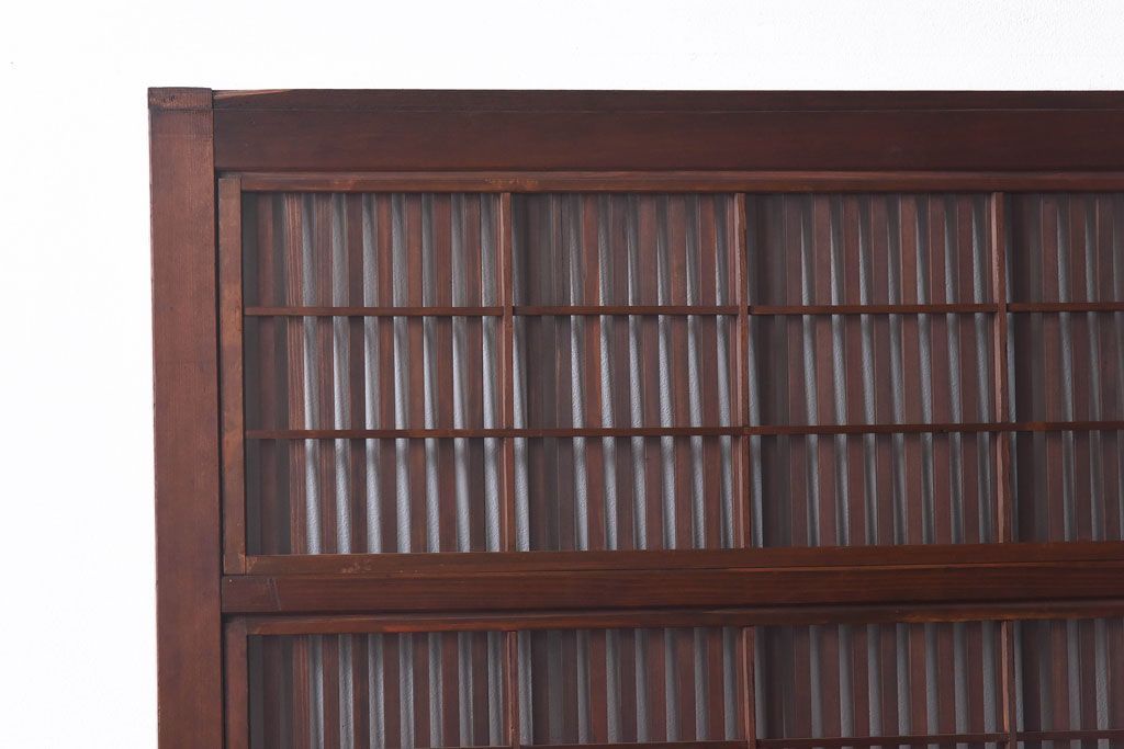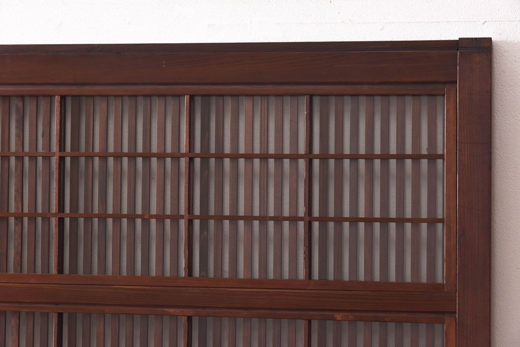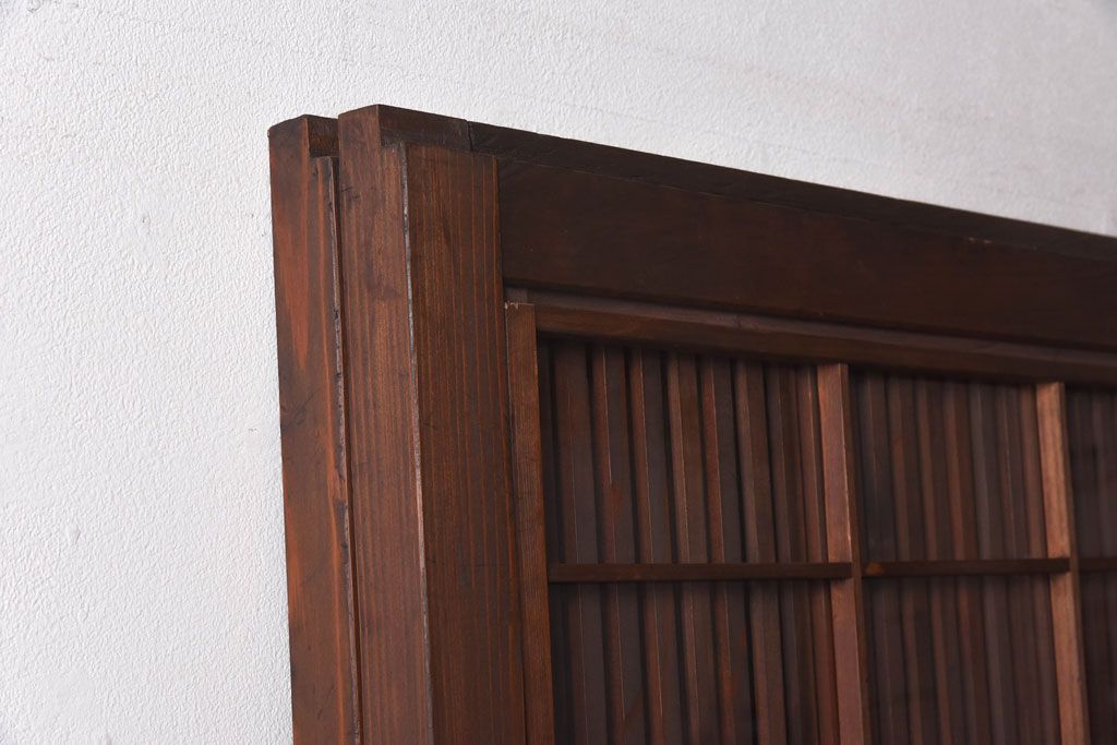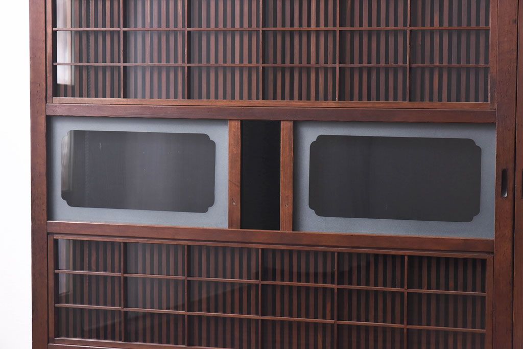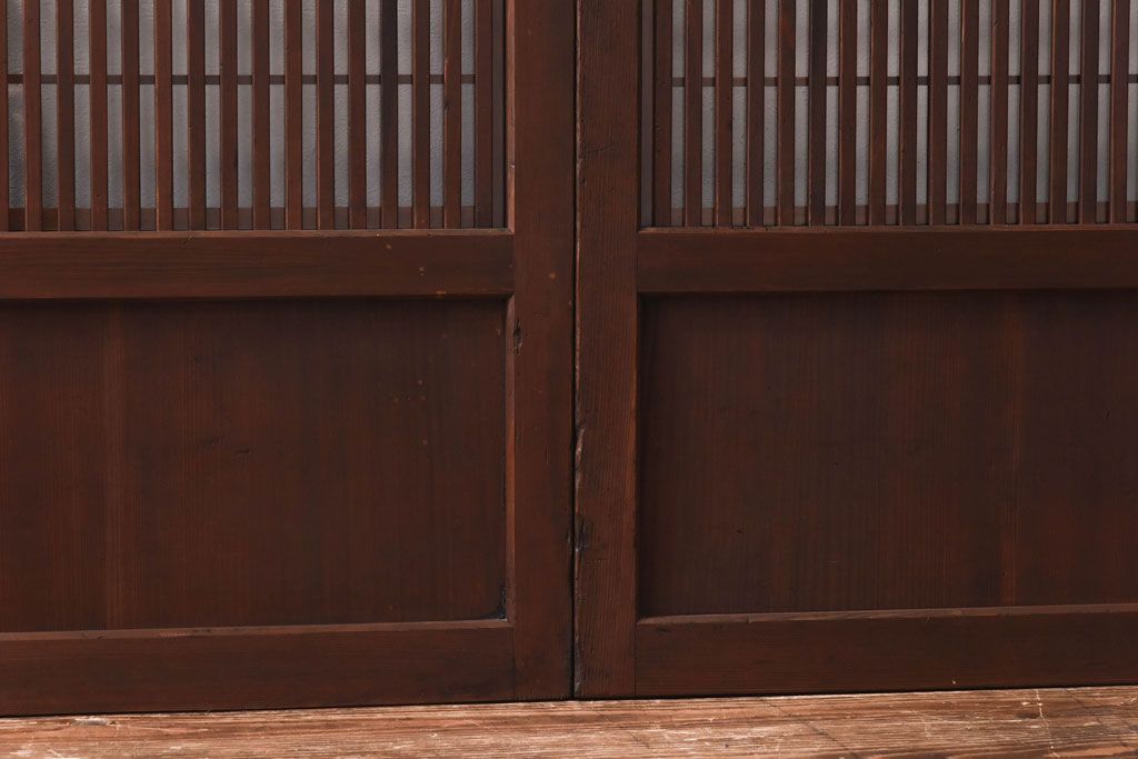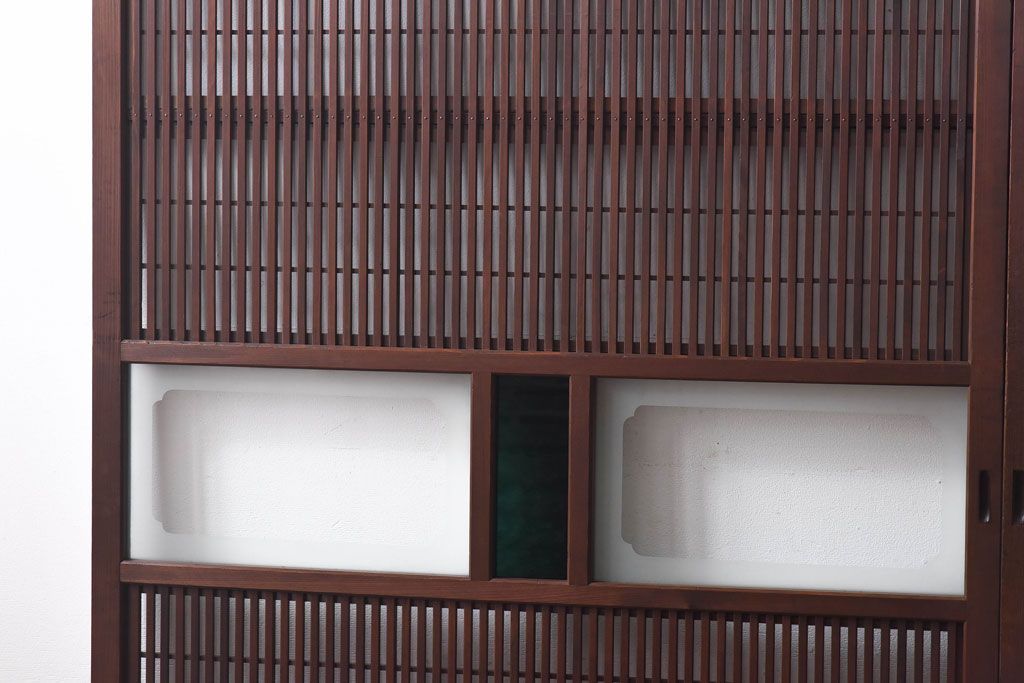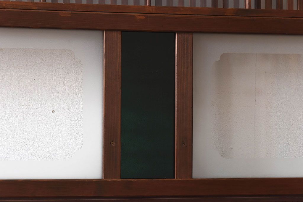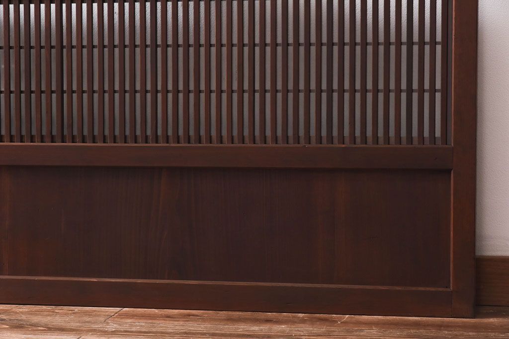 昭和中期 幅広! 板ガラス裏障子留め 色ガラスがアクセントのガラス入り格子戸(ガラス帯戸、引き戸、建具)2枚組(1)