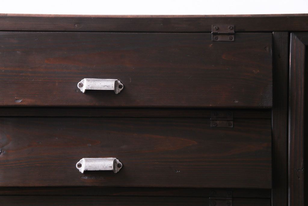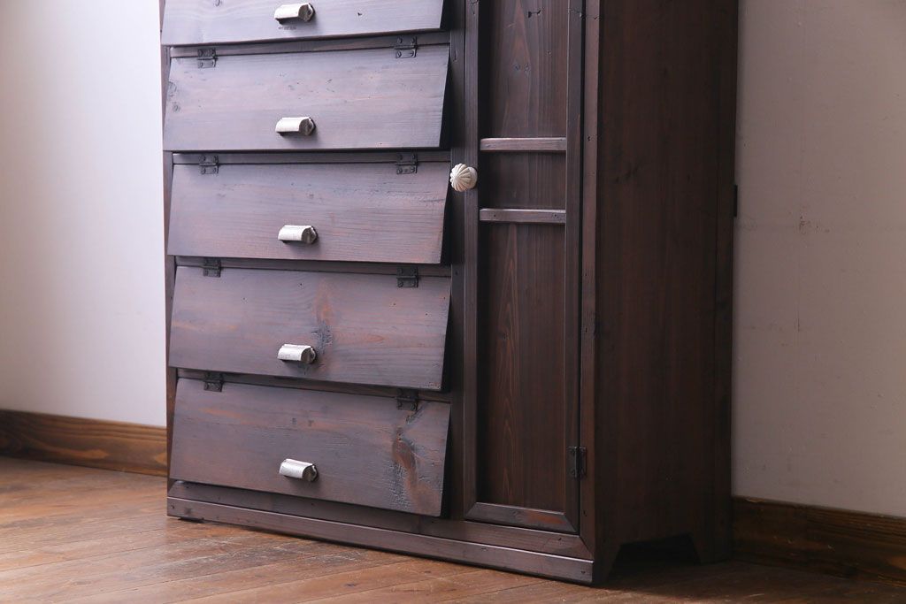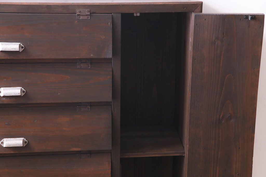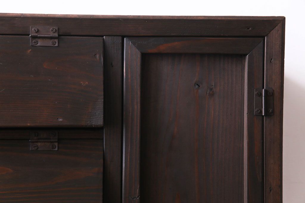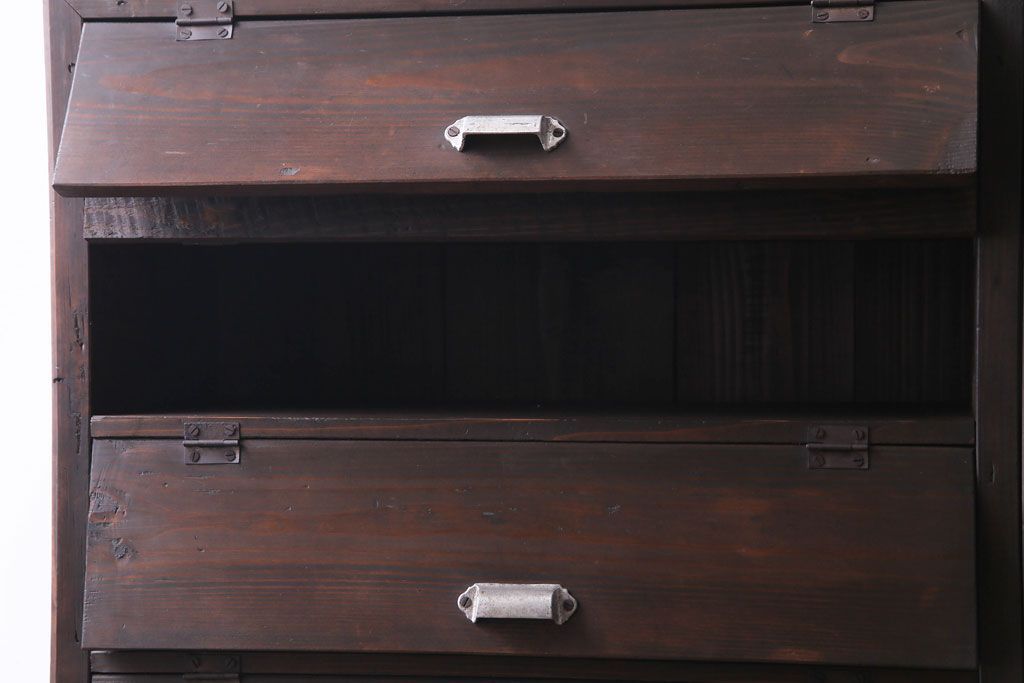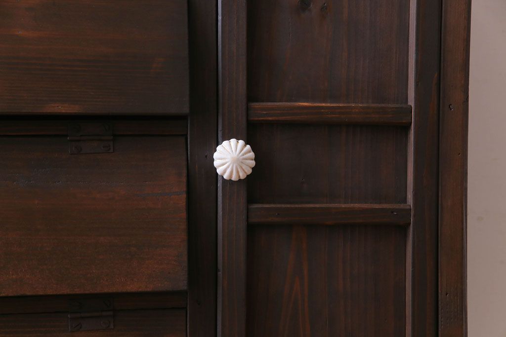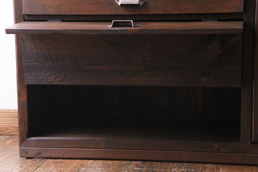 和製アンティーク 古材使用の横開き戸付きパタパタ収納棚(下駄箱、靴箱)