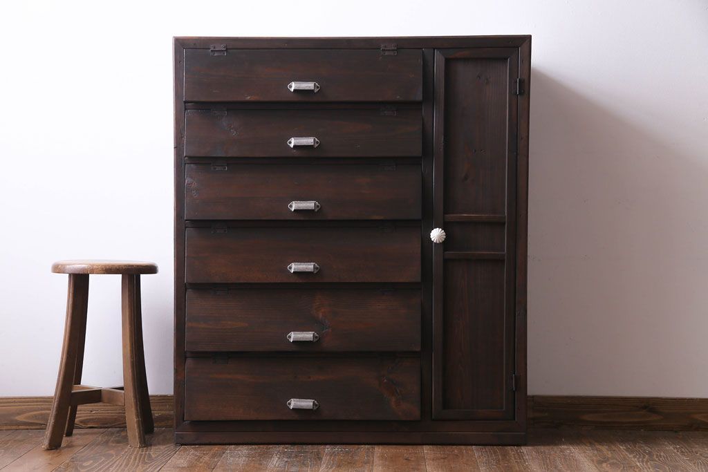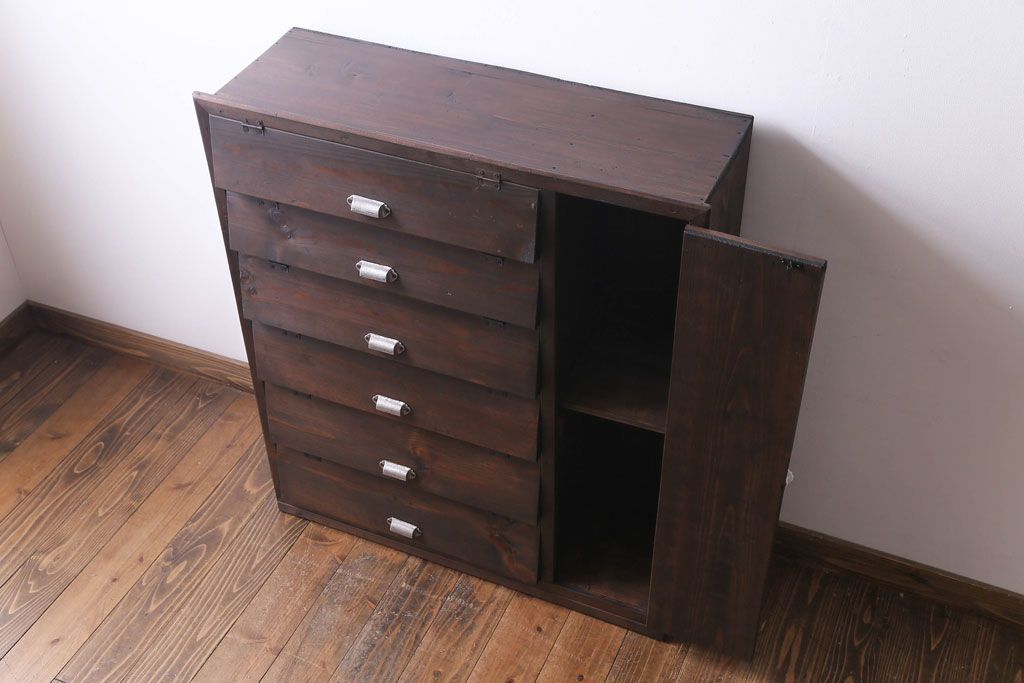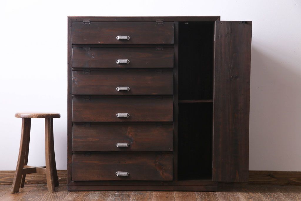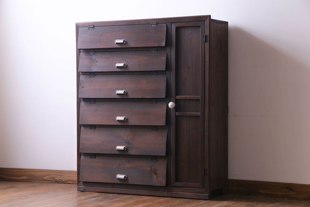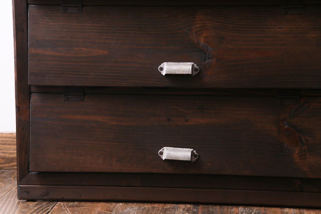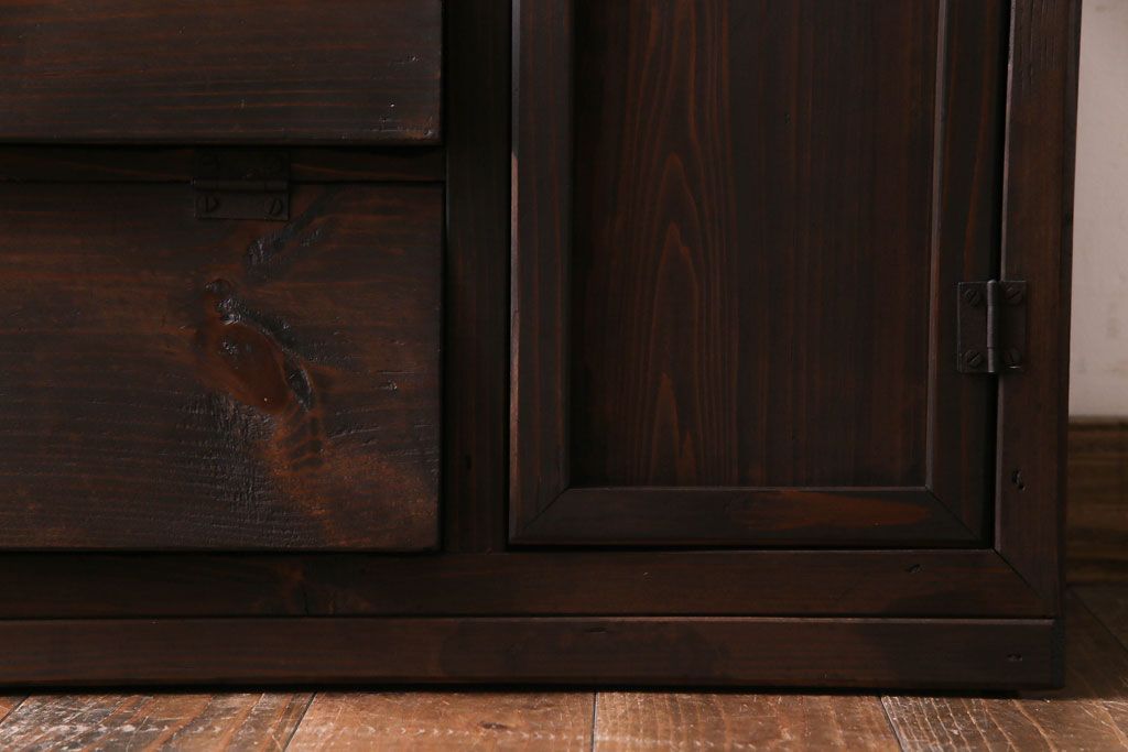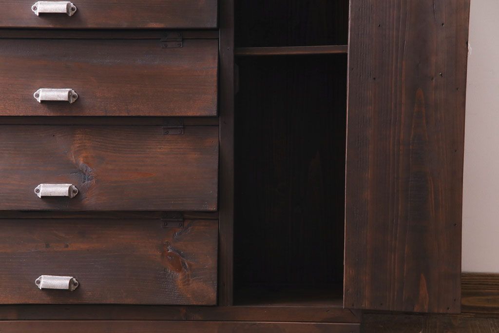 和製アンティーク 古材使用の横開き戸付きパタパタ収納棚(下駄箱、靴箱)