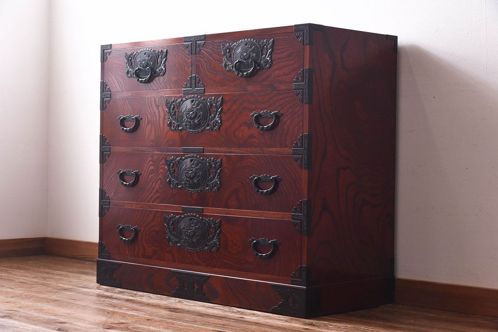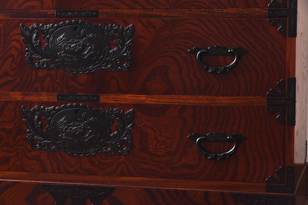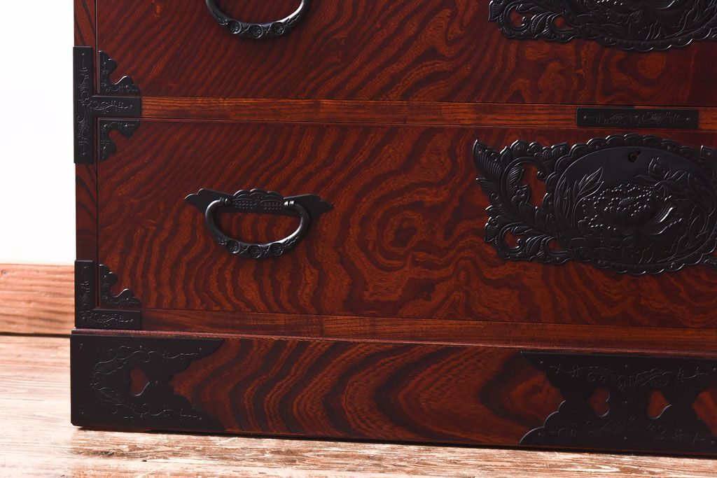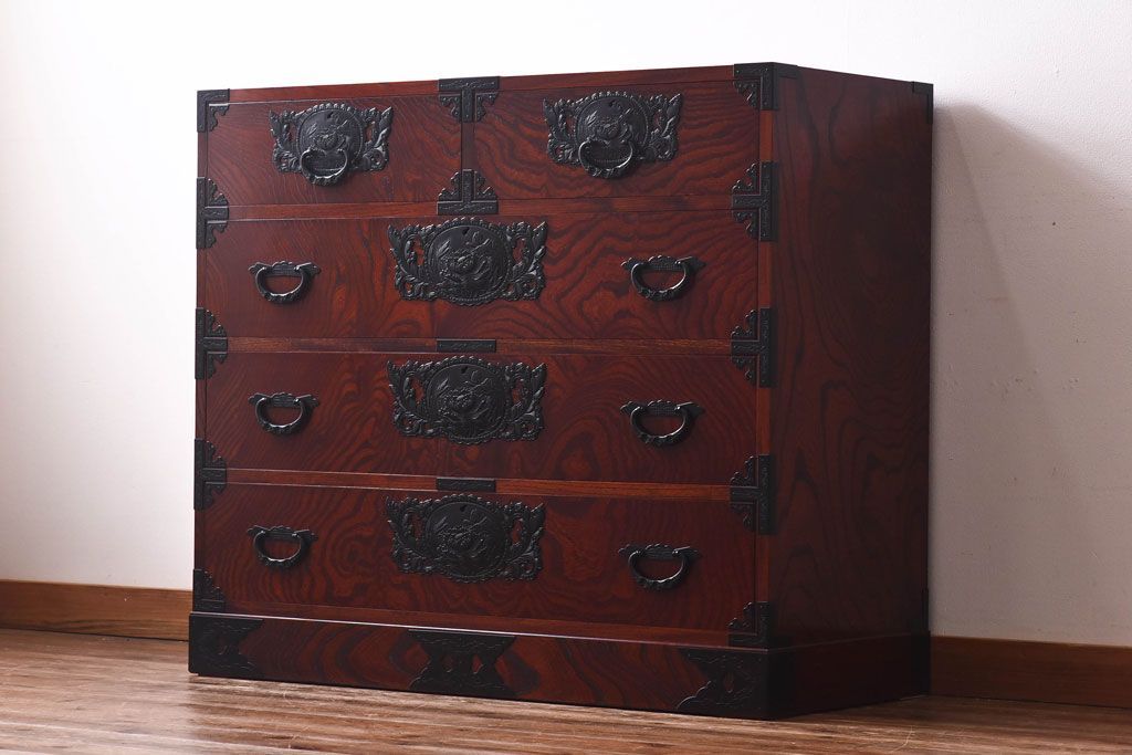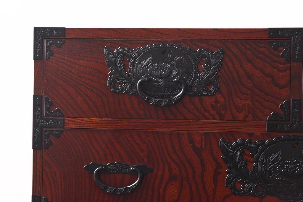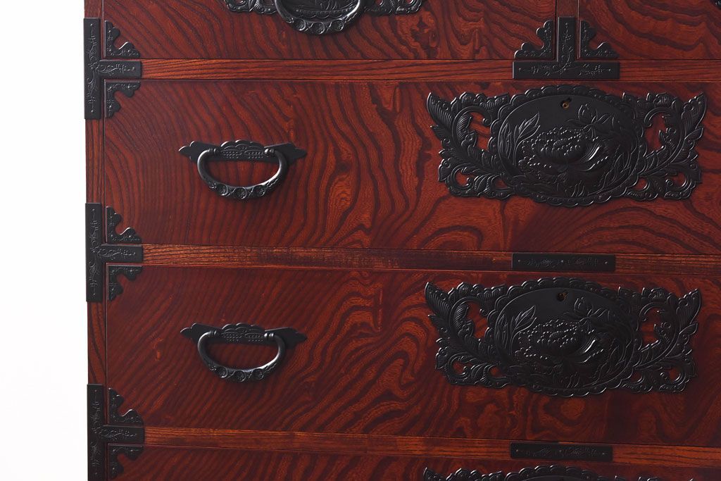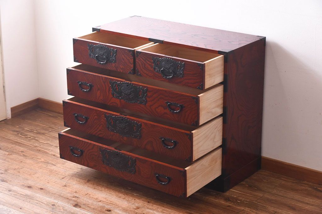 ラフジュ工房> 和箪笥 > 中古 仙台民芸箪笥(仙台箪笥) 欅産業 拭き漆塗り 三・五尺箪笥90(整理箪笥、衣装箪笥、引き出し)(定価約39万円)