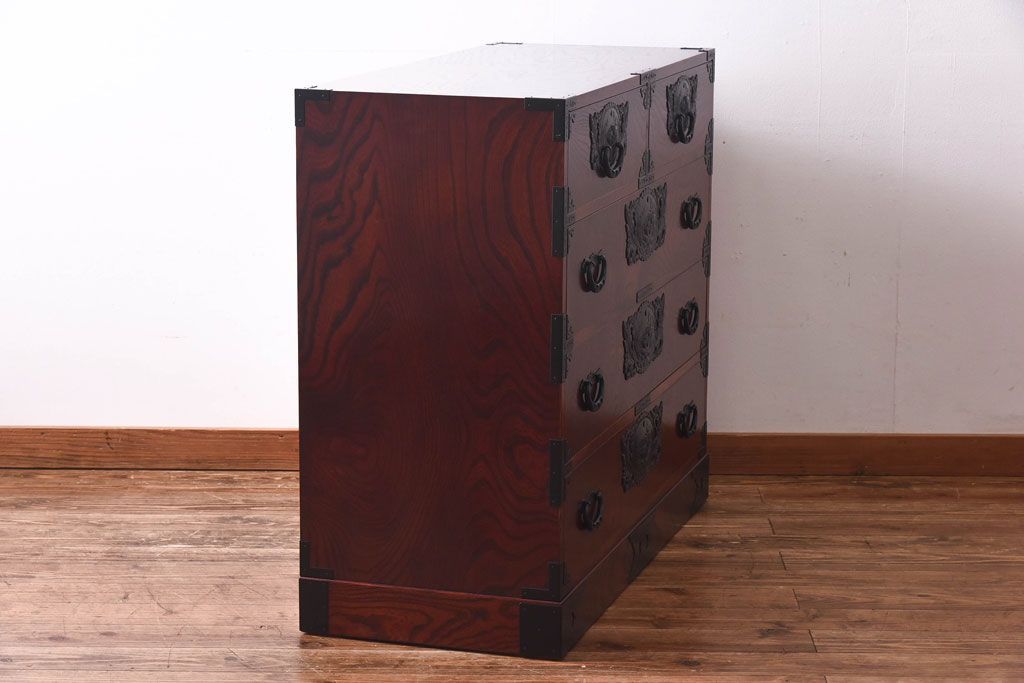 中古 仙台民芸箪笥(仙台箪笥) 欅産業 拭き漆塗り 三・五尺箪笥90(整理箪笥、衣装箪笥、引き出し)(定価約39万円)