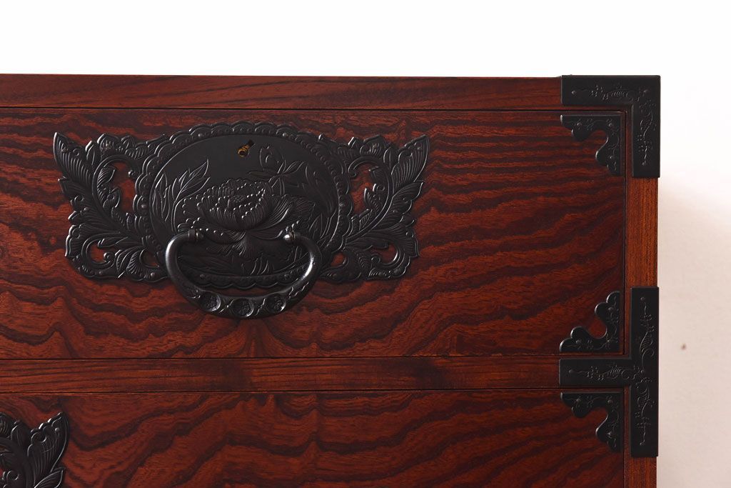 ラフジュ工房> 民芸家具 > 中古 仙台民芸箪笥(仙台箪笥) 欅産業 拭き漆塗り 三・五尺箪笥90(整理箪笥、衣装箪笥、引き出し)(定価約39万円)