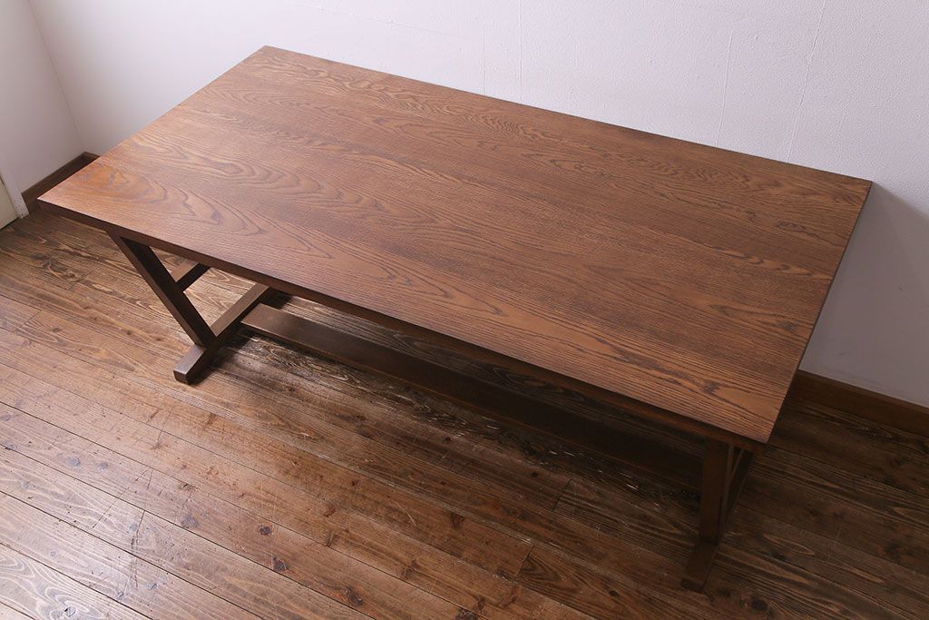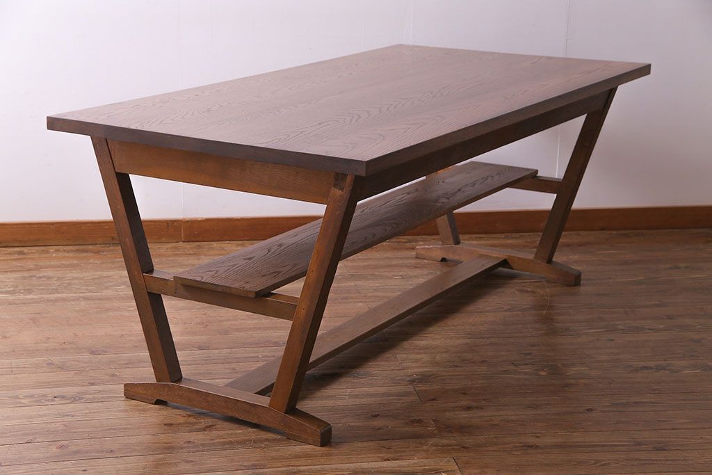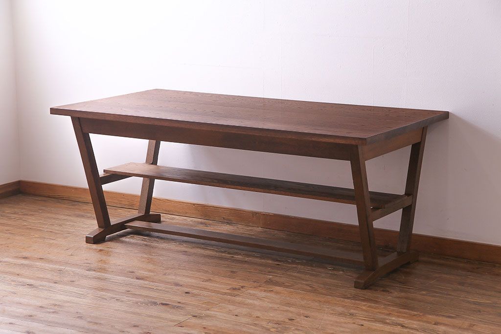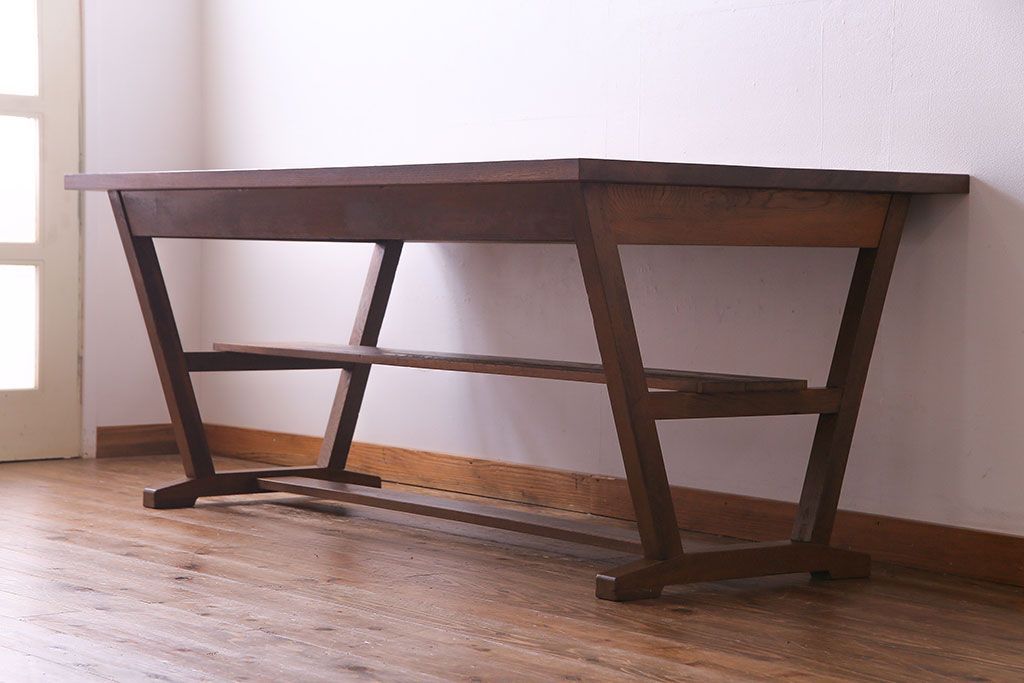 ラフジュ工房> テーブル> 作業台 > 昭和レトロ ホワイトオーク材 学校の作業台をリメイクしたダイニングテーブル(机、作業台)(1)