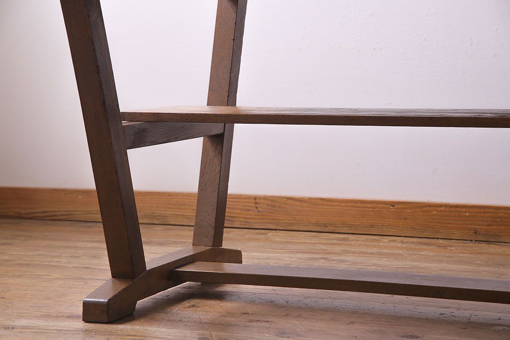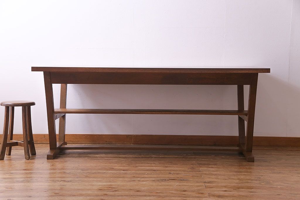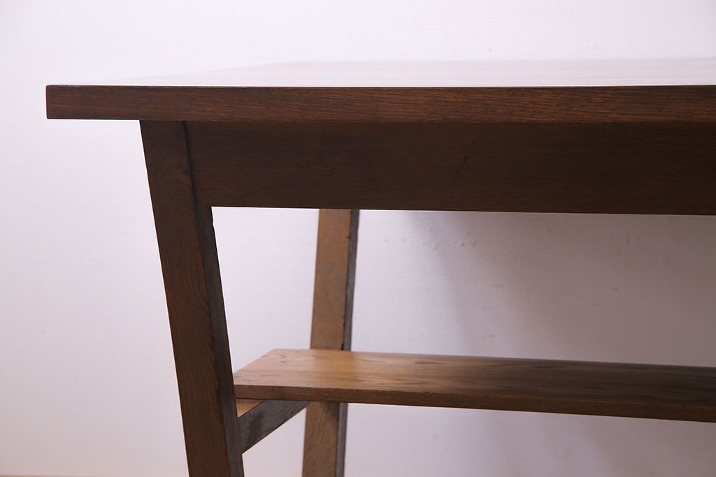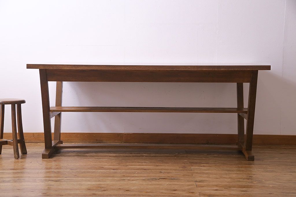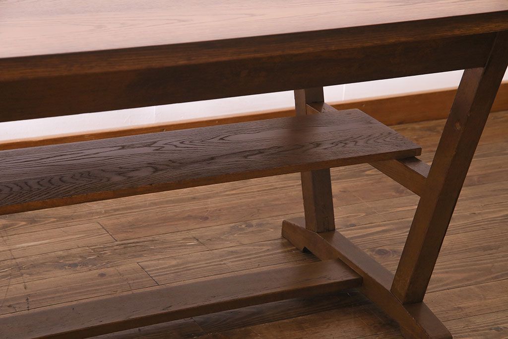 昭和レトロ ホワイトオーク材 学校の作業台をリメイクしたダイニングテーブル(机、作業台)(1)