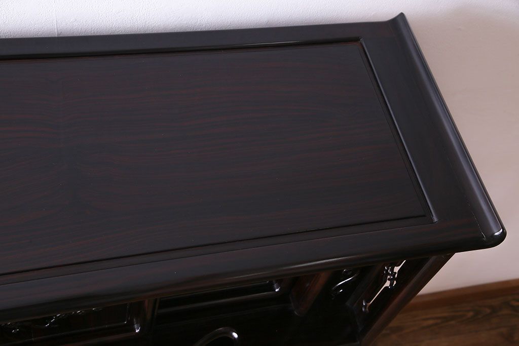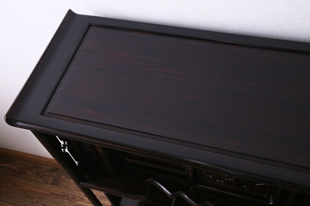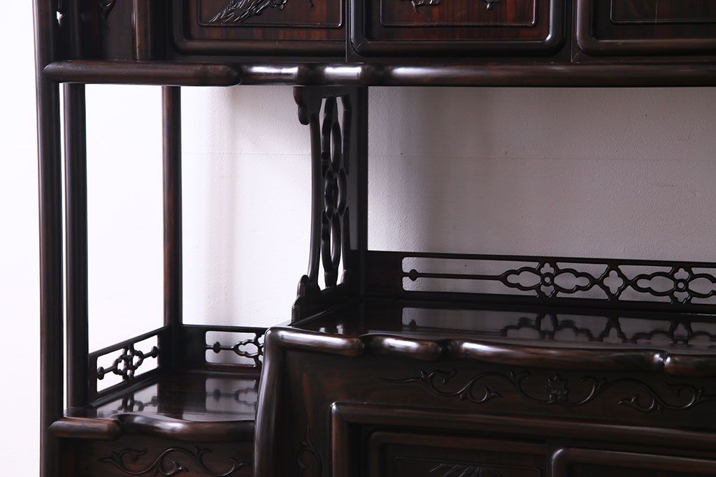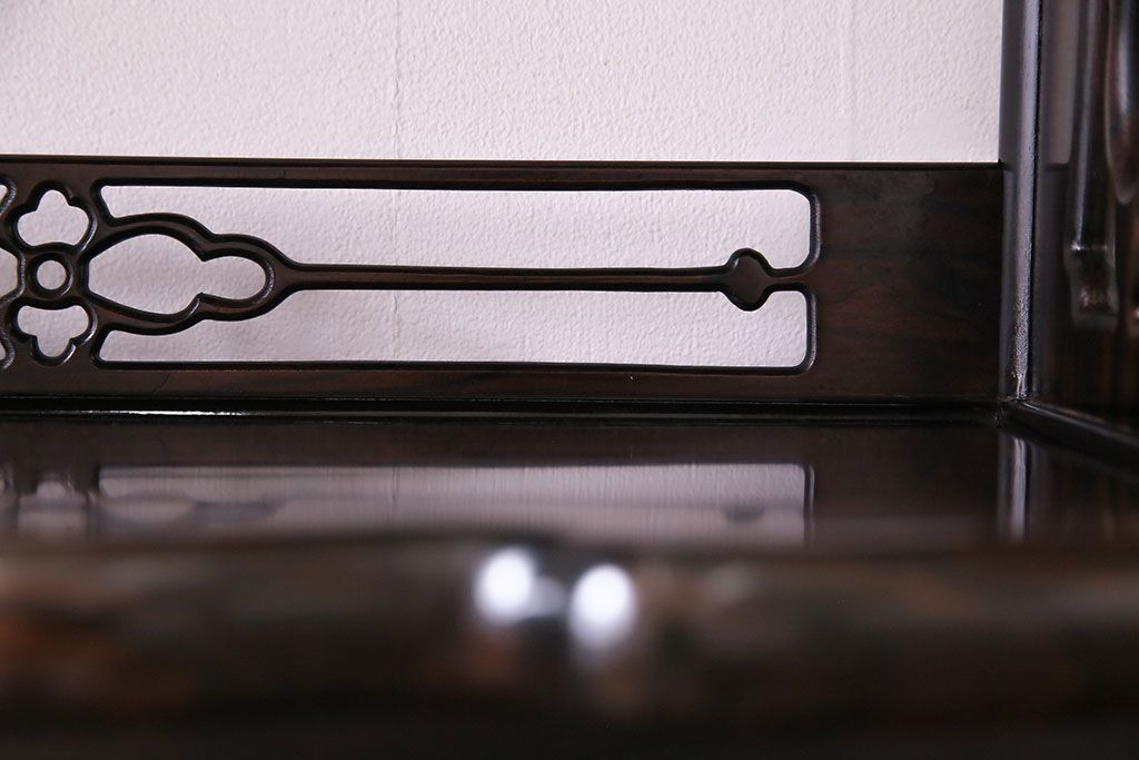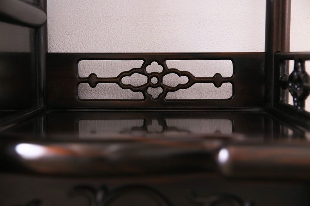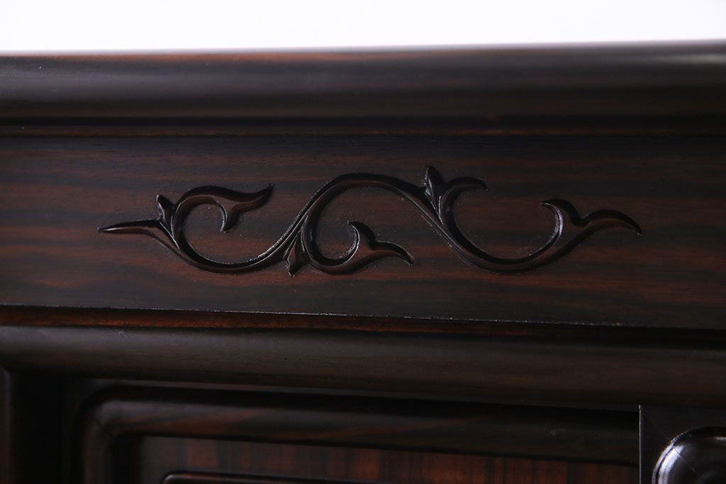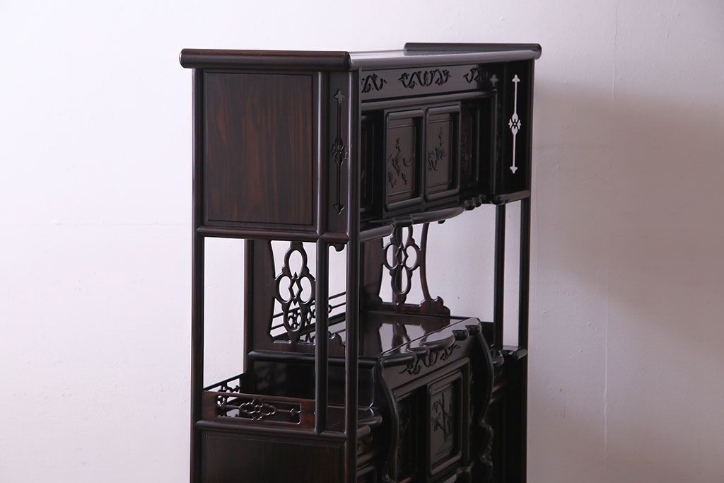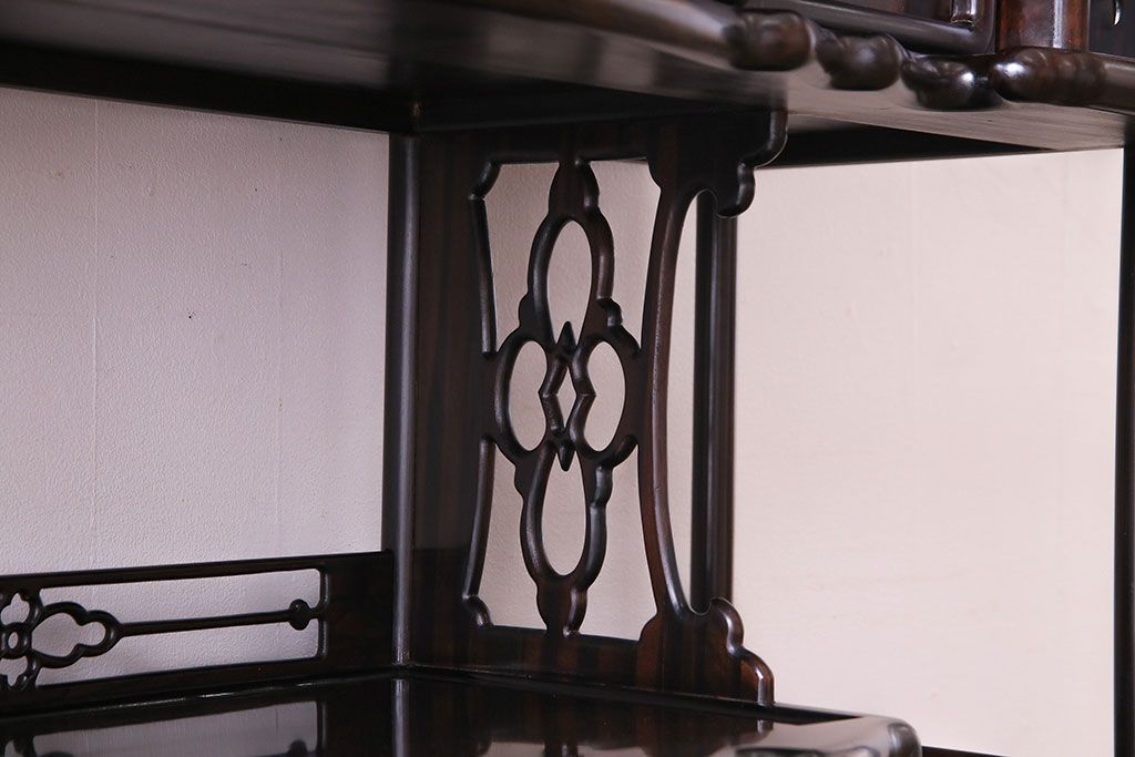 アンティーク家具 アンティーク 黒檀材 凝った意匠が目を引く上品な茶棚(飾り棚、戸棚)