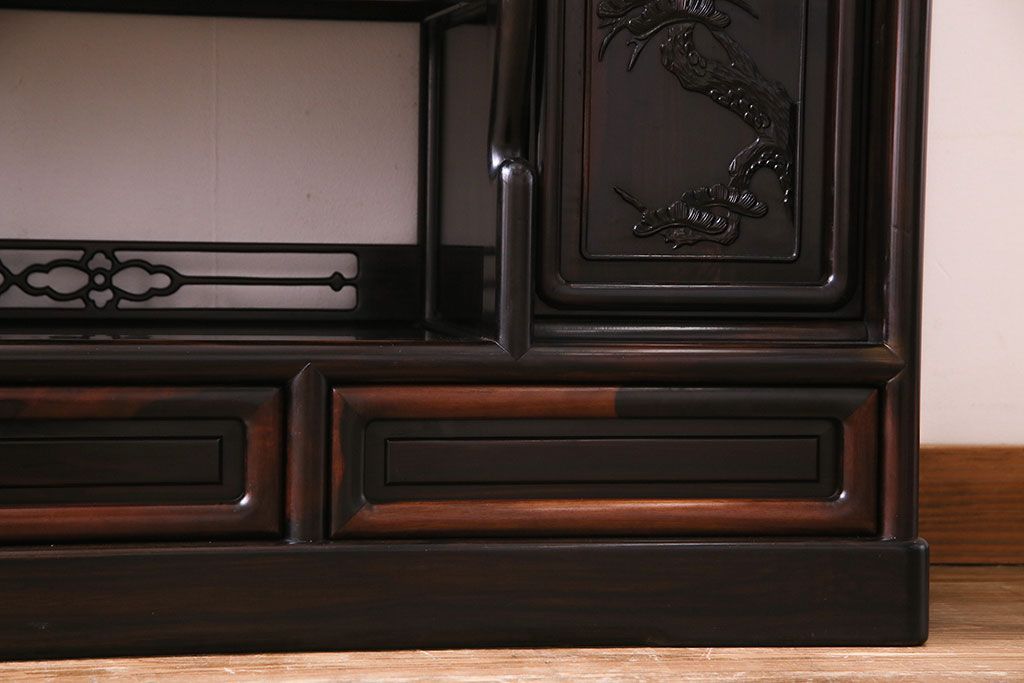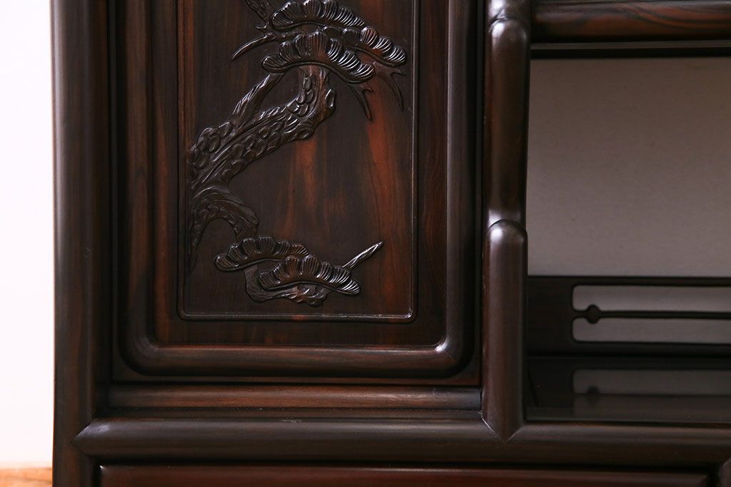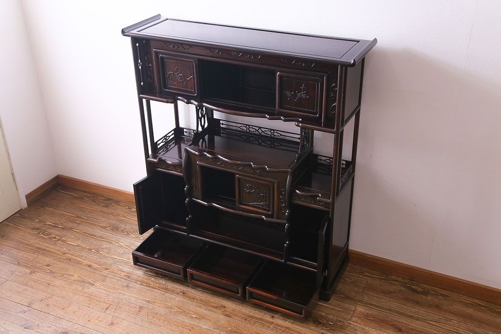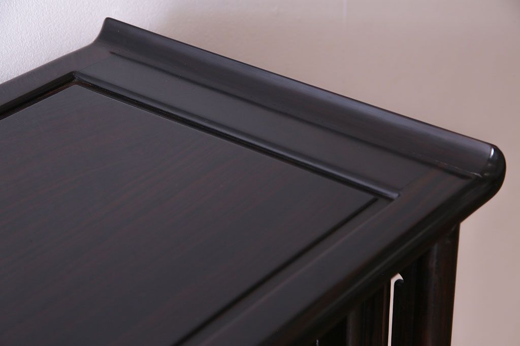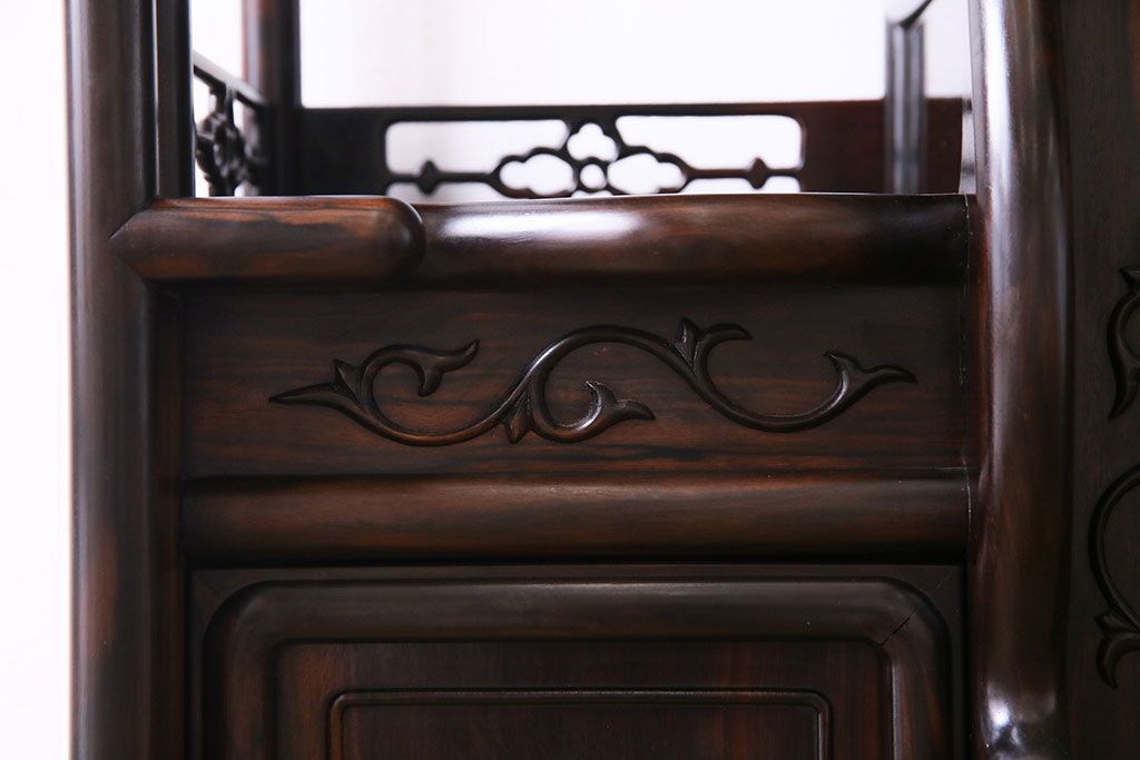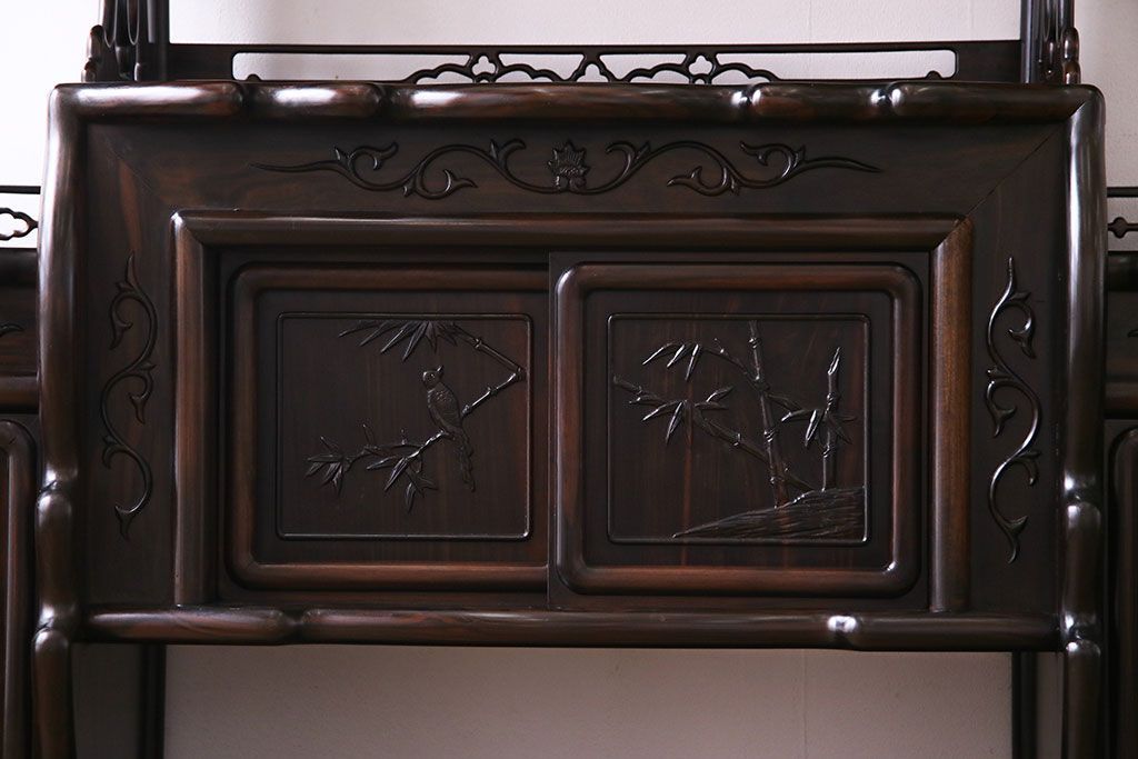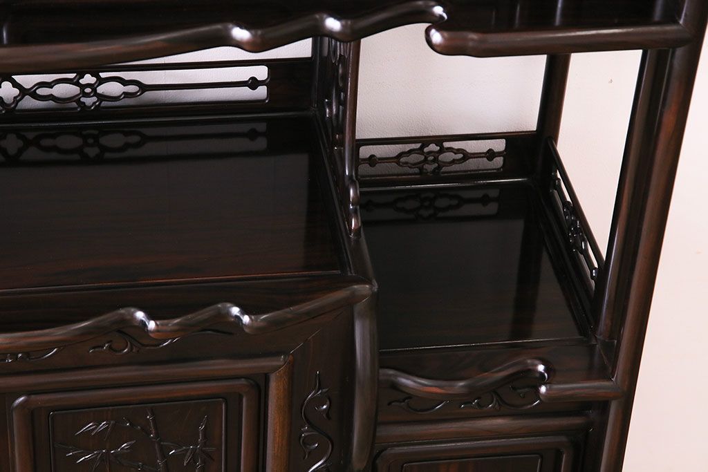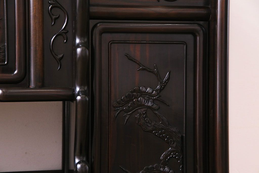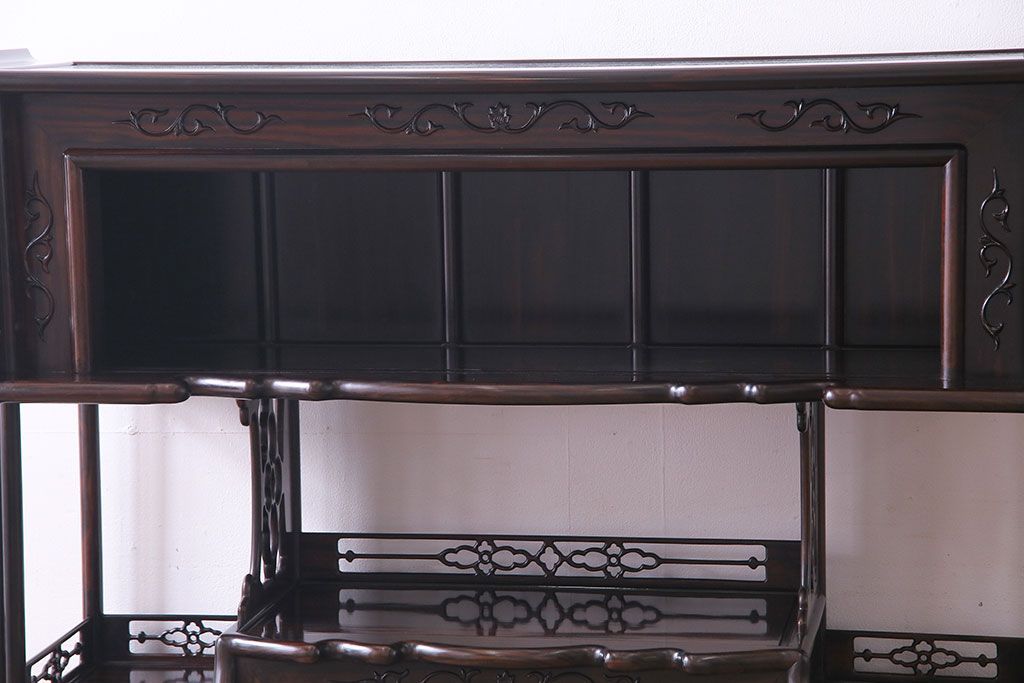 アンティーク家具 アンティーク 黒檀材 凝った意匠が目を引く上品な茶棚(飾り棚、戸棚)