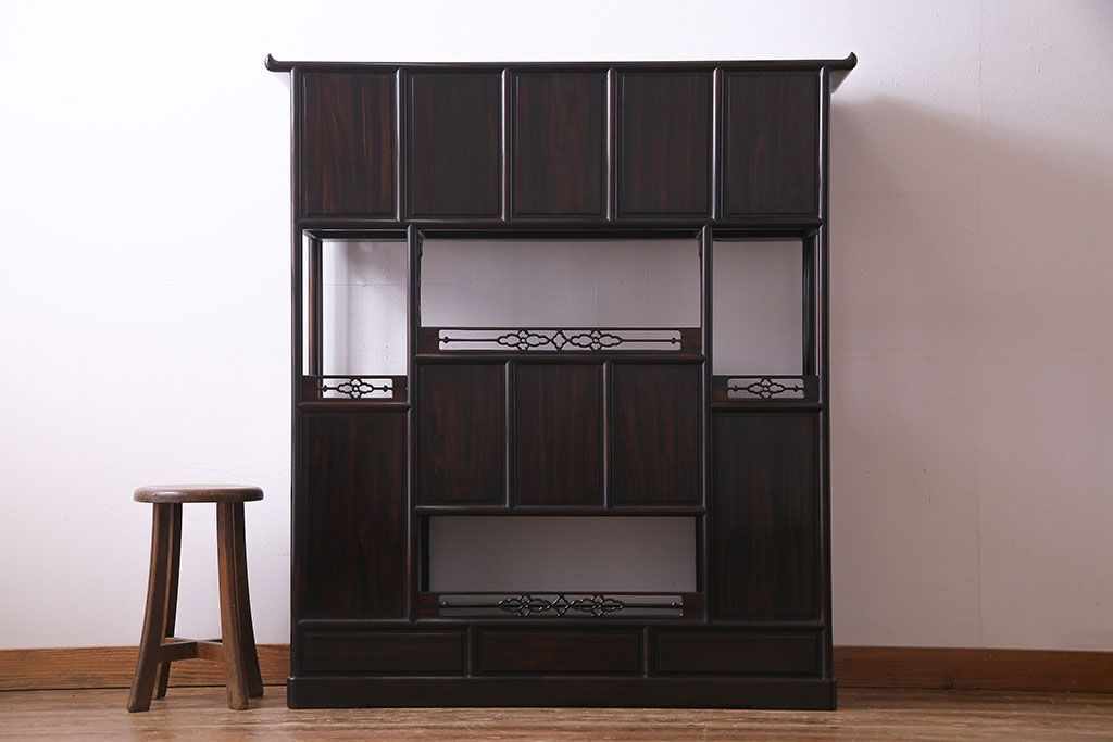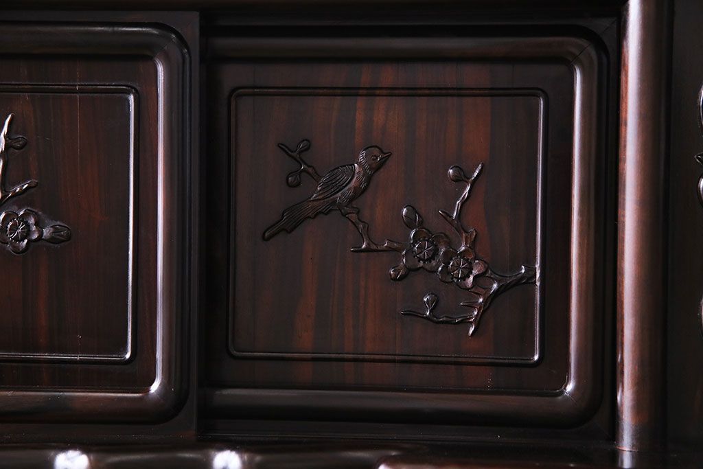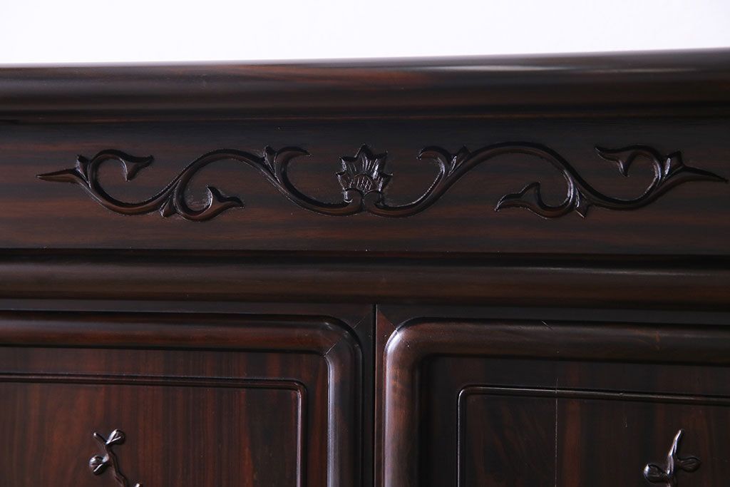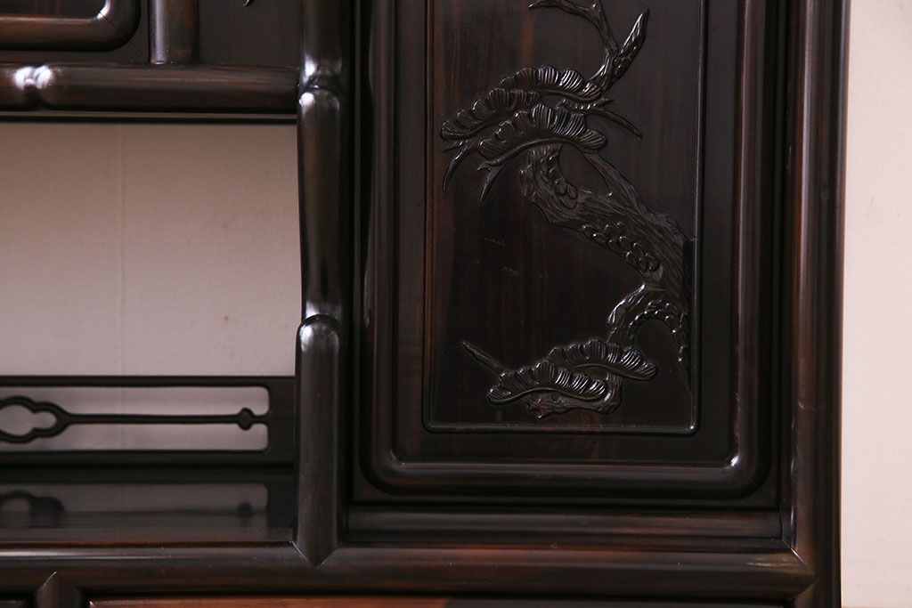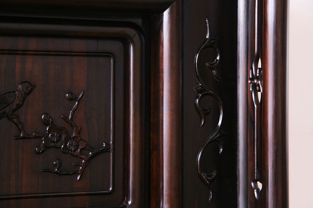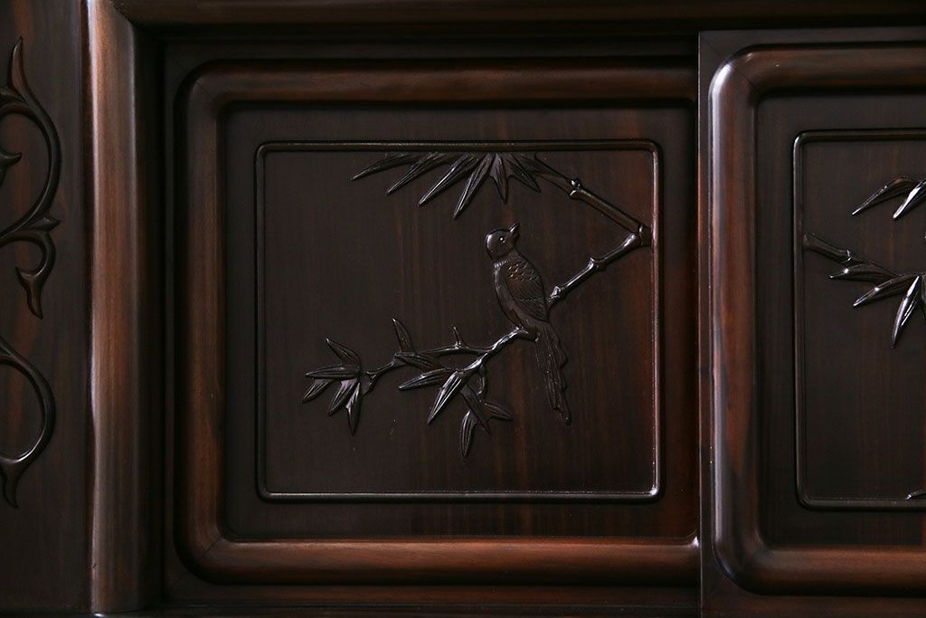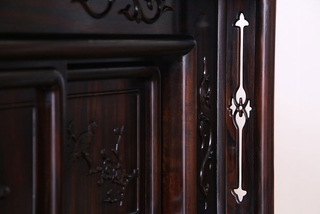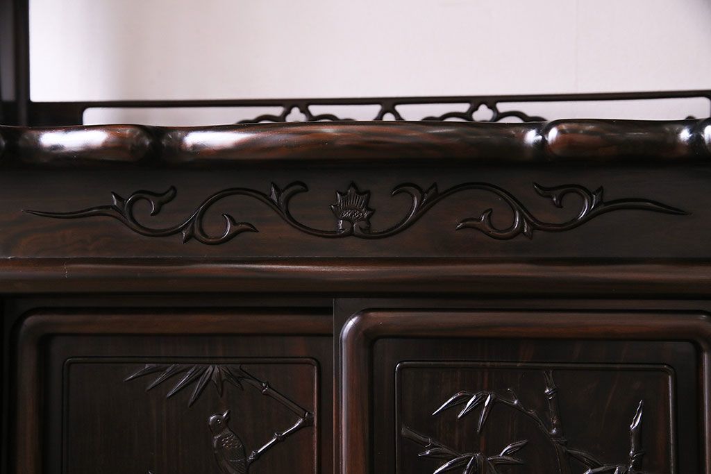 アンティーク家具 アンティーク 黒檀材 凝った意匠が目を引く上品な茶棚(飾り棚、戸棚)