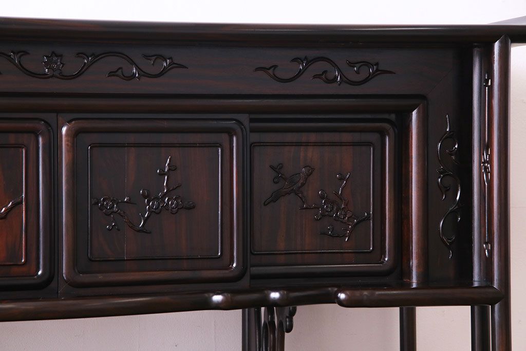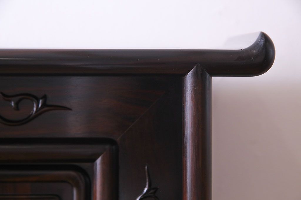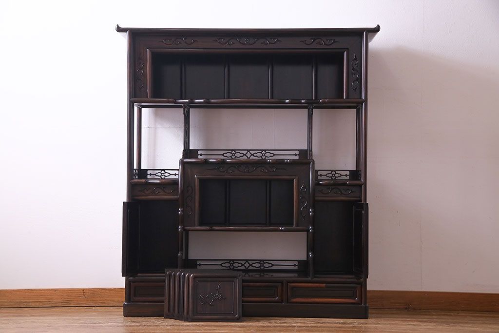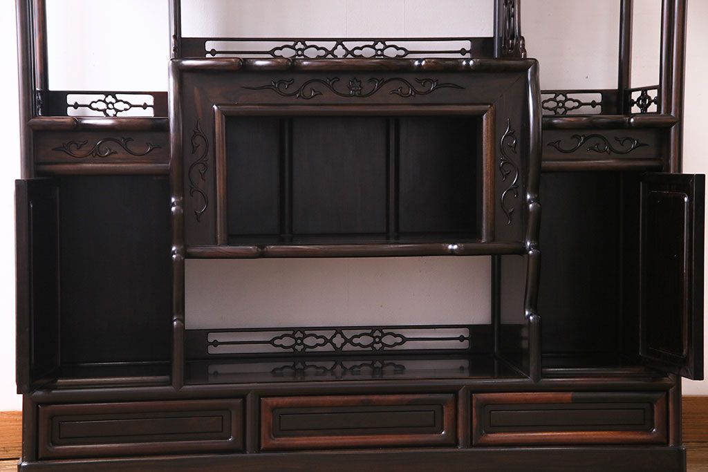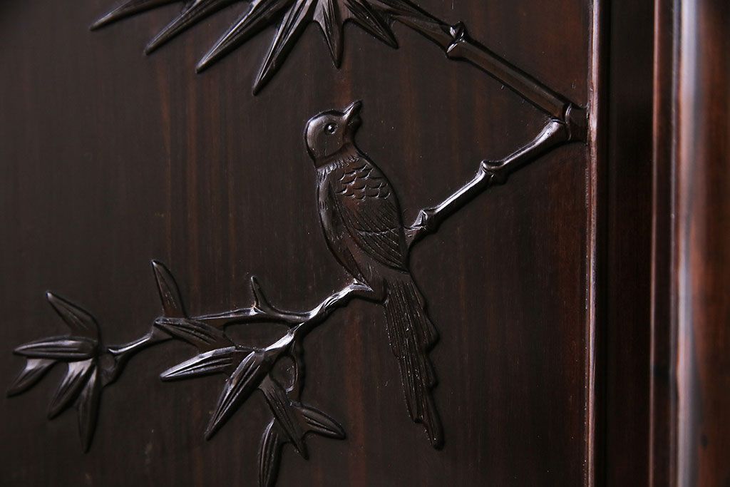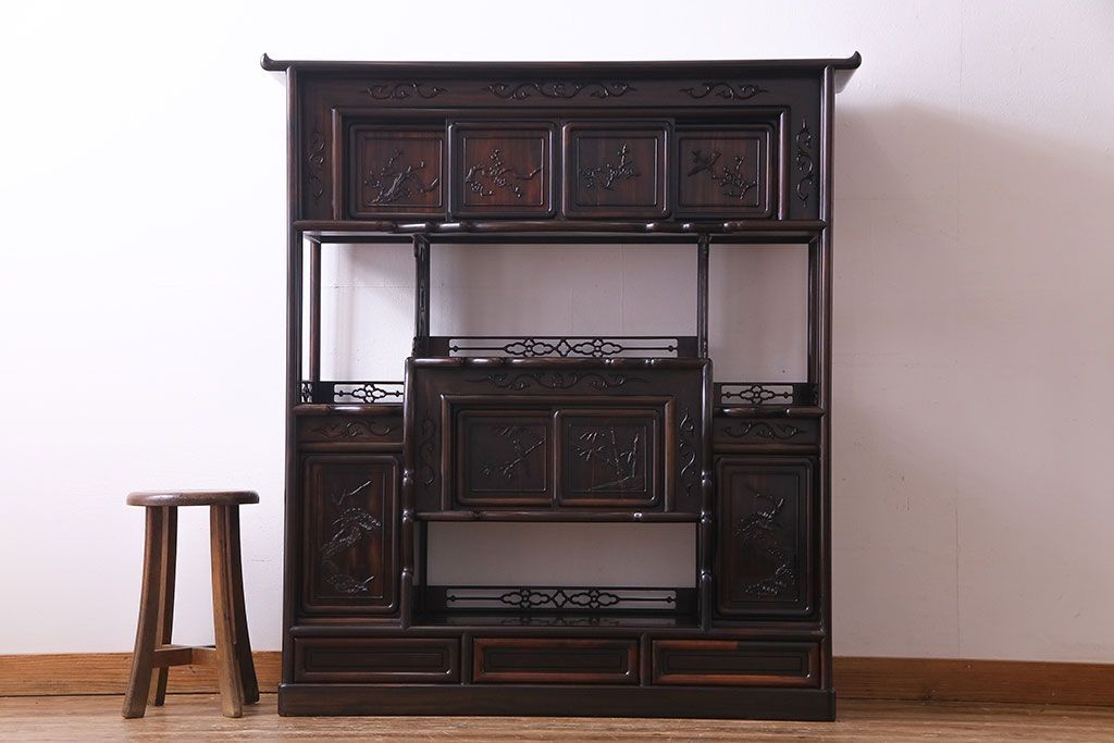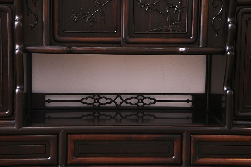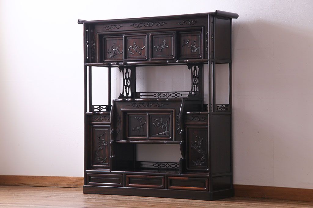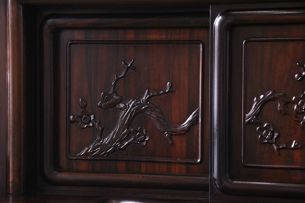 アンティーク家具 アンティーク 黒檀材 凝った意匠が目を引く上品な茶棚(飾り棚、戸棚)