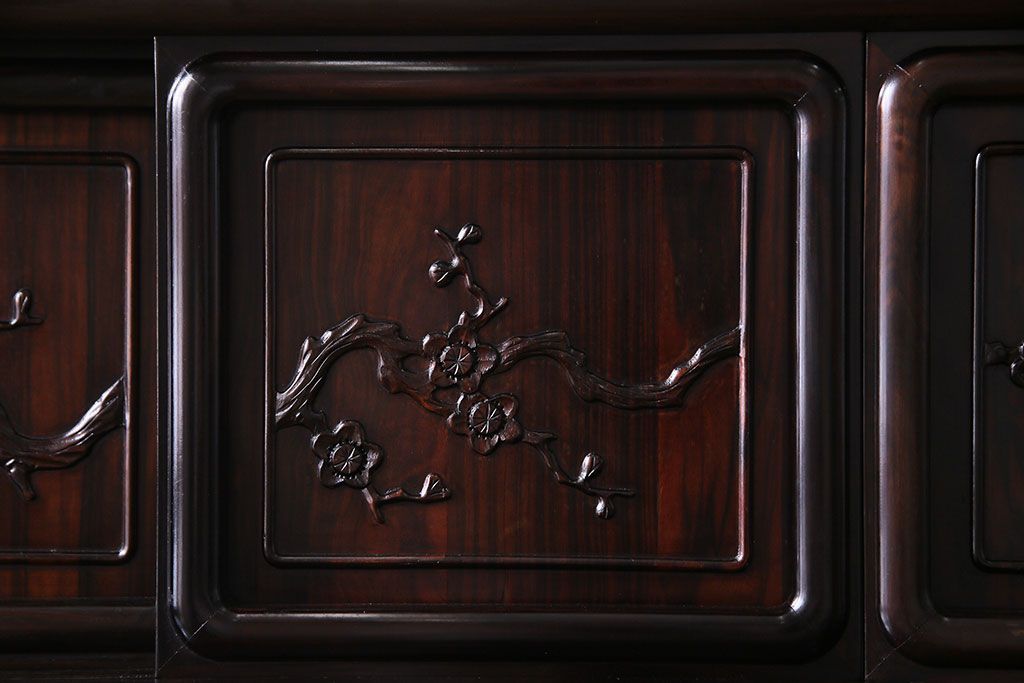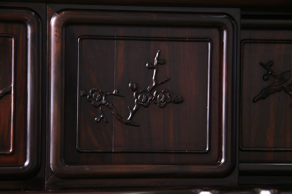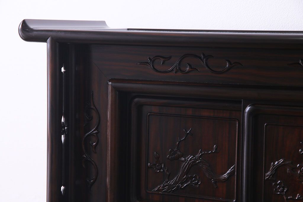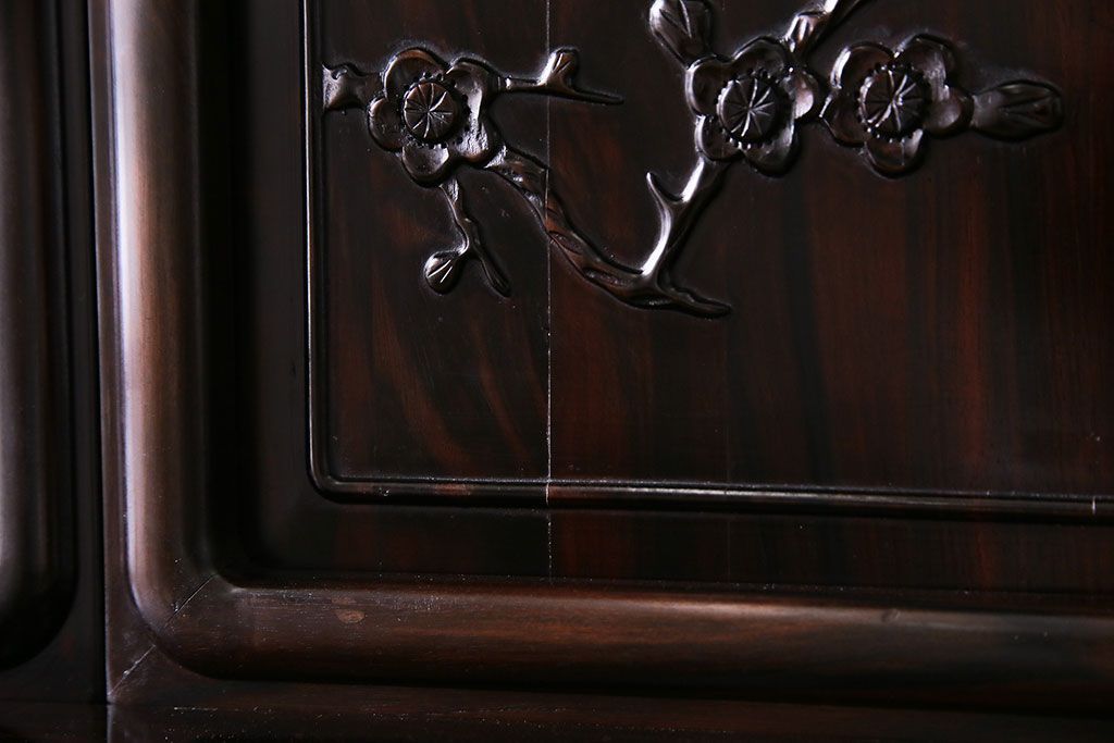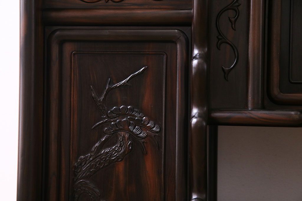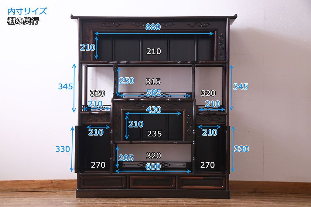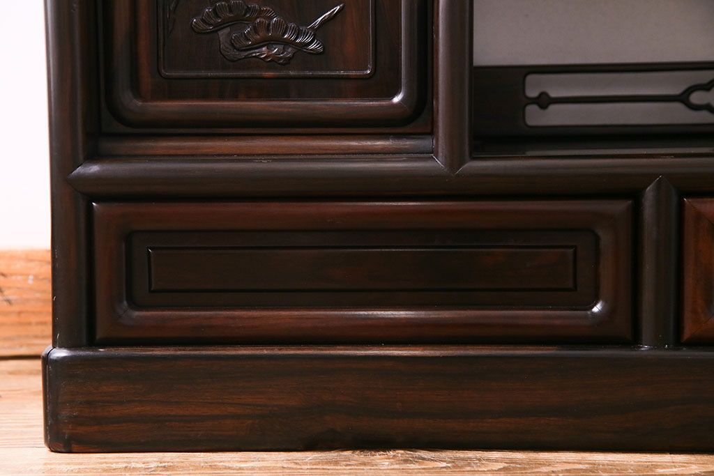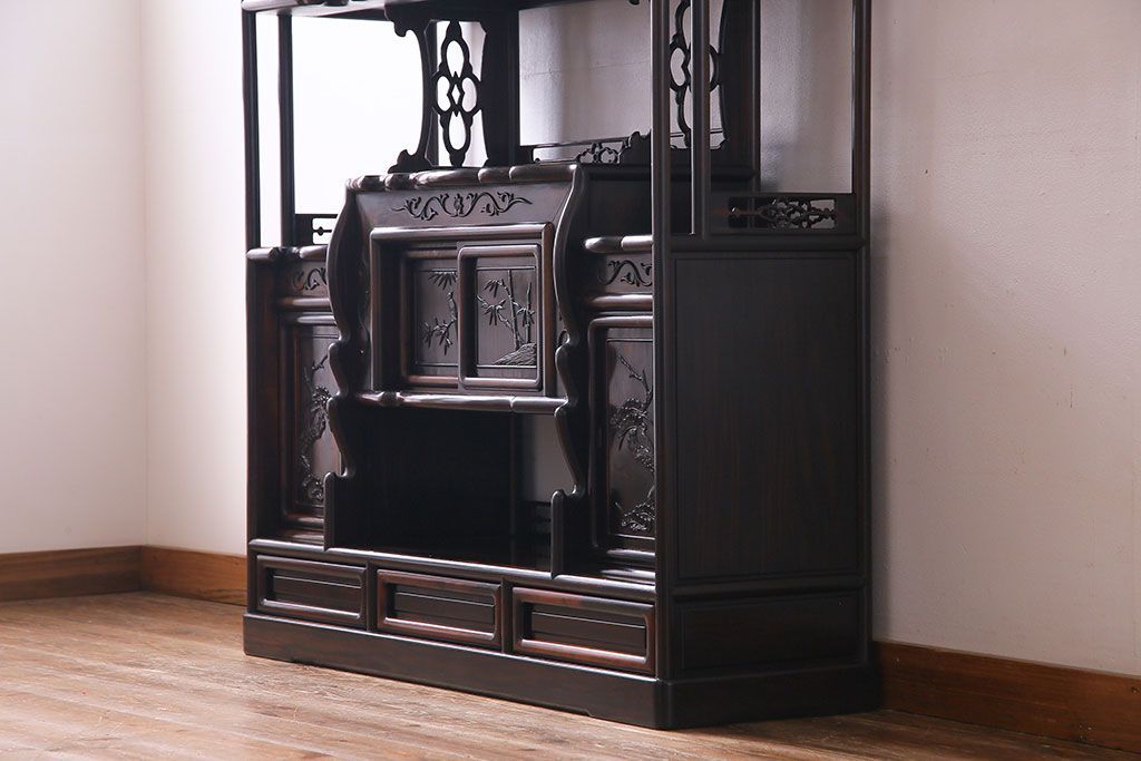 アンティーク家具 アンティーク 黒檀材 凝った意匠が目を引く上品な茶棚(飾り棚、戸棚)