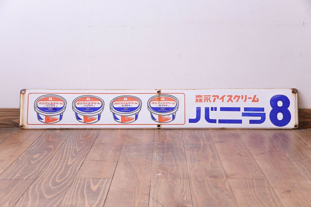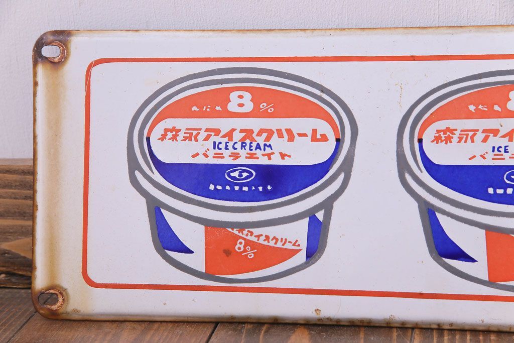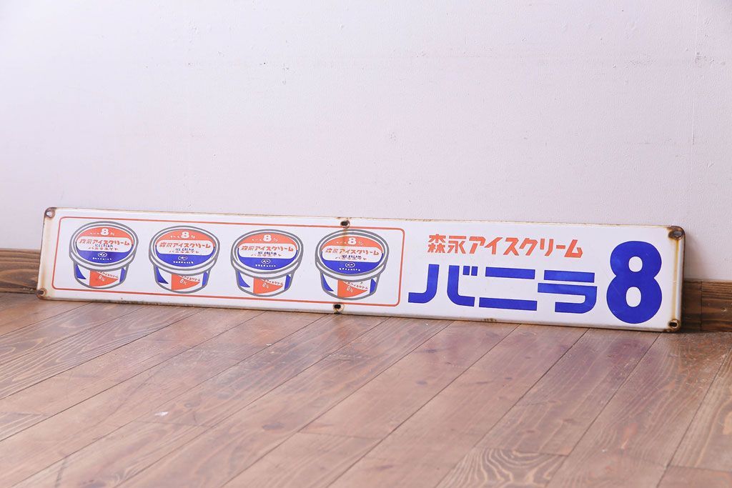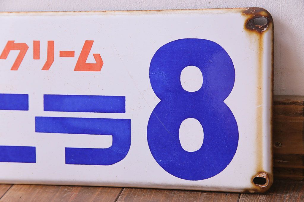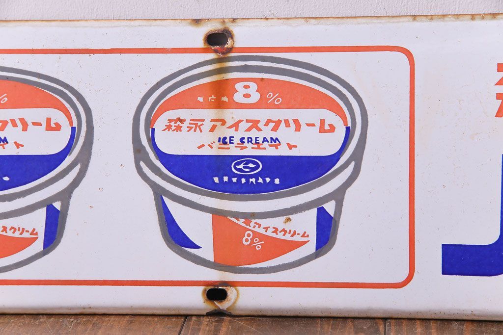 アンティーク雑貨 昭和レトロ 森永アイスクリーム バニラ8 ノスタルジックなホーロー看板(企業看板)(3)