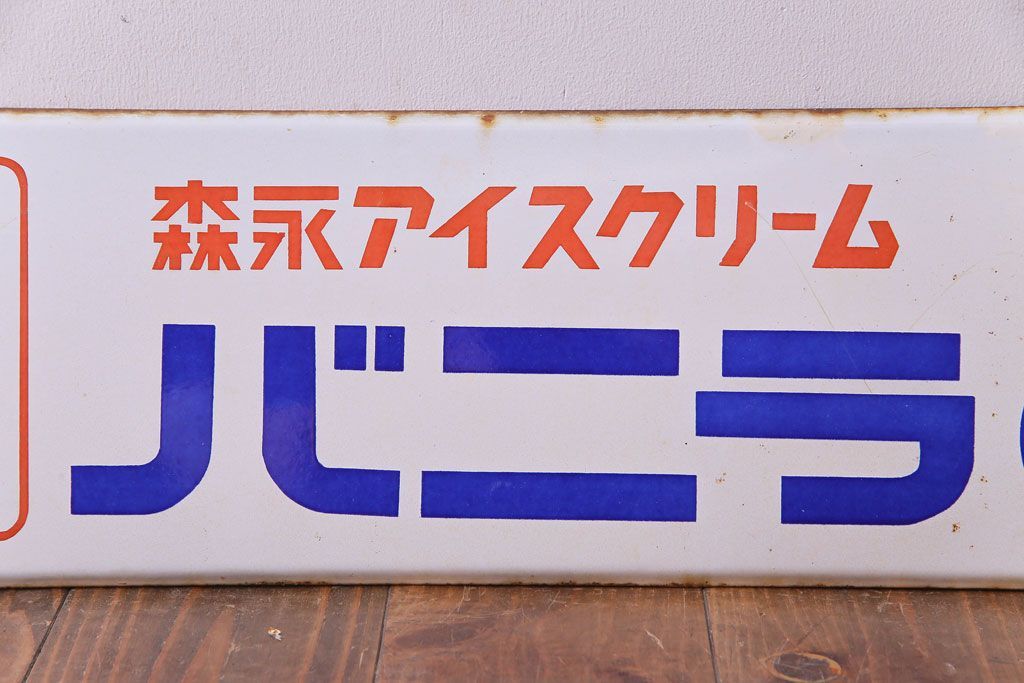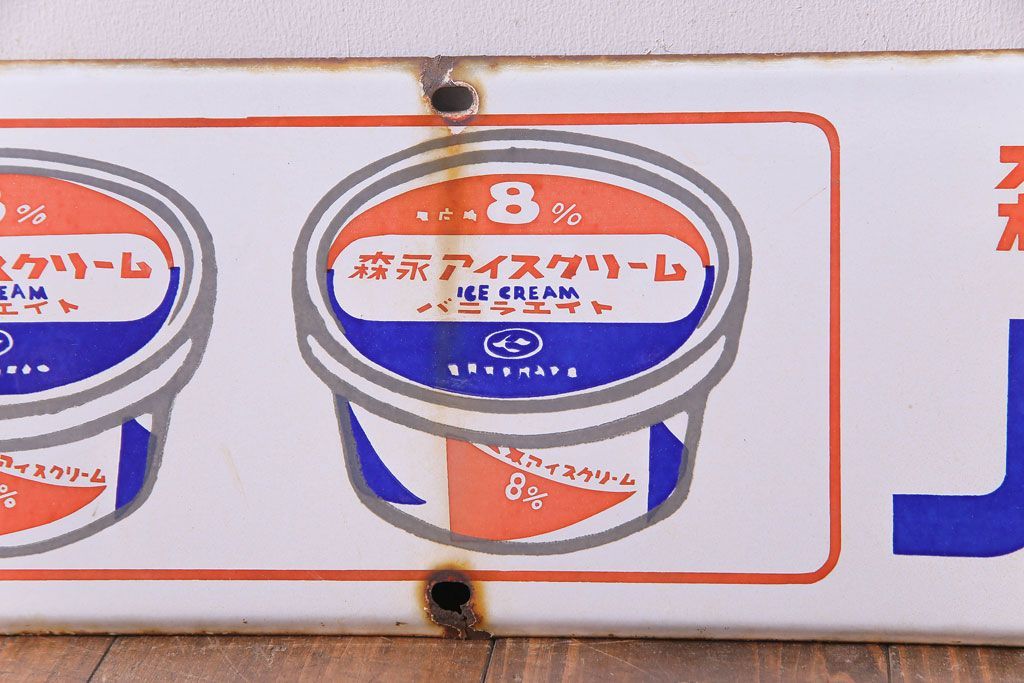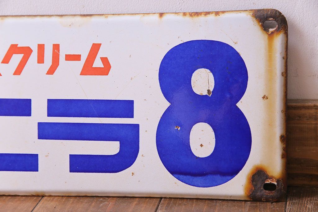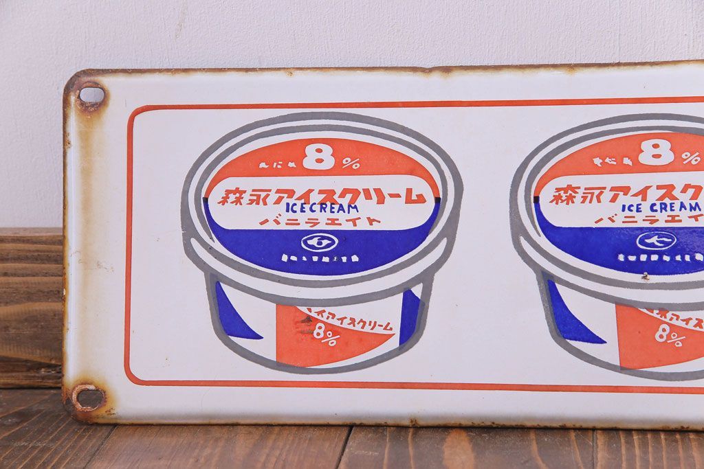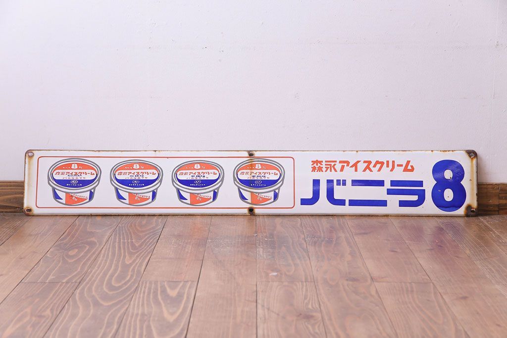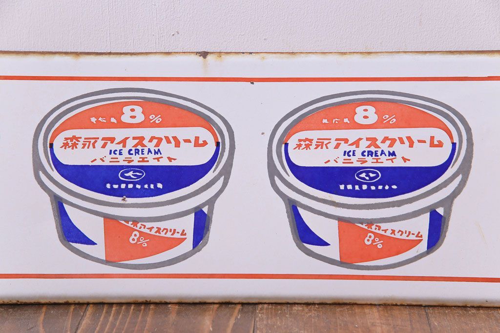 アンティーク雑貨 昭和レトロ 森永アイスクリーム バニラ8 ノスタルジックなホーロー看板(企業看板)