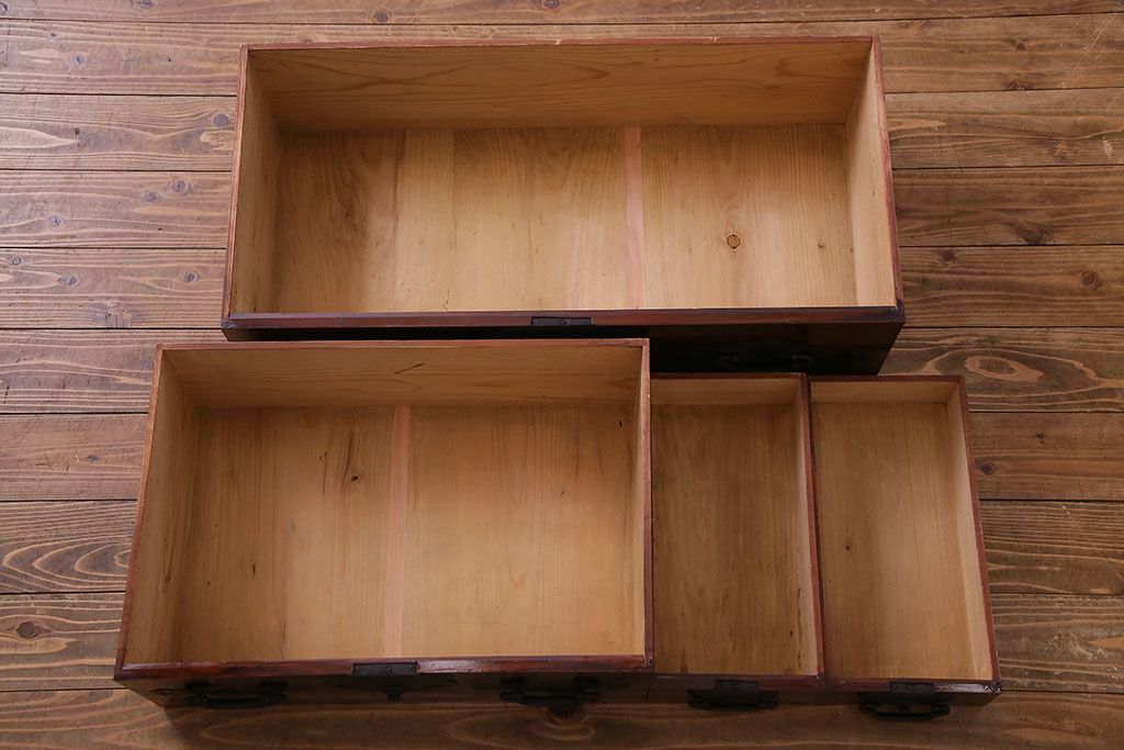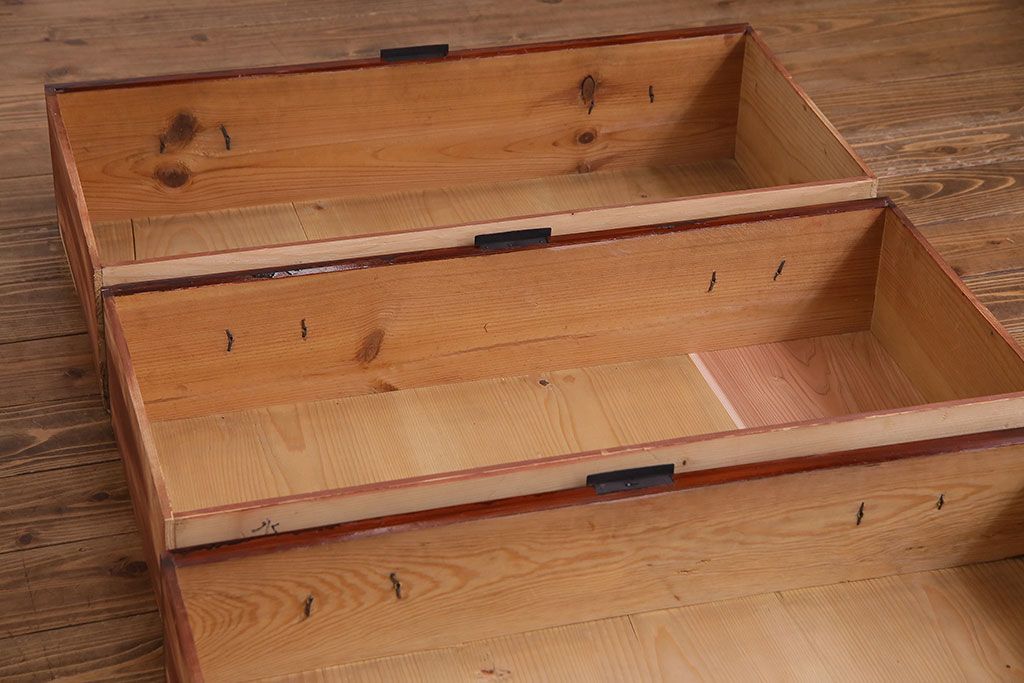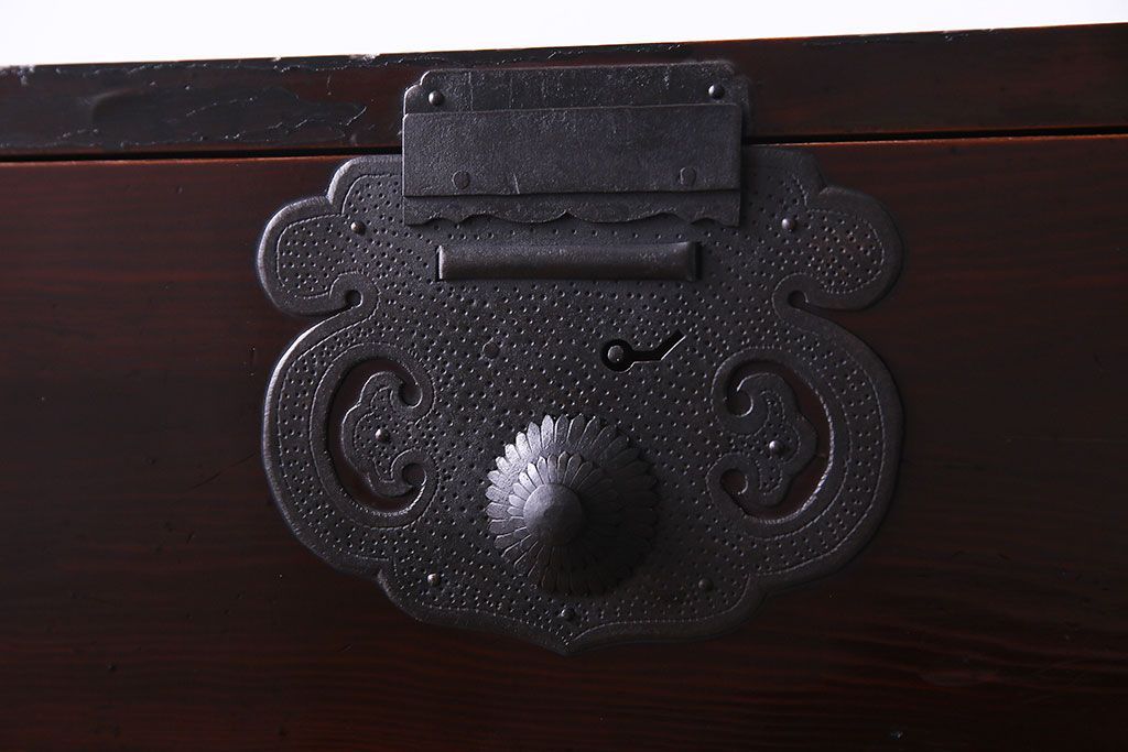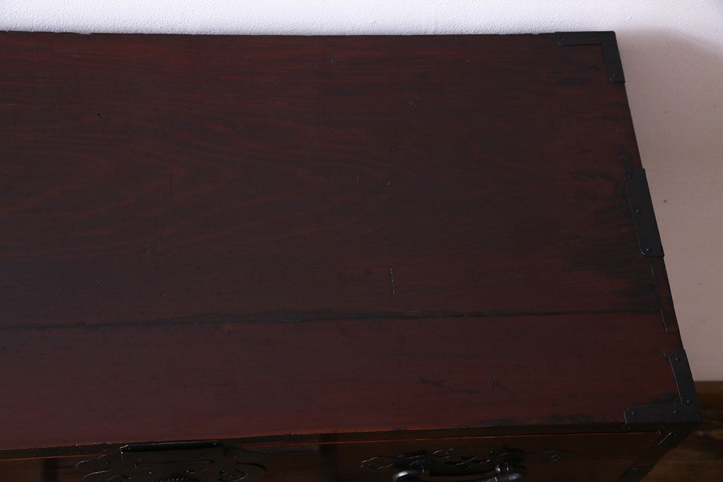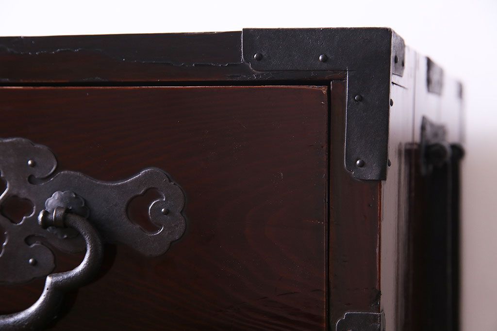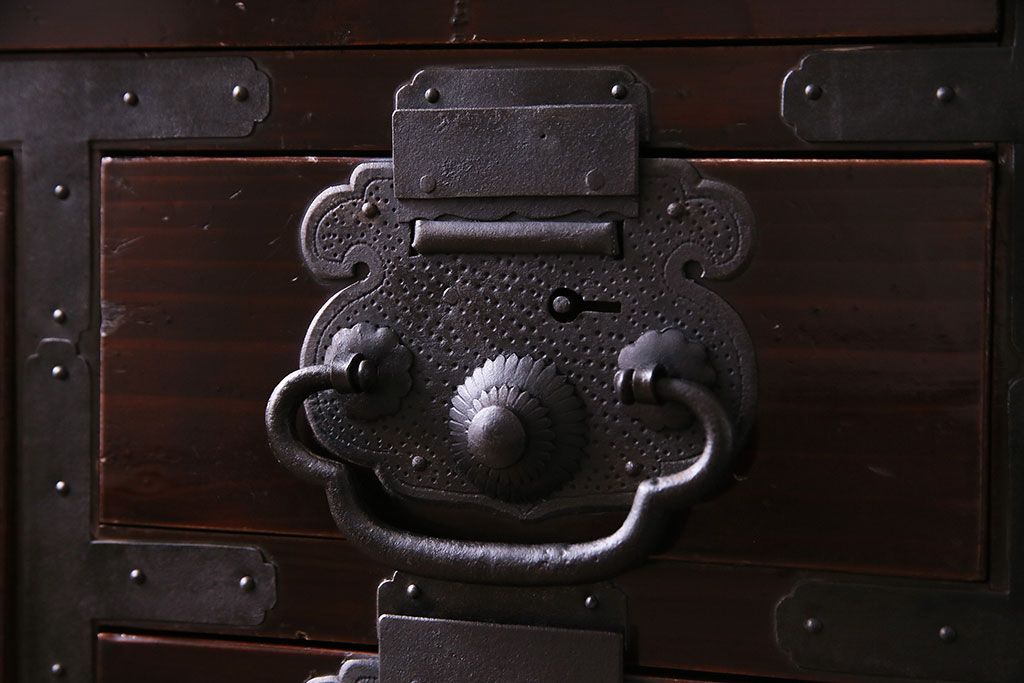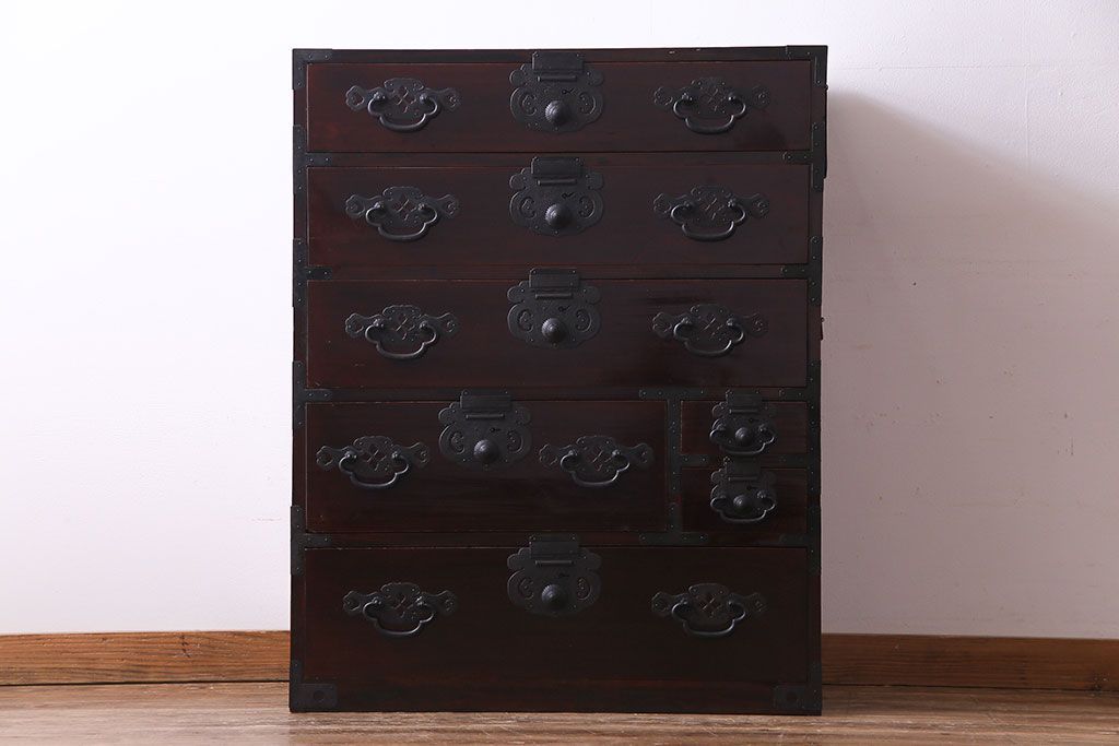 ラフジュ工房> 和箪笥 > アンティーク家具 和製アンティーク 杉材 巾着金具と漆塗りが魅力の松本箪笥(和タンス、衣装箪笥、整理箪笥)