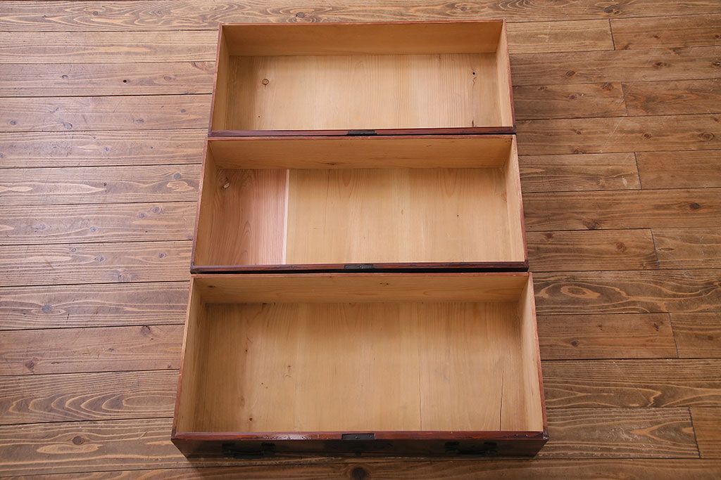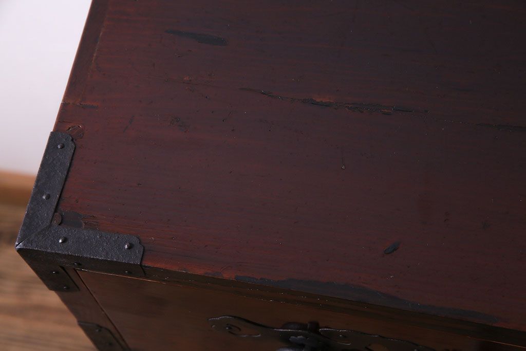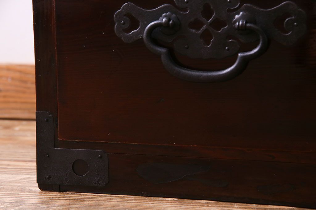 ラフジュ工房> 和箪笥> 衣装箪笥 > アンティーク家具 和製アンティーク 杉材 巾着金具と漆塗りが魅力の松本箪笥(和タンス、衣装箪笥、整理箪笥)