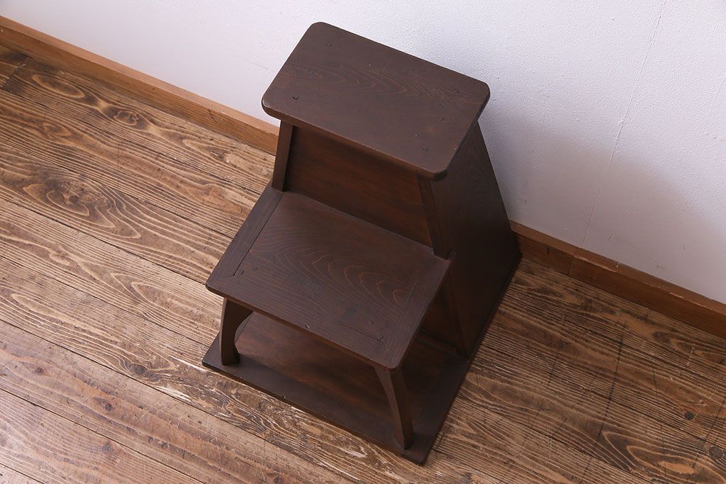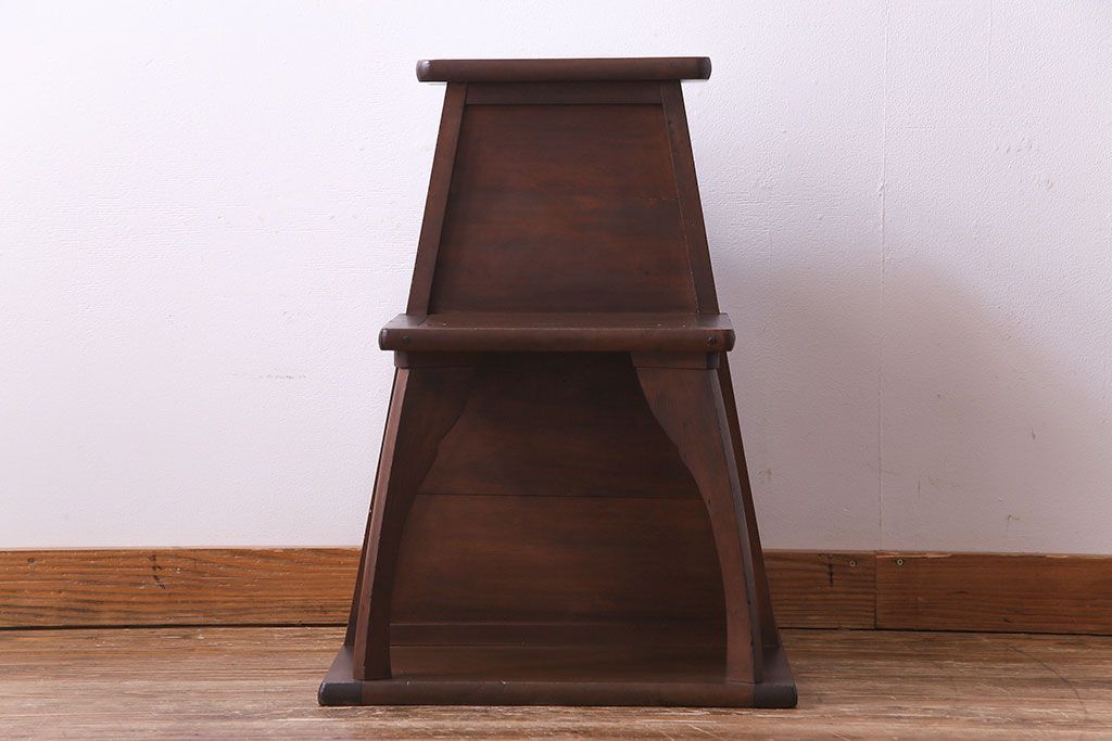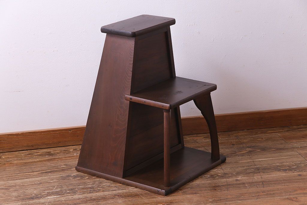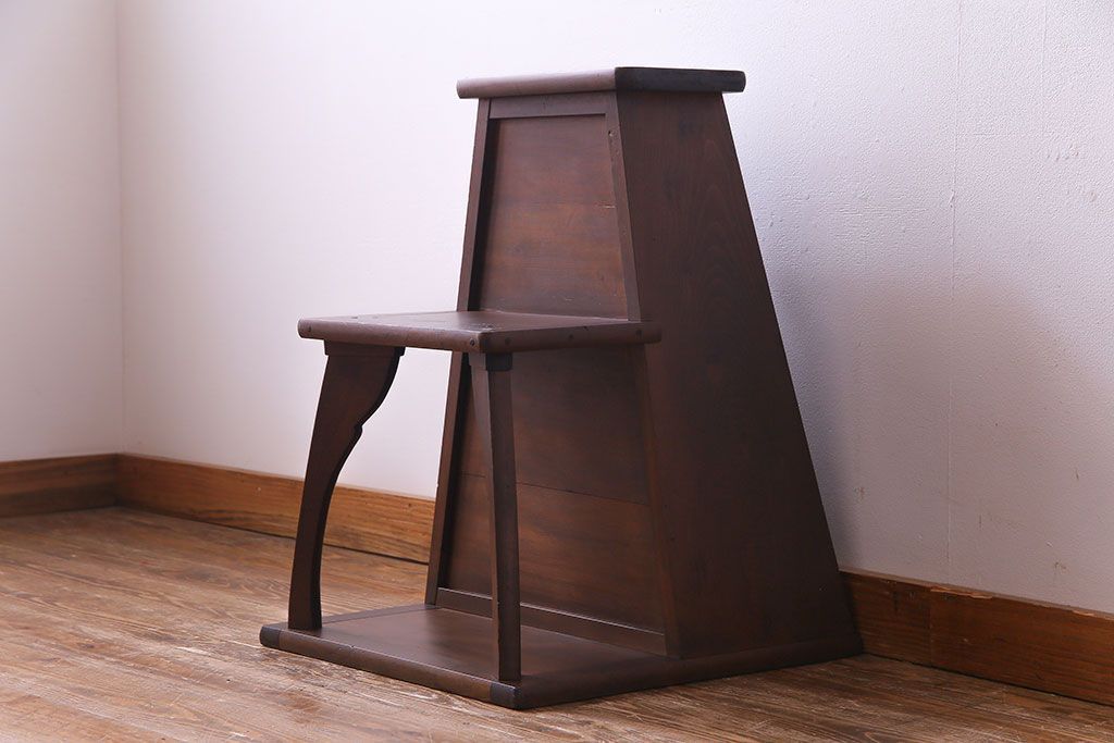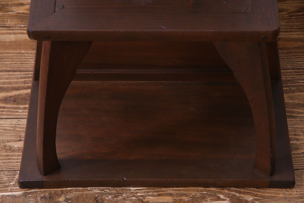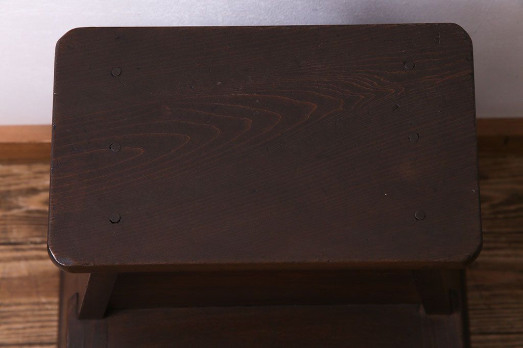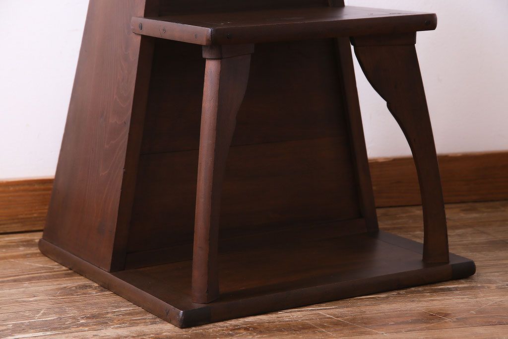 アンティーク雑貨 大正昭和初期 ヒノキ材 脚のデザインがおしゃれな踏み台(花台、飾り台)