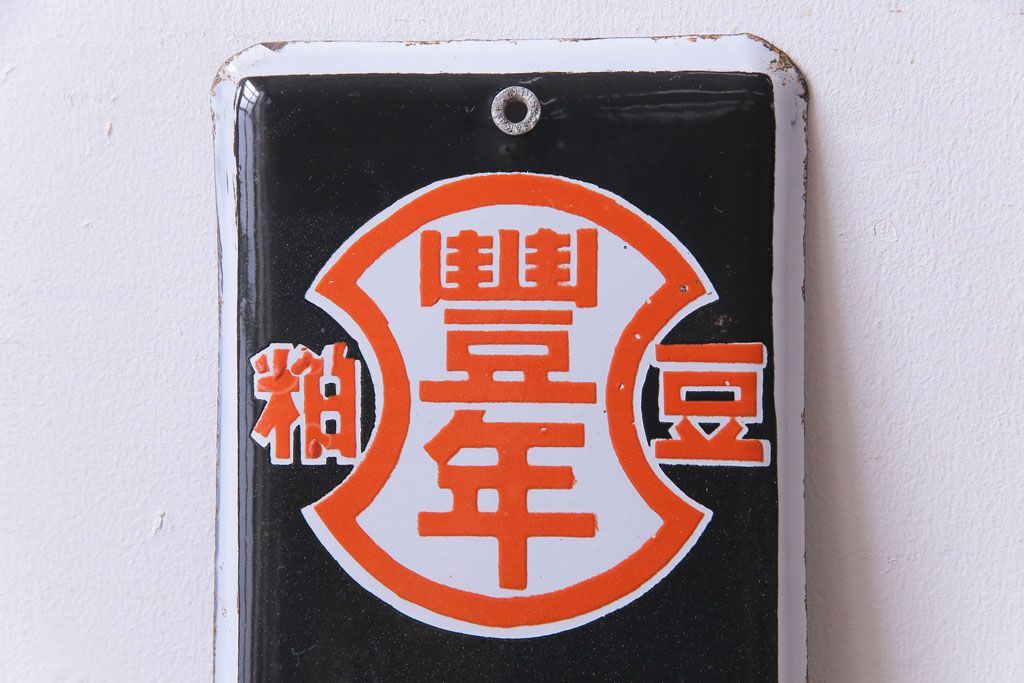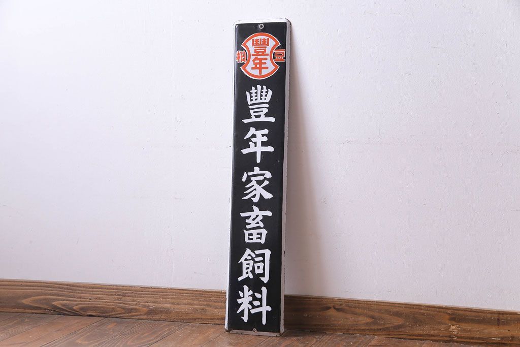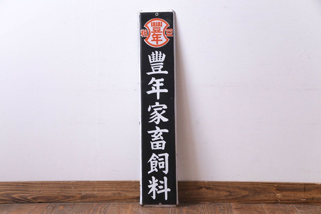 アンティーク雑貨 昭和レトロ 豊年家畜飼料 味わいのあるホーロー看板(企業看板)(1)