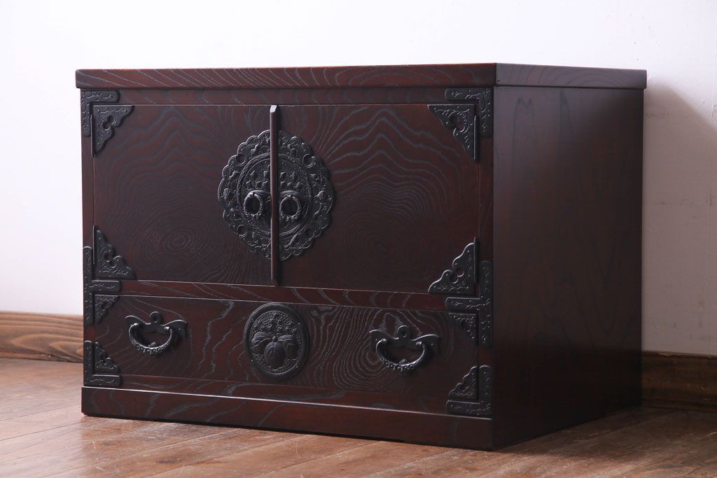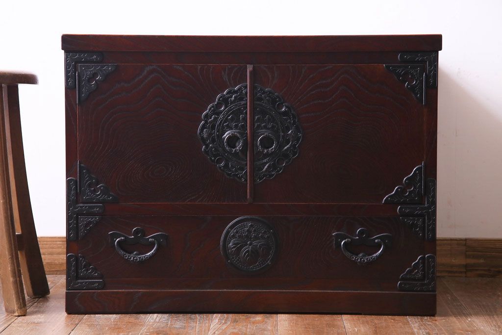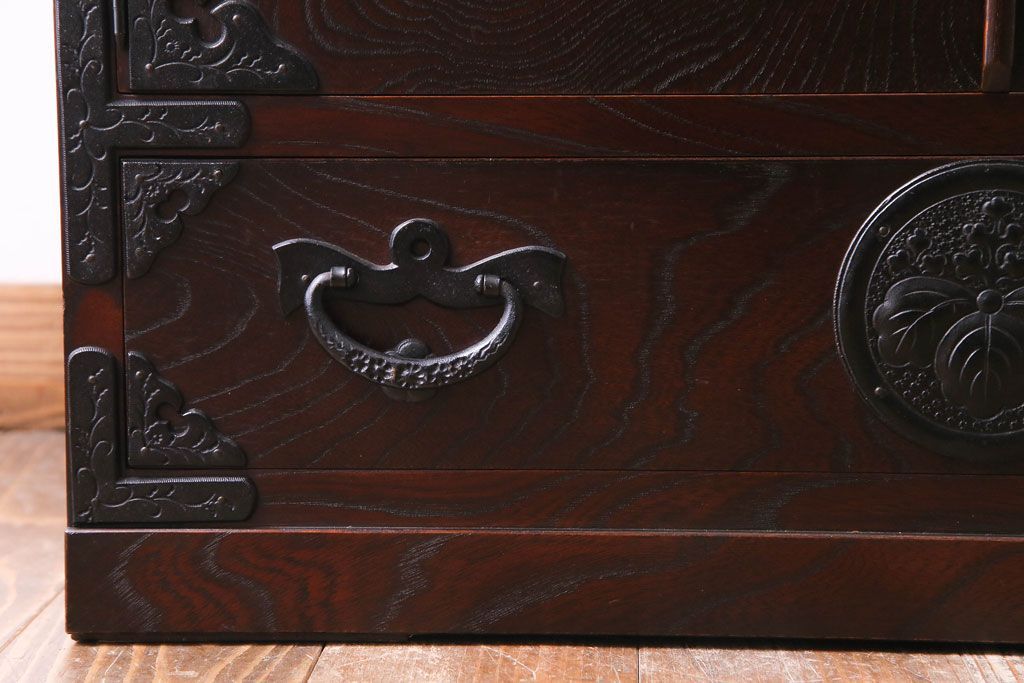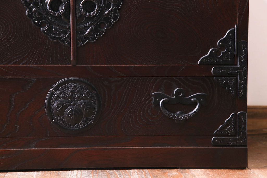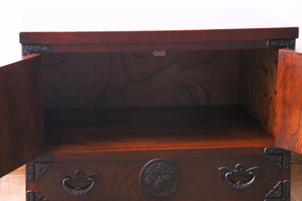 ラフジュ工房> 和箪笥 > 中古美品 伝統民芸家具 岩谷堂 桐紋 杢目と金具が存在感を放つ箪笥ローボード(テレビボード、戸棚)