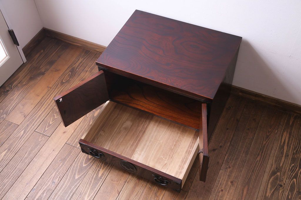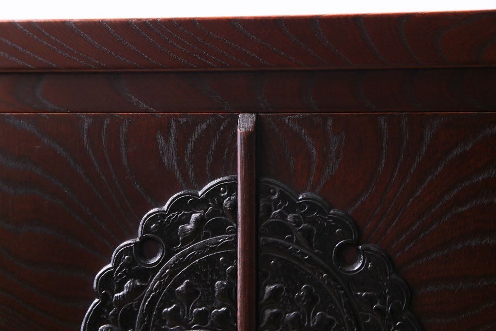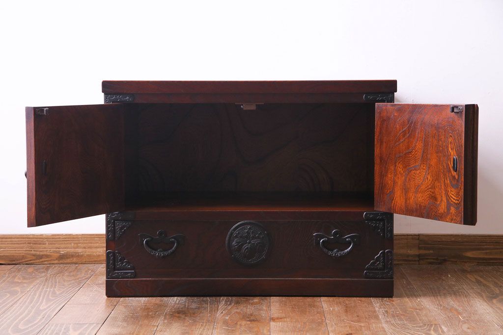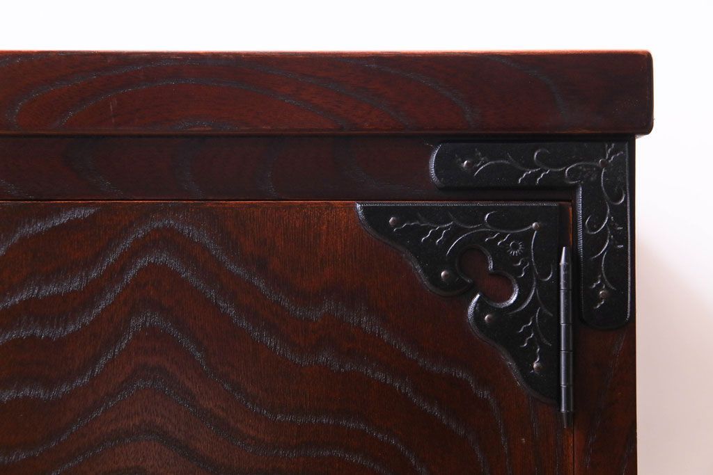 ラフジュ工房> 民芸家具 > 中古美品 伝統民芸家具 岩谷堂 桐紋 杢目と金具が存在感を放つ箪笥ローボード(テレビボード、戸棚)