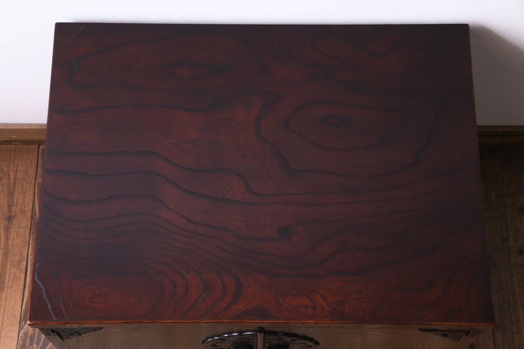 ラフジュ工房> キャビネット・戸棚> テレビ台・ローボード > 中古美品 伝統民芸家具 岩谷堂 桐紋 杢目と金具が存在感を放つ箪笥ローボード(テレビボード、戸棚)