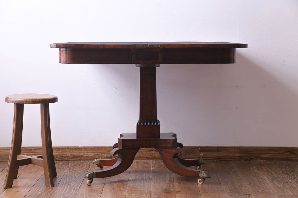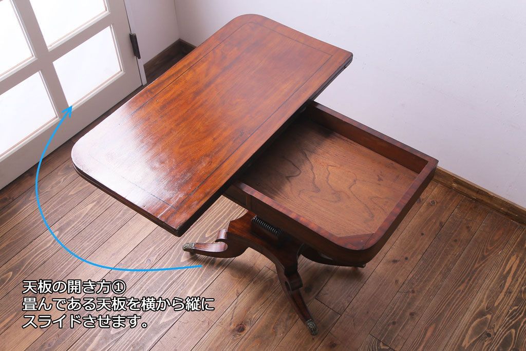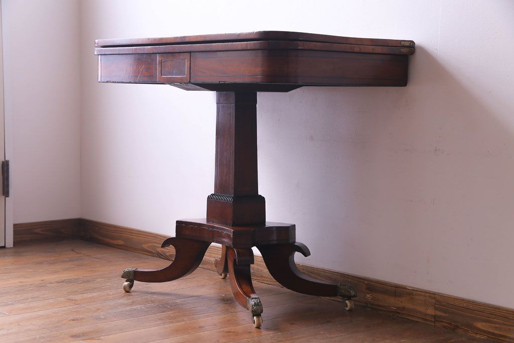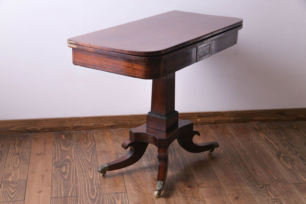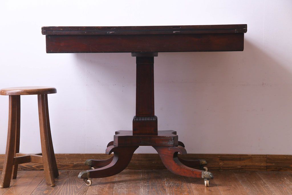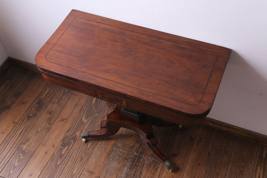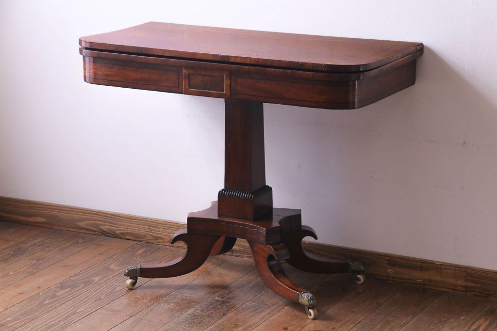 アンティーク家具 イギリスアンティーク マホガニー材 天板折り畳み式 ゲームテーブル(バタフライテーブル、サイドテーブル、コンソールテーブル)