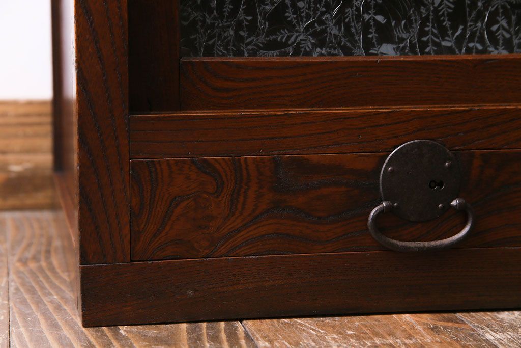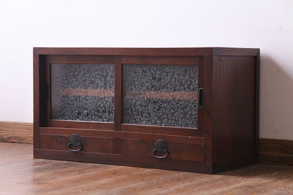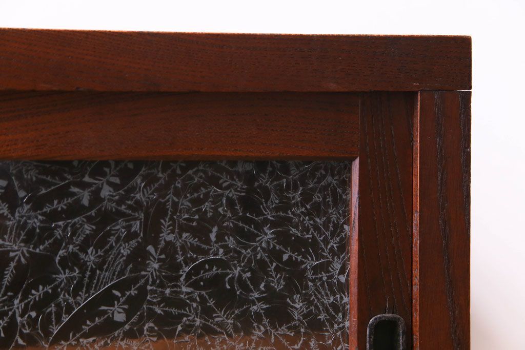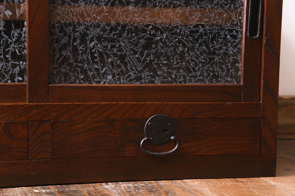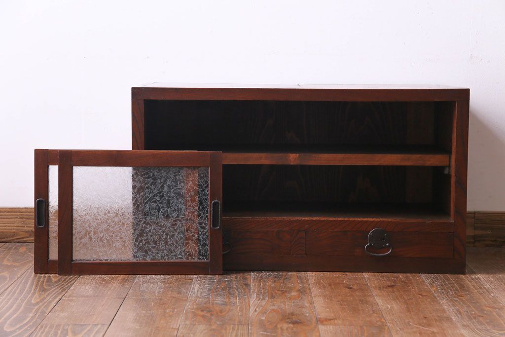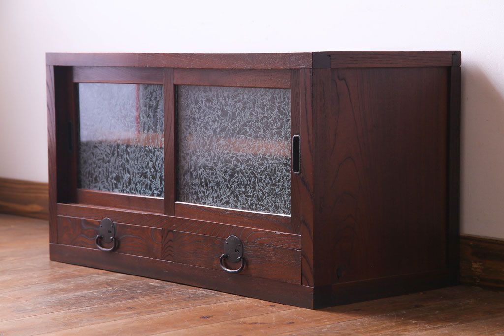 アンティーク家具 和製アンティーク 三方ケヤキ材 品の良い和の空間を演出する小振りなガラス戸棚(収納棚、ローボード)