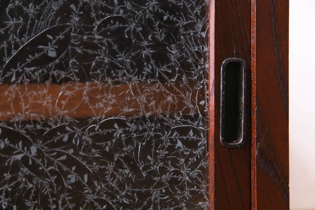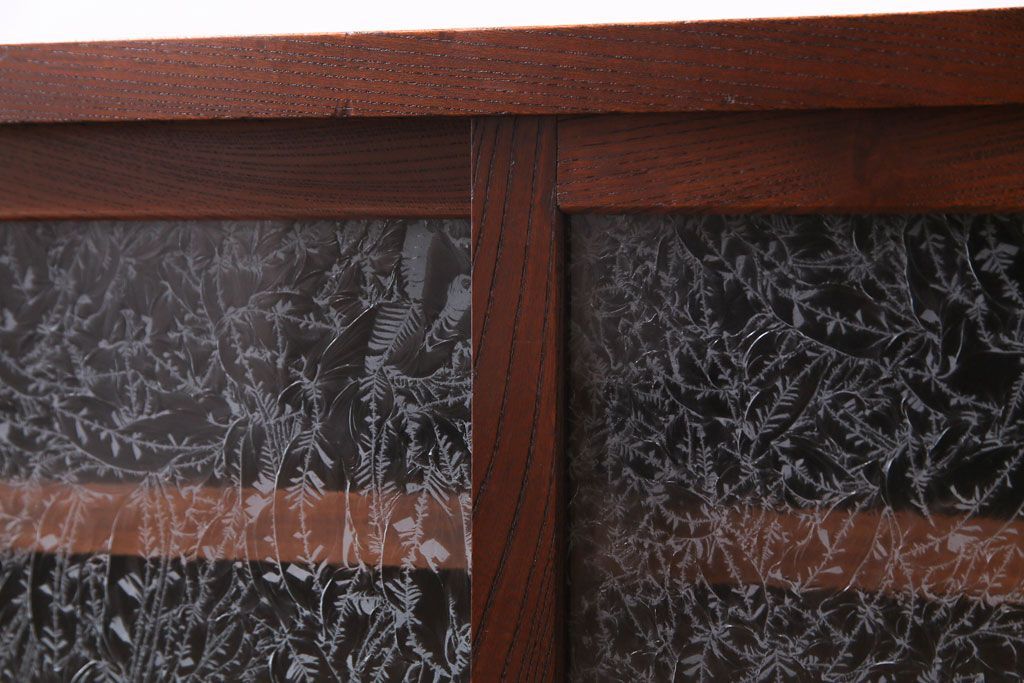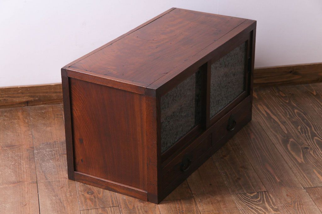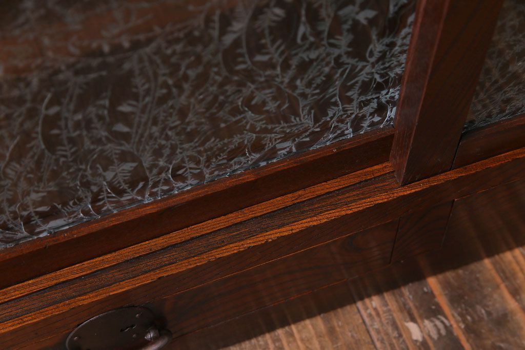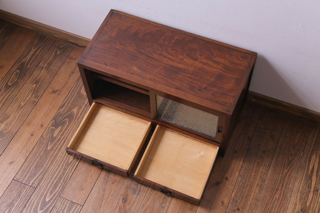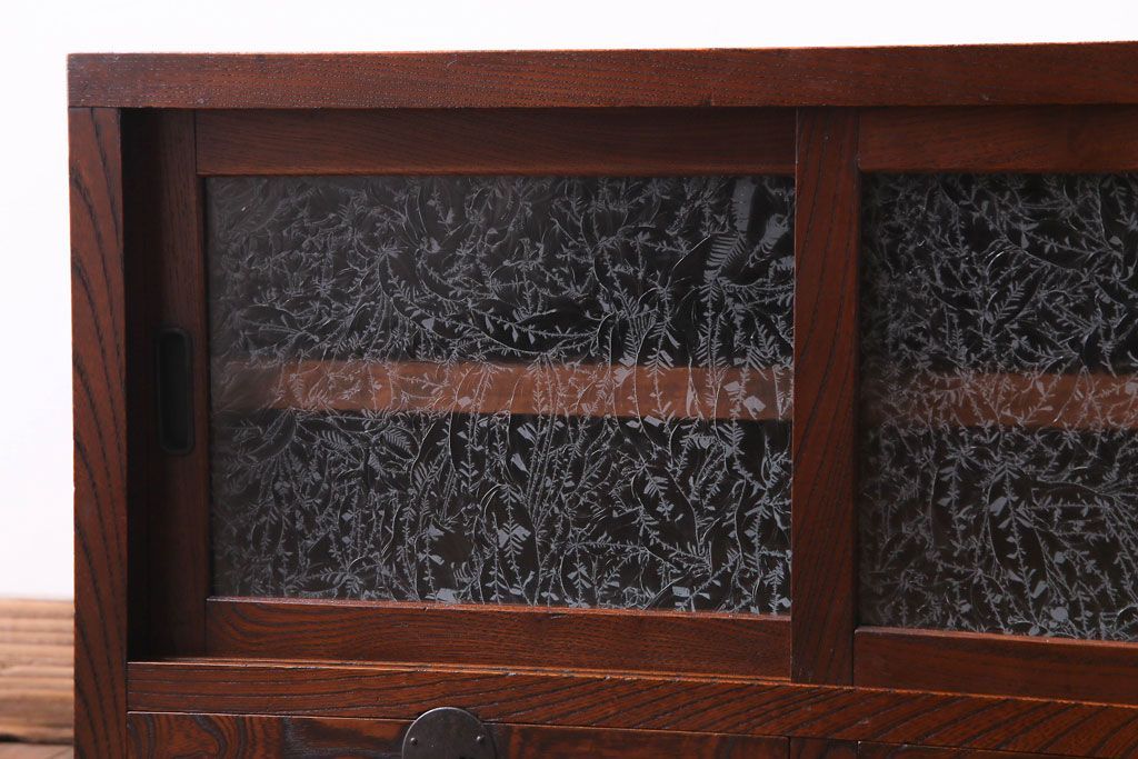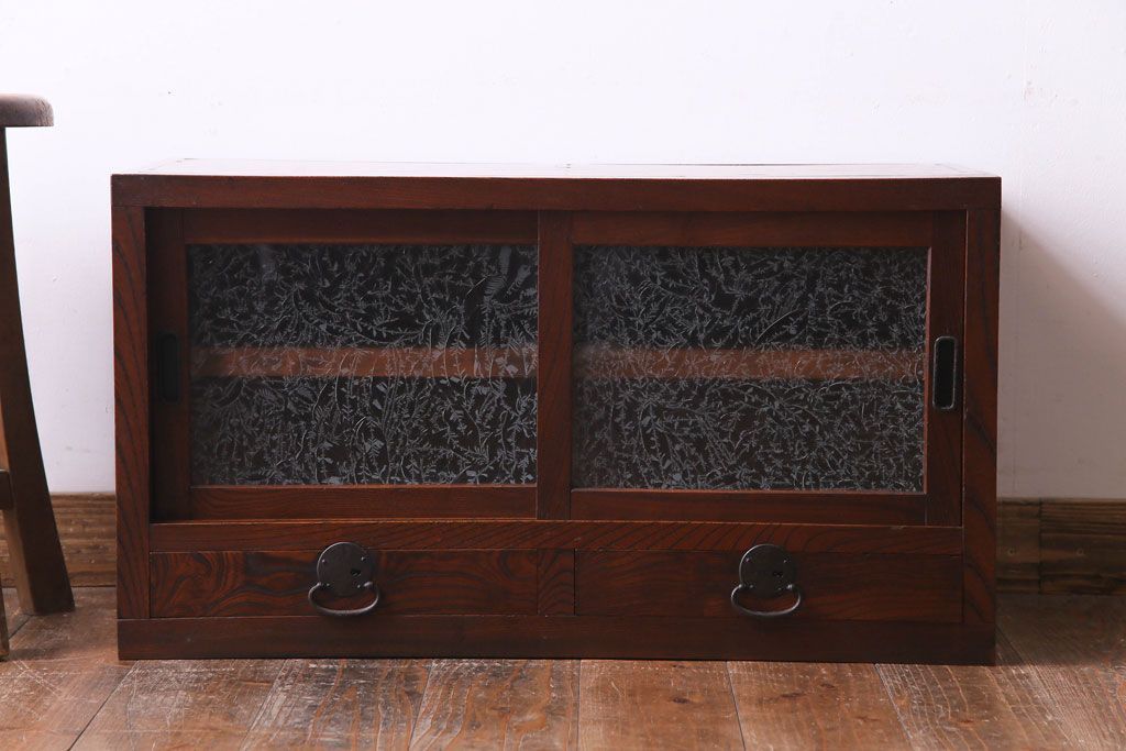 アンティーク家具 和製アンティーク 三方ケヤキ材 品の良い和の空間を演出する小振りなガラス戸棚(収納棚、ローボード)