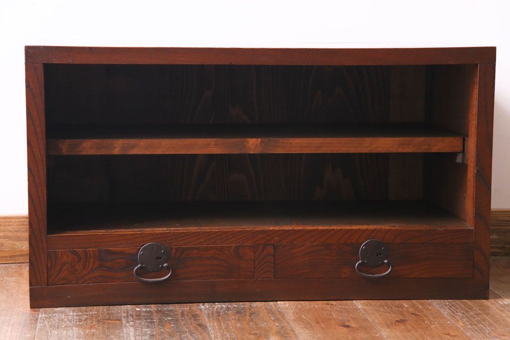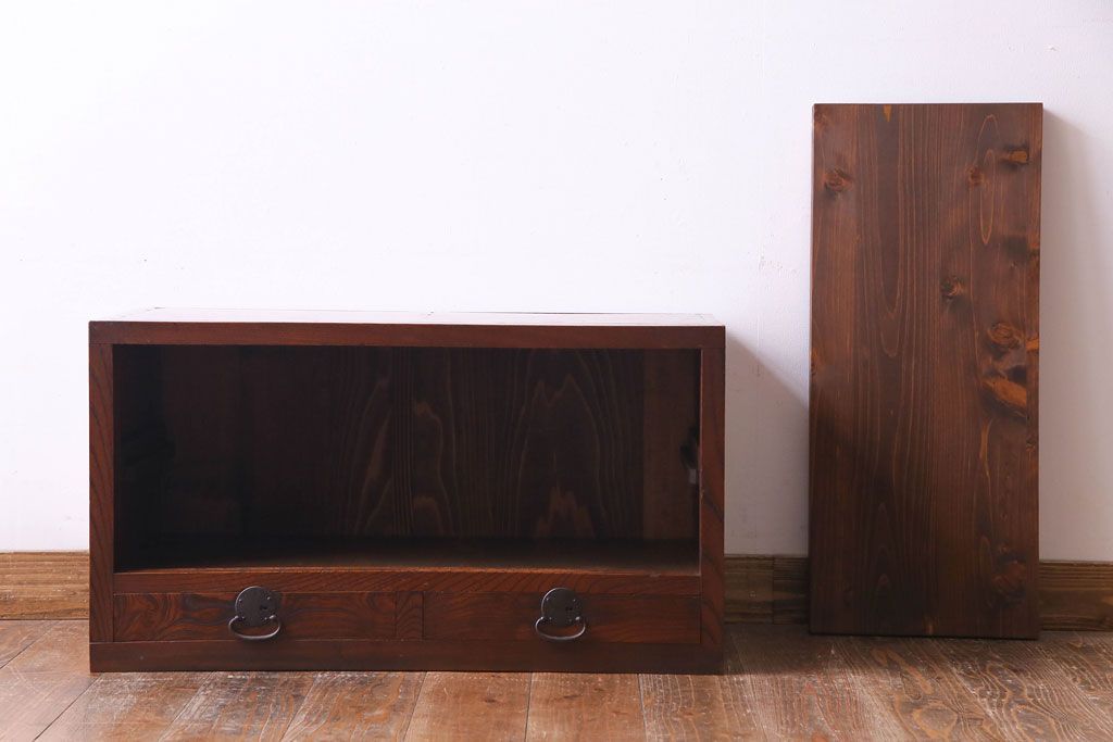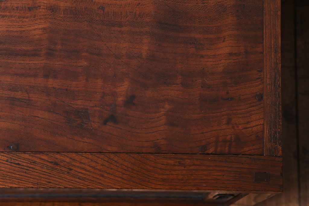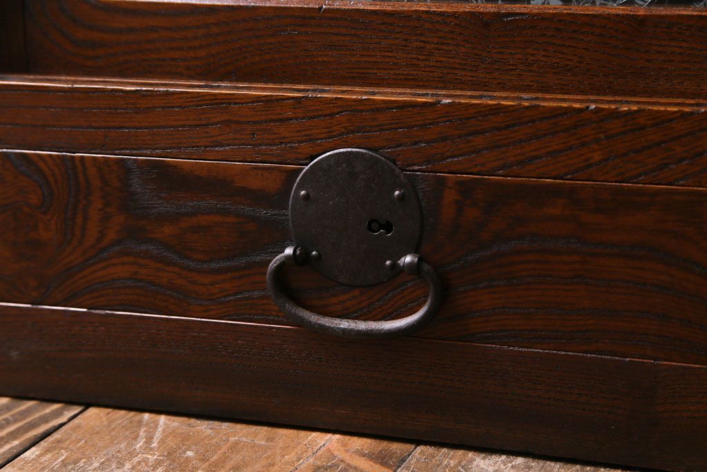 ラフジュ工房> キャビネット・戸棚> テレビ台・ローボード > アンティーク家具 和製アンティーク 三方ケヤキ材 品の良い和の空間を演出する小振りなガラス戸棚(収納棚、ローボード)