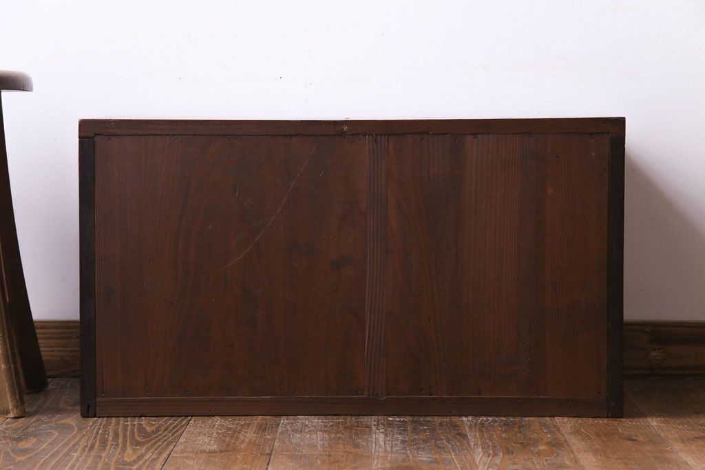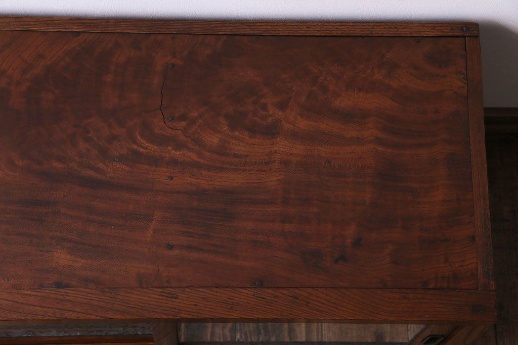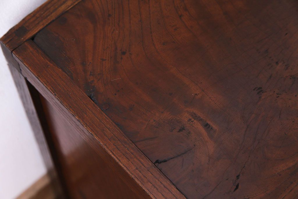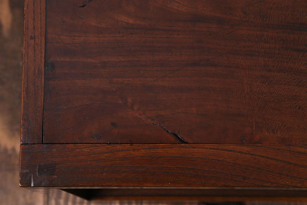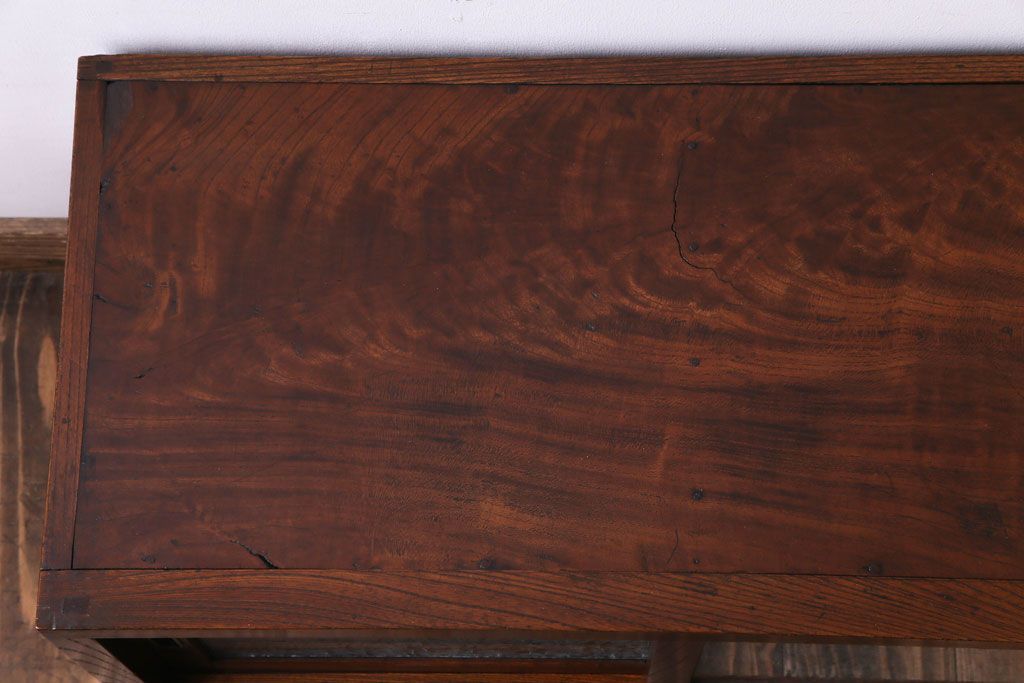 ラフジュ工房> キャビネット・戸棚> テレビ台・ローボード > アンティーク家具 和製アンティーク 三方ケヤキ材 品の良い和の空間を演出する小振りなガラス戸棚(収納棚、ローボード)