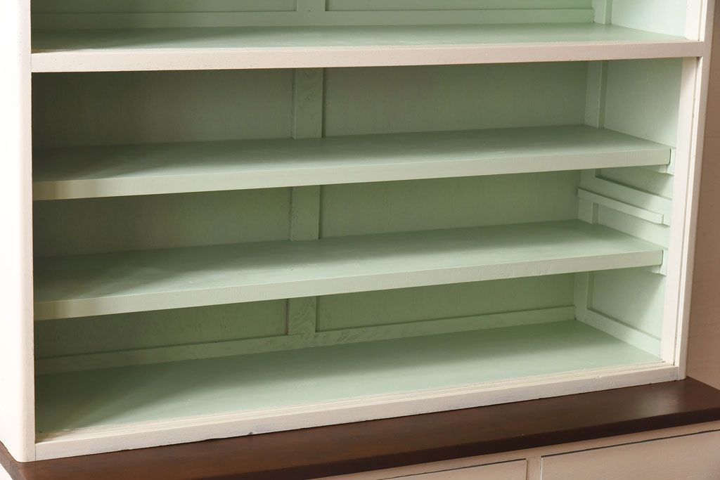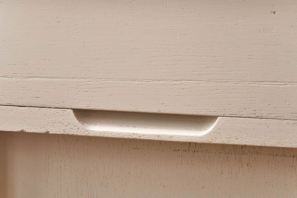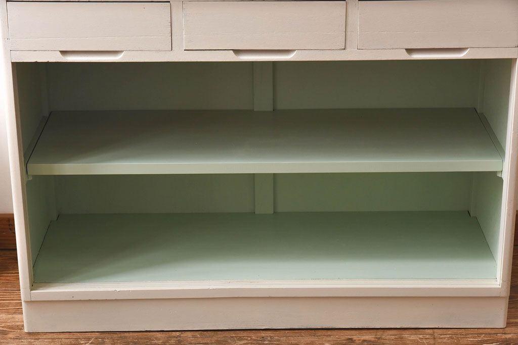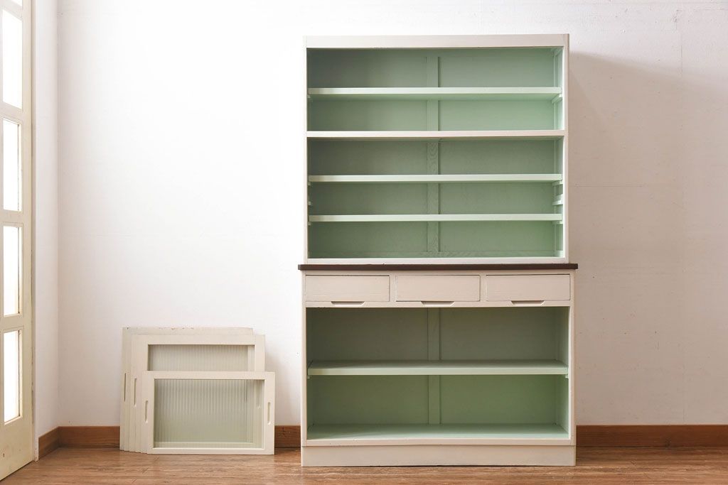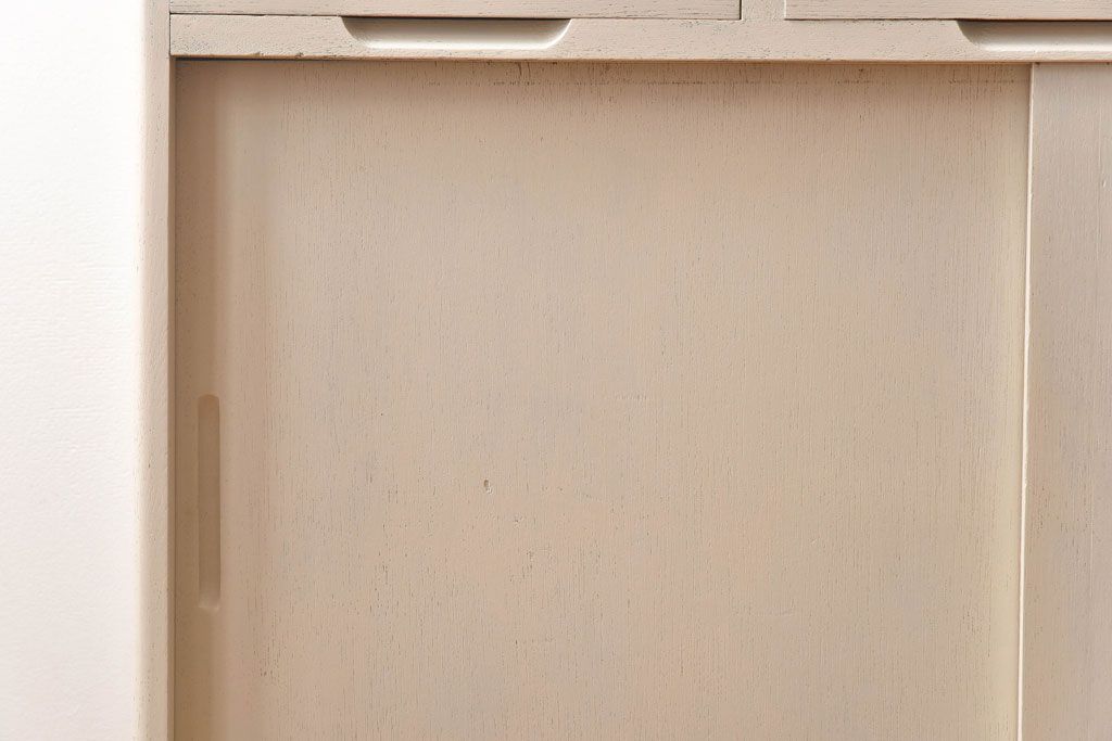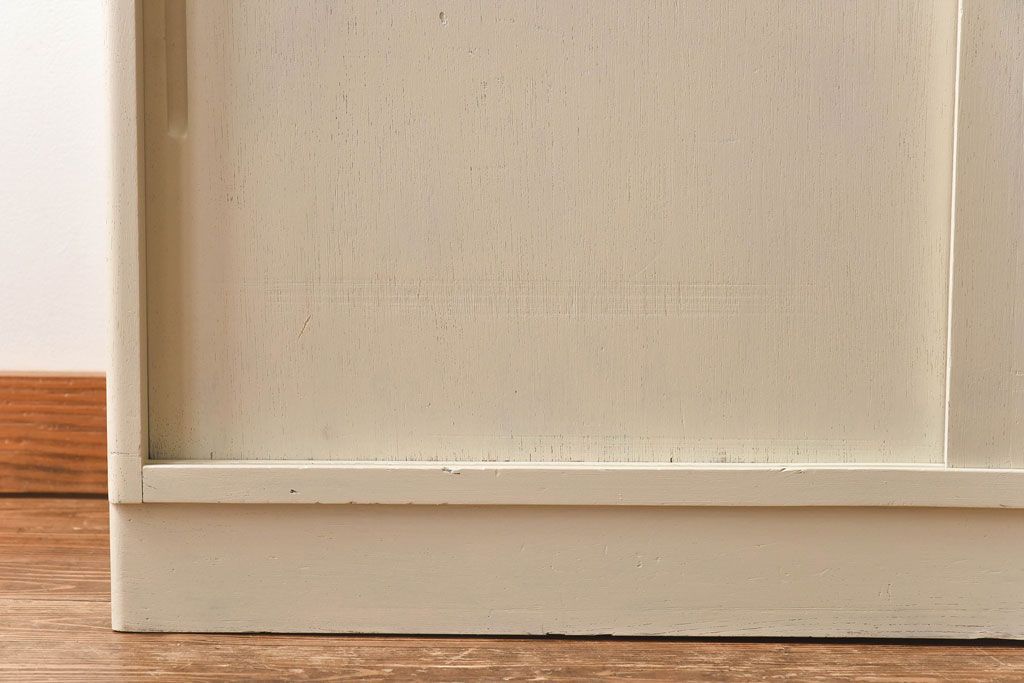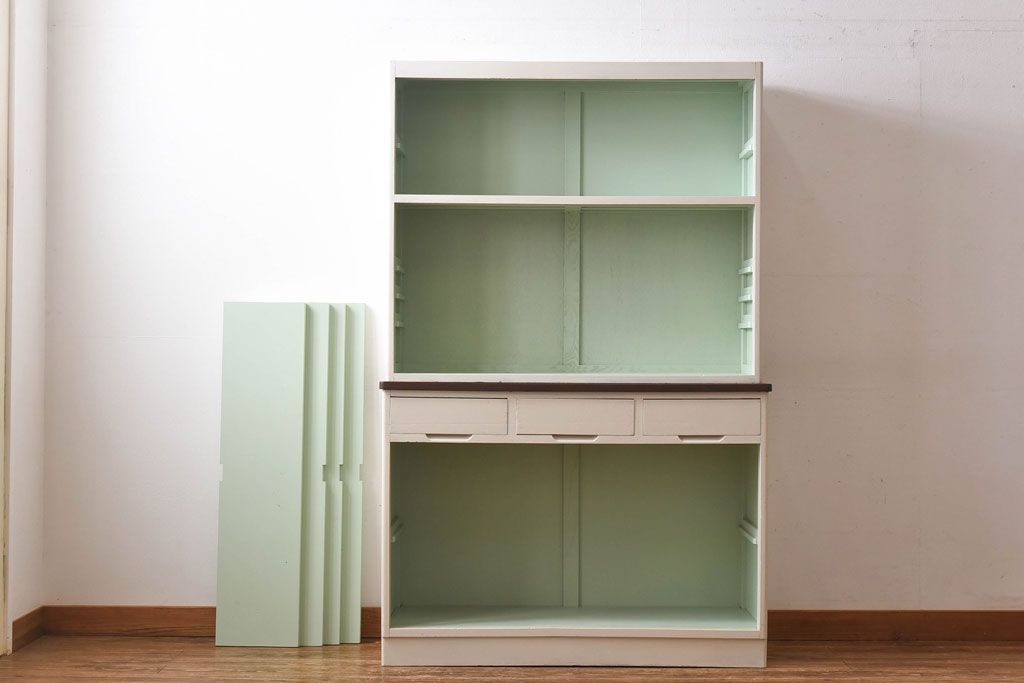 ラフジュ工房> キャビネット・戸棚> 食器棚・カップボード > ペイント家具 昭和中期 モールガラス入り 淡いカラーが爽やかな食器棚(カップボード、収納棚)