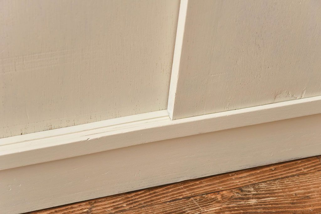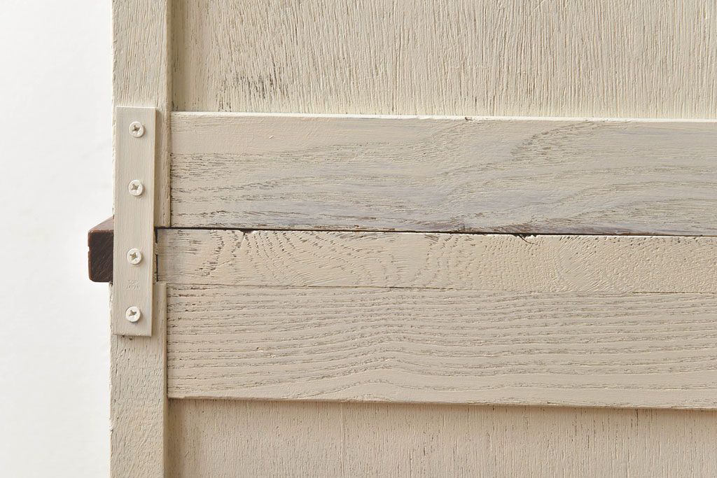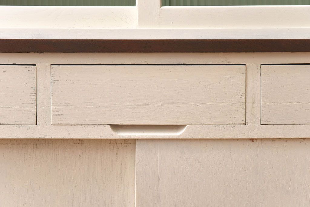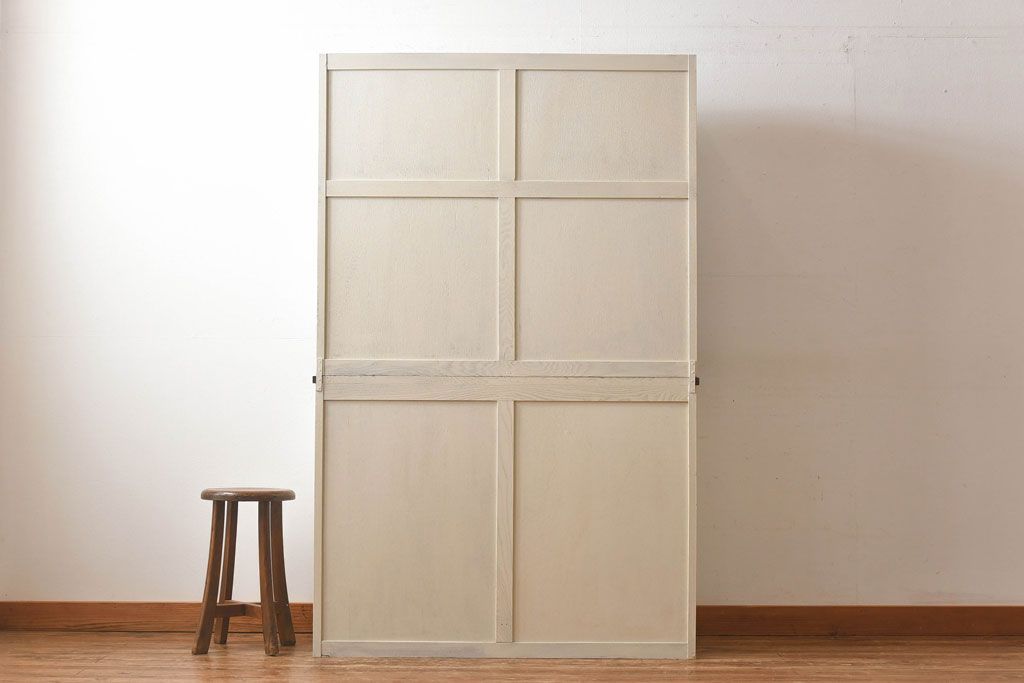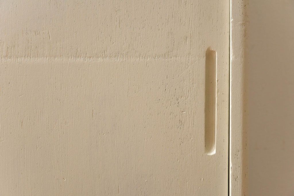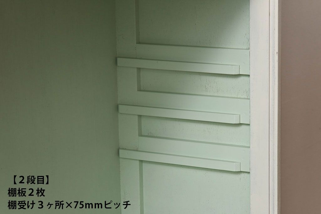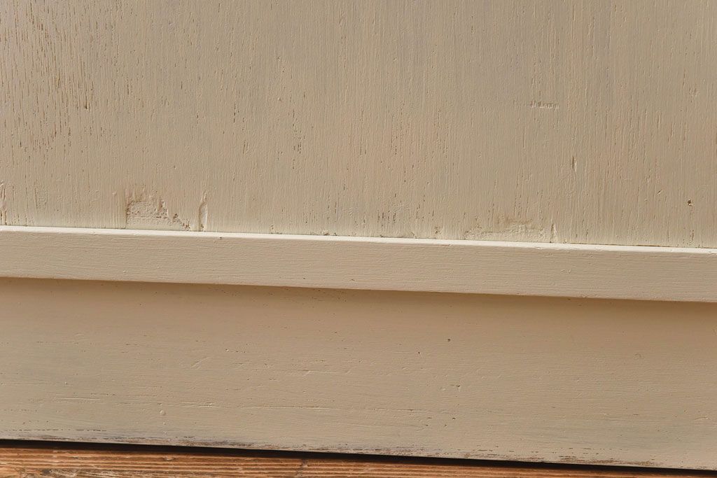 ラフジュ工房> キャビネット・戸棚> 食器棚・カップボード > ペイント家具 昭和中期 モールガラス入り 淡いカラーが爽やかな食器棚(カップボード、収納棚)
