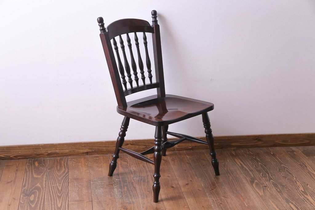 中古美品 松本民芸家具 クラシカルな安川式スピンドルチェア(ダイニングチェア、椅子)(定価約9万7千円)(3)です。